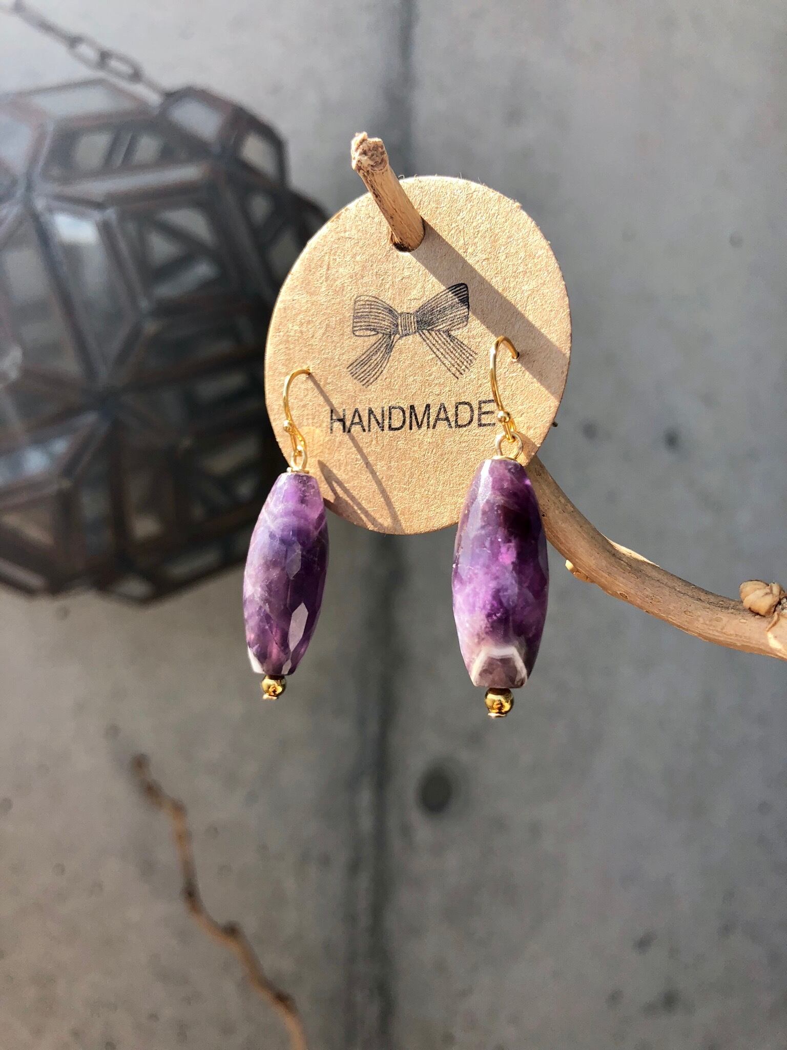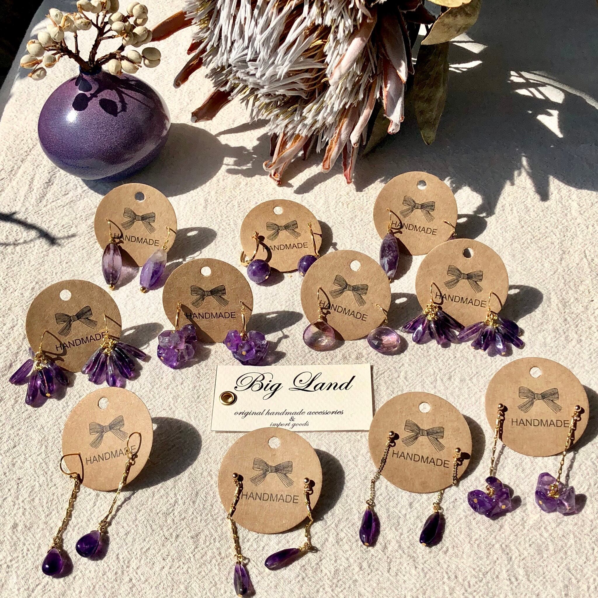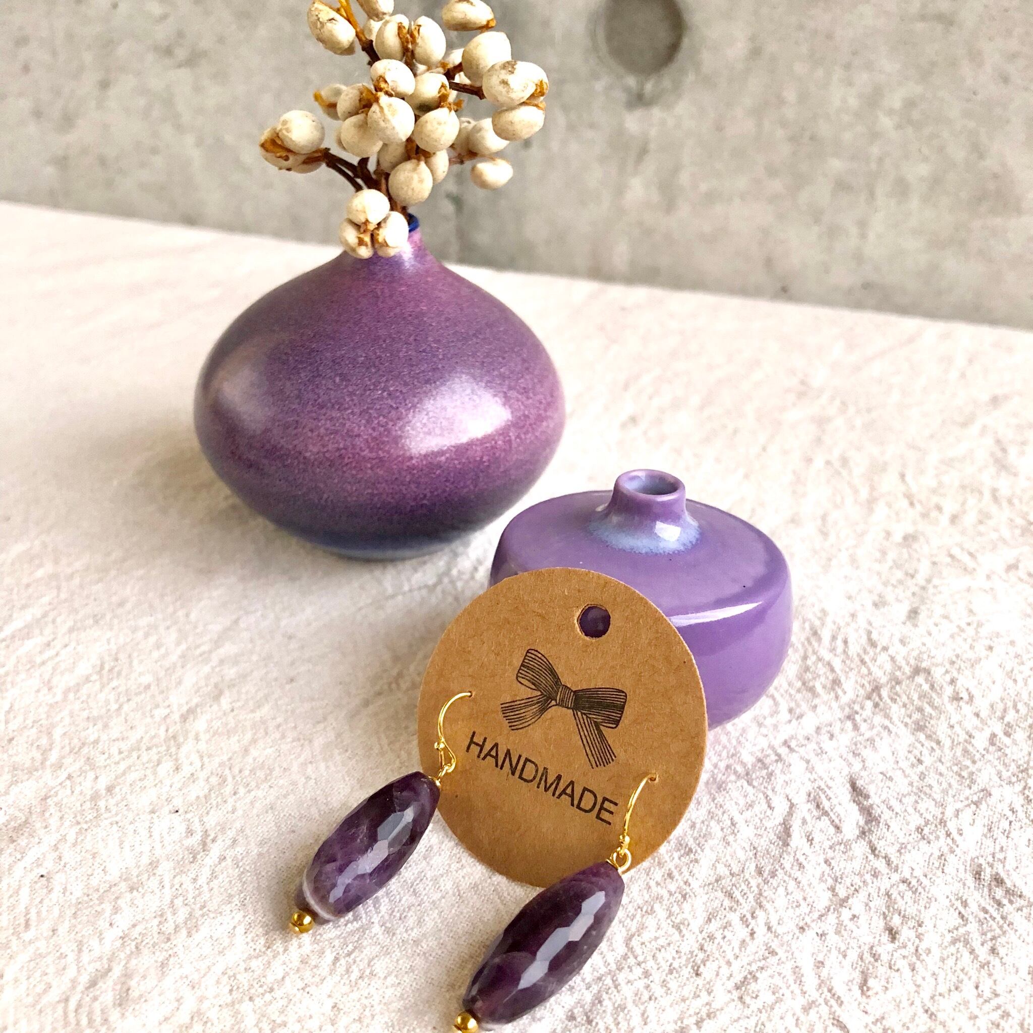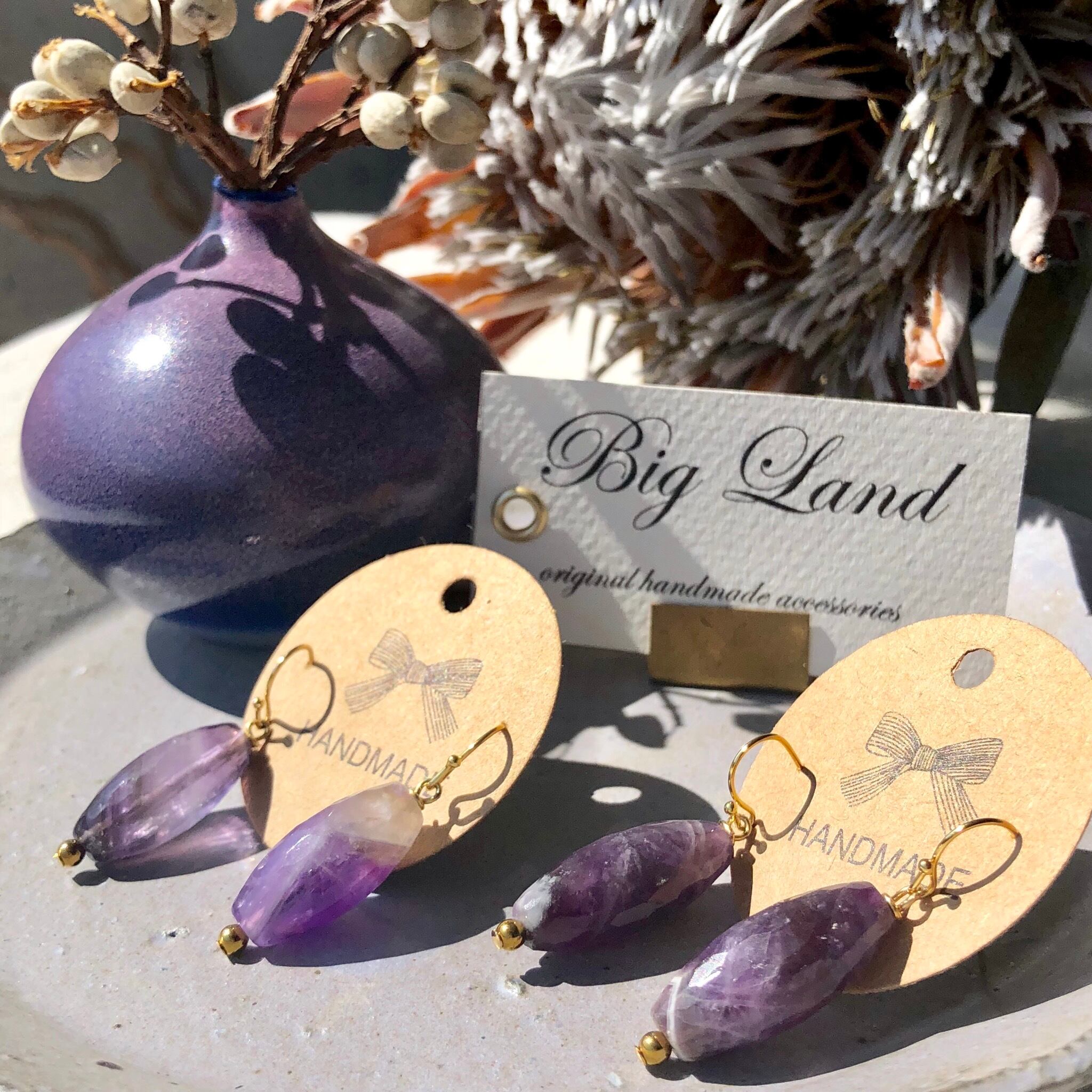 古くから日本では、アメジストは高貴な紫色が人気の石で、儀式にも使われ紫水晶ならではの神秘さを感じる一点物の縞模様とカッティングが大変美しいです