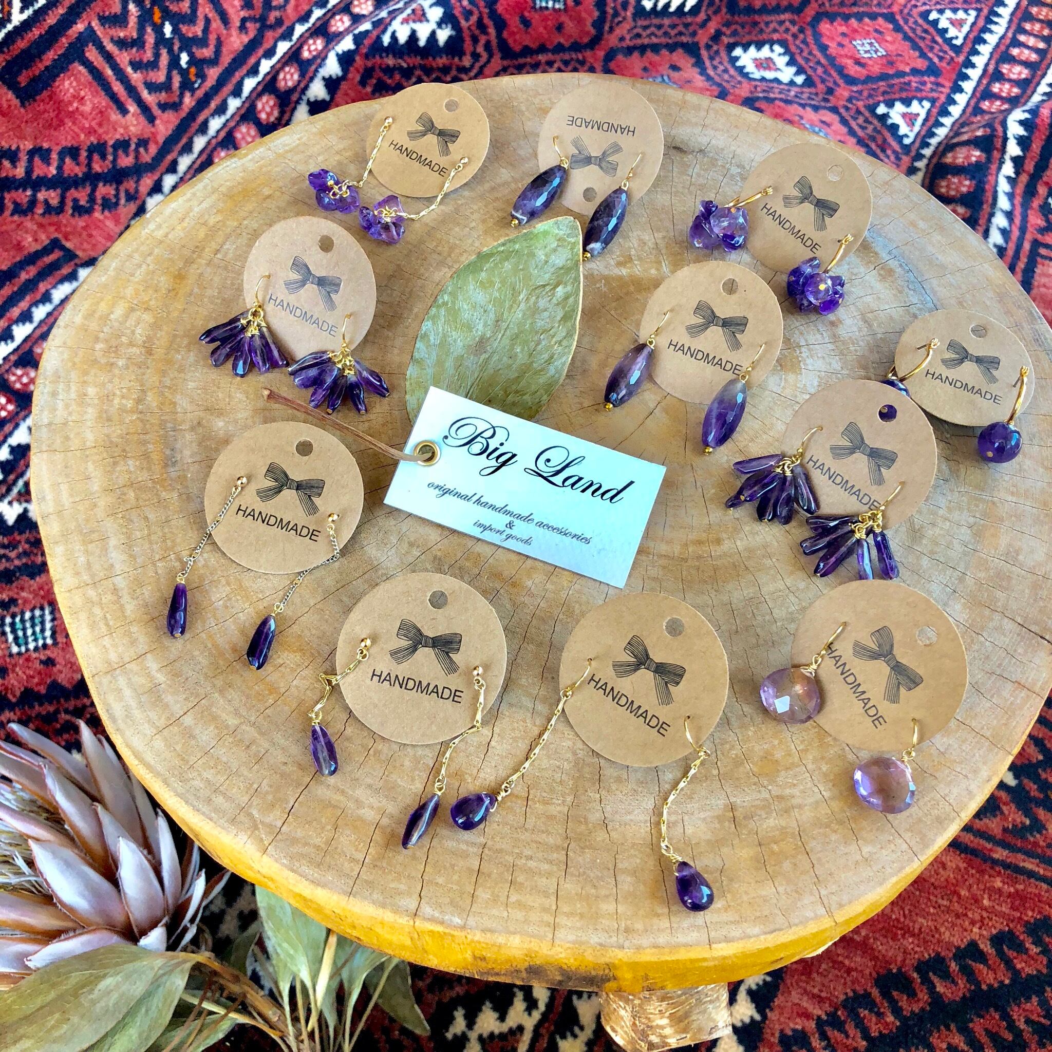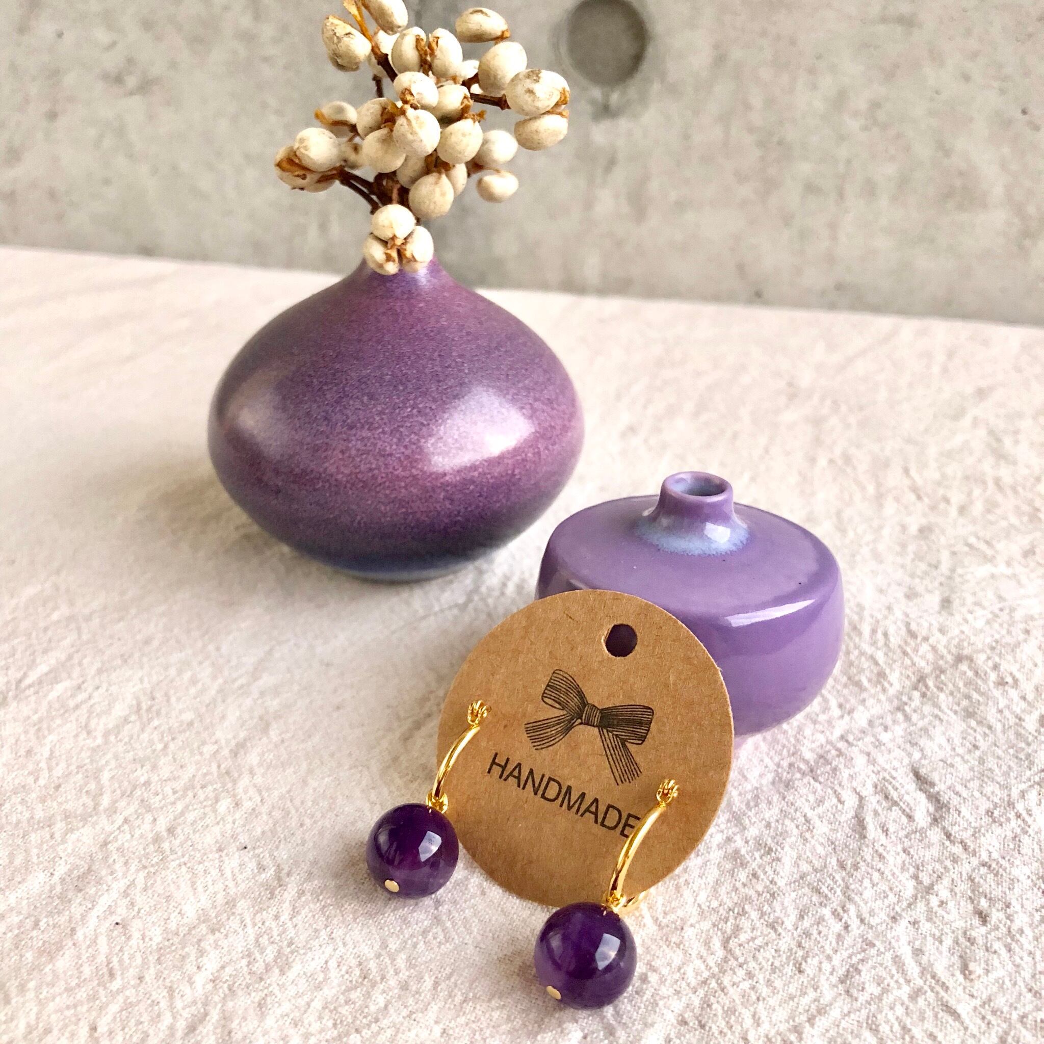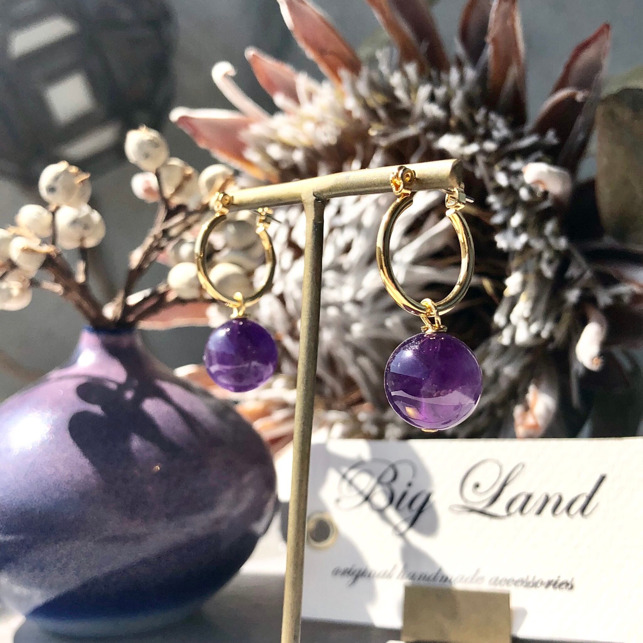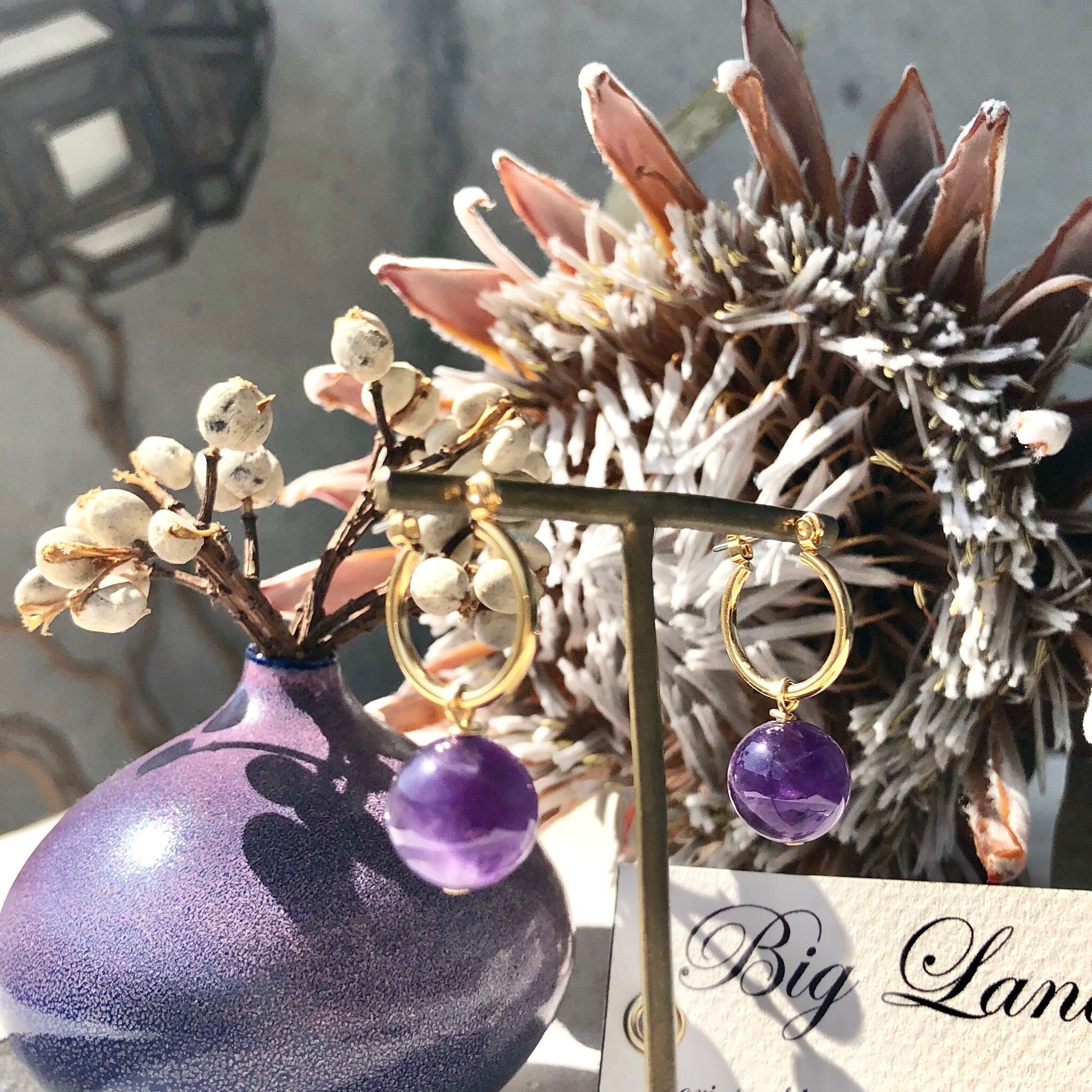 こちらのデザインはどんなお洋服にも合わせ易いフープタイプで、お洋服で紫色を取り入れるのにちょっと抵抗がある方にアクセサリーでトレンドを取り入れると今年らしさがアップします!!!
