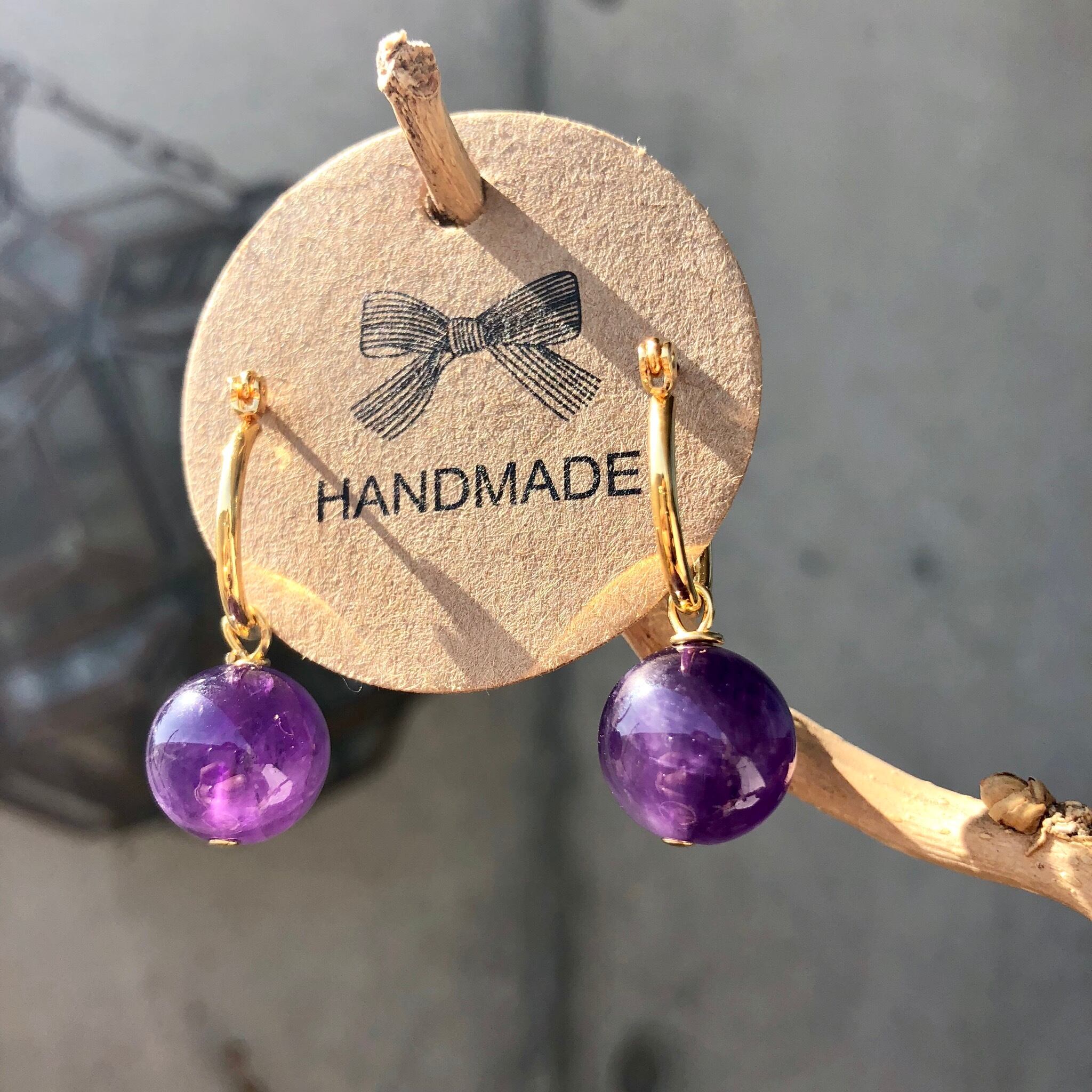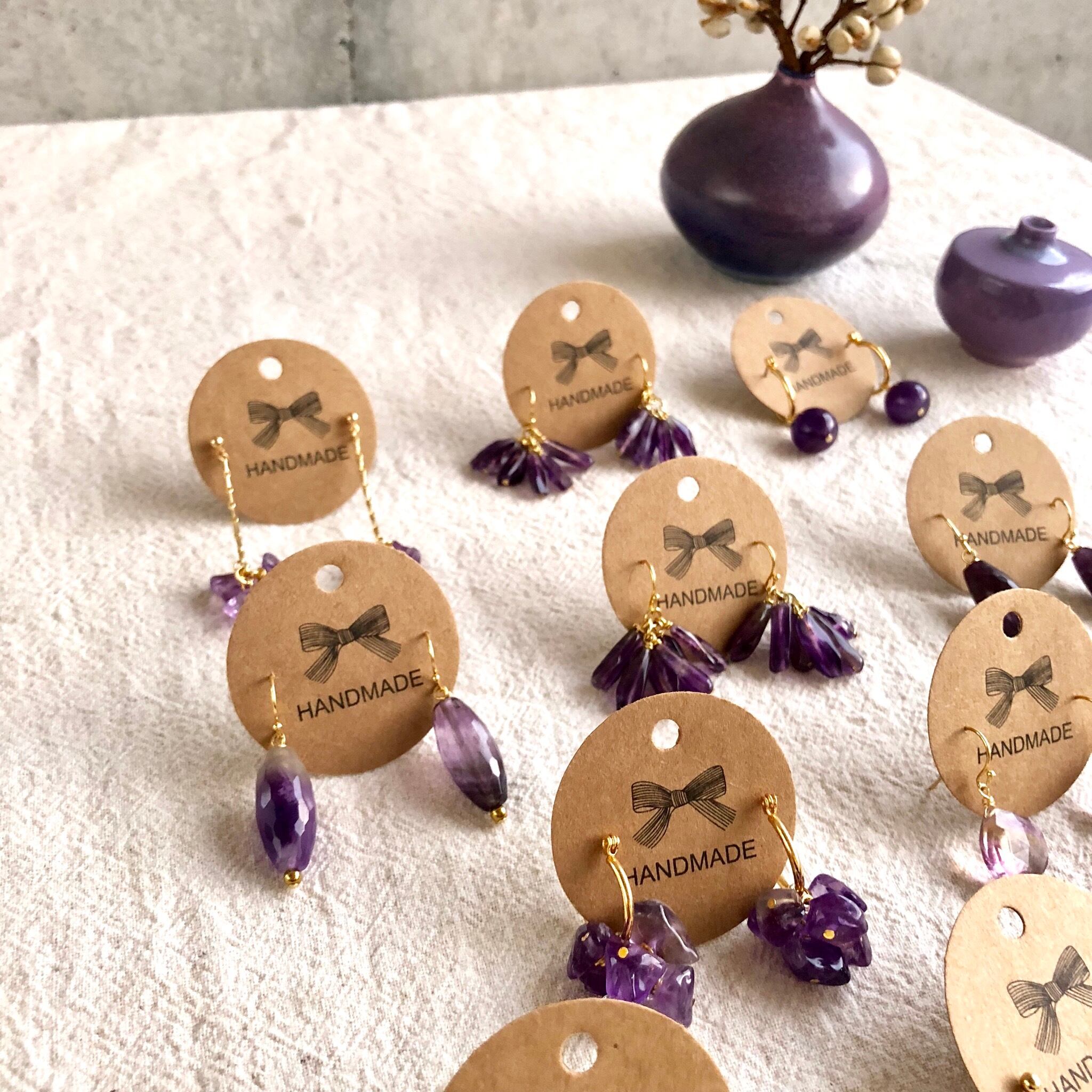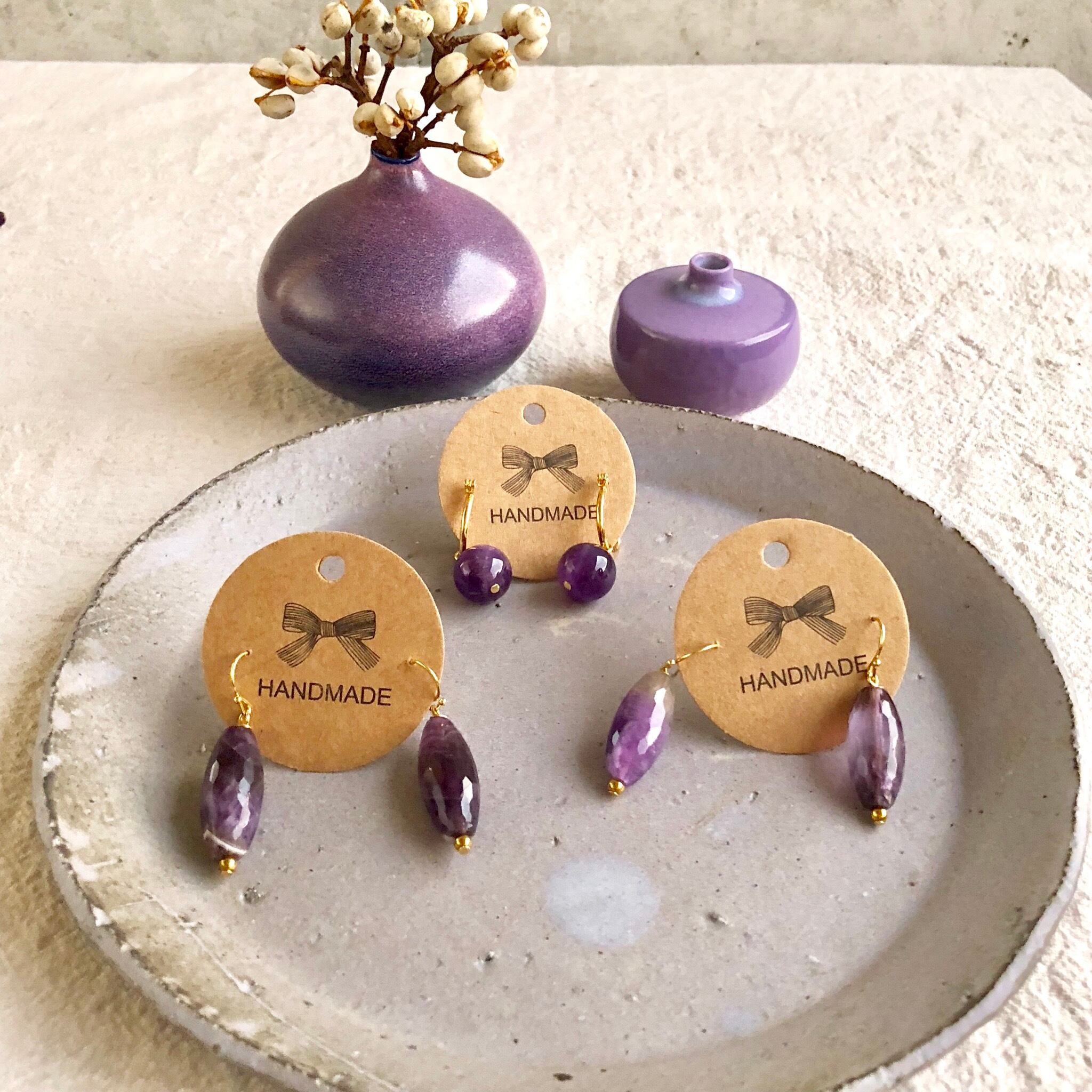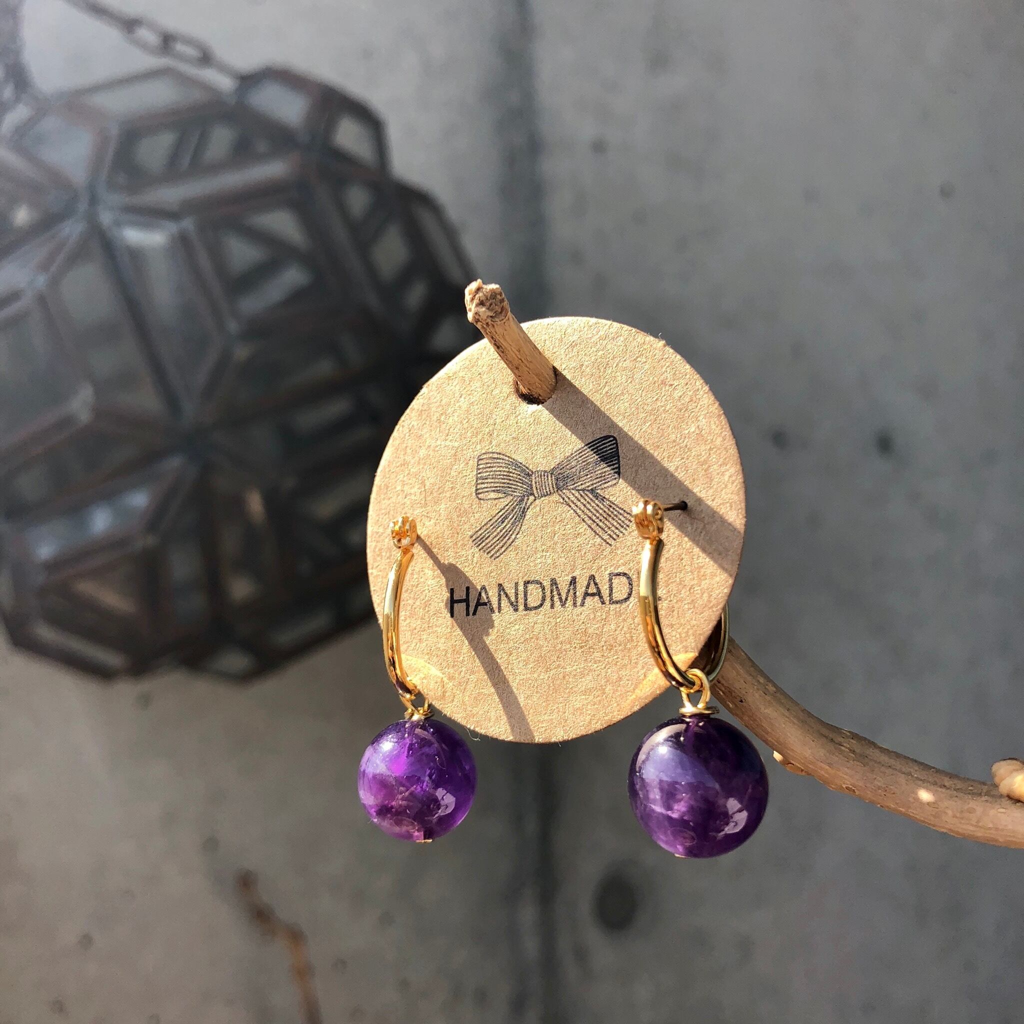 こちらのデザインはどんなお洋服にも合わせ易いフープタイプで、お洋服で紫色を取り入れるのにちょっと抵抗がある方にアクセサリーでトレンドを取り入れると今年らしさがアップします!!!
