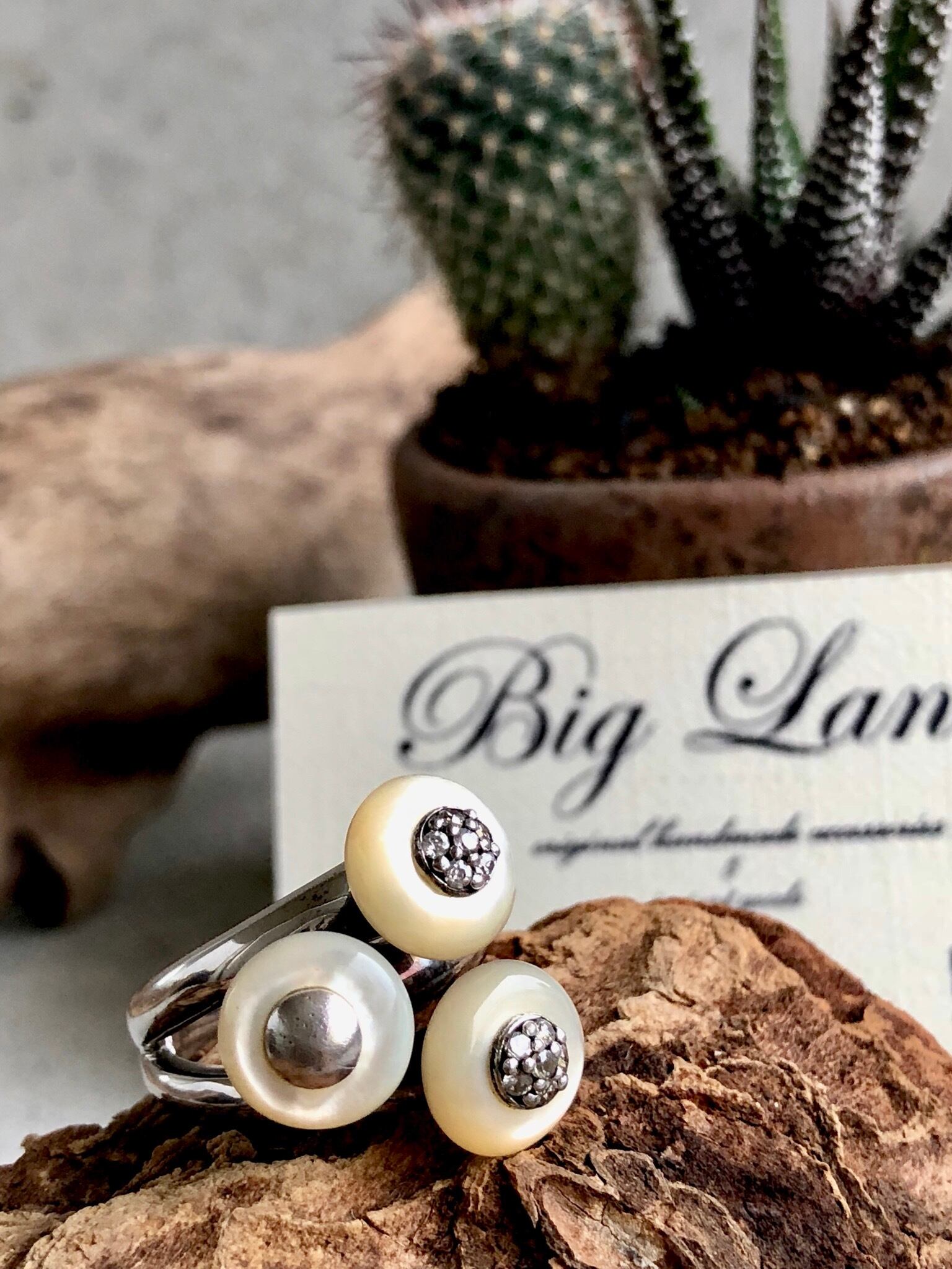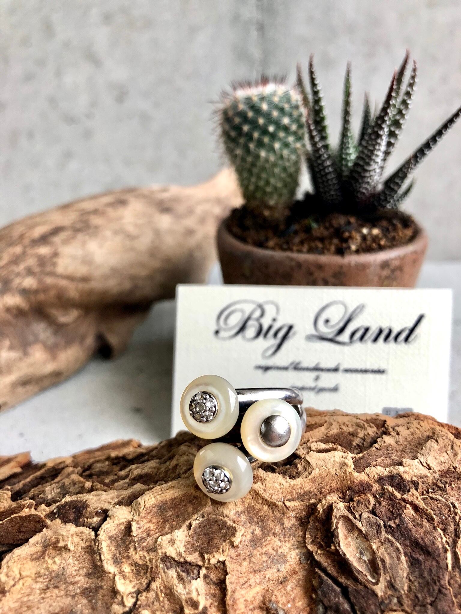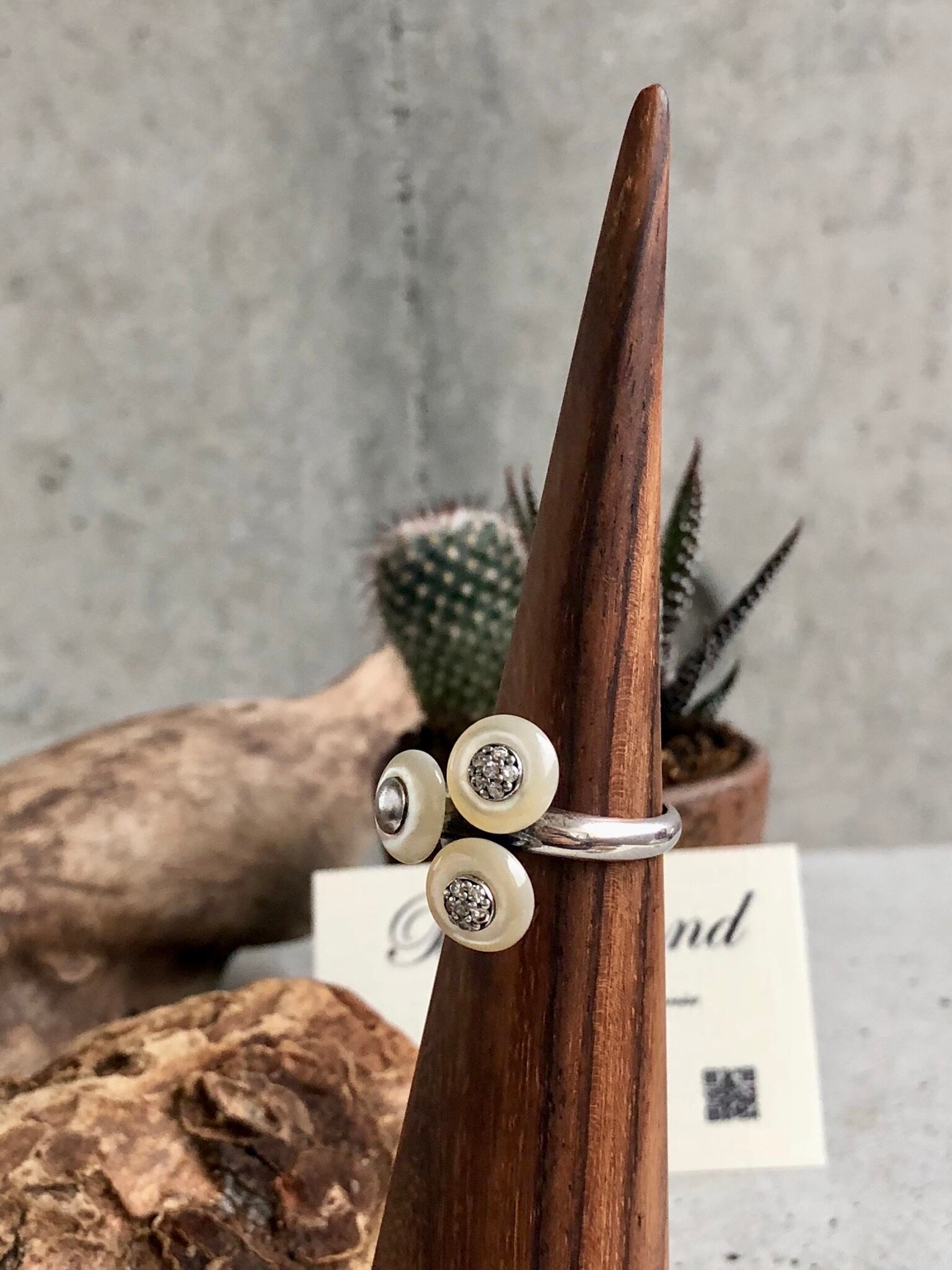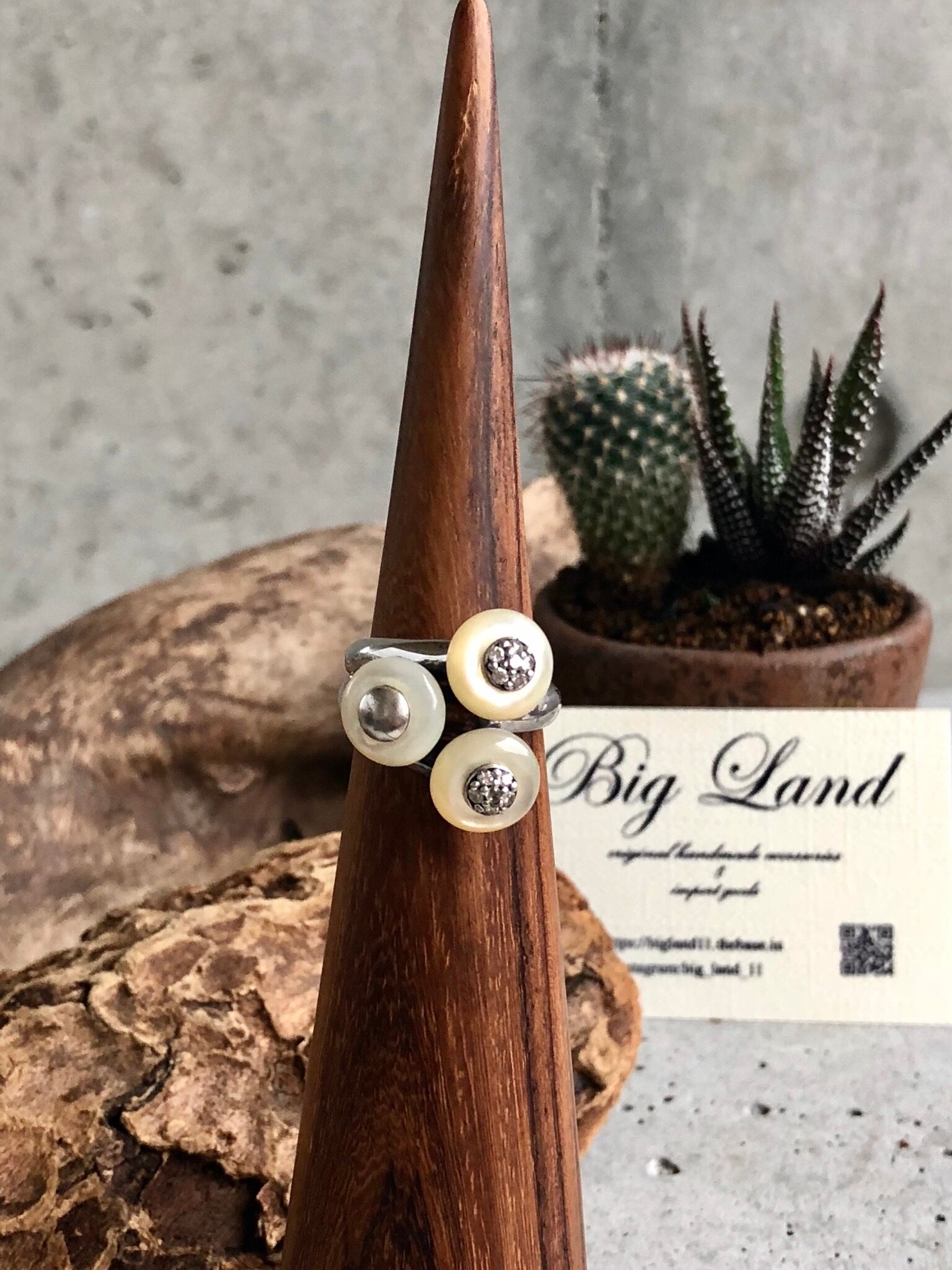 シルバー925と白蝶貝の面白いデザインリング
