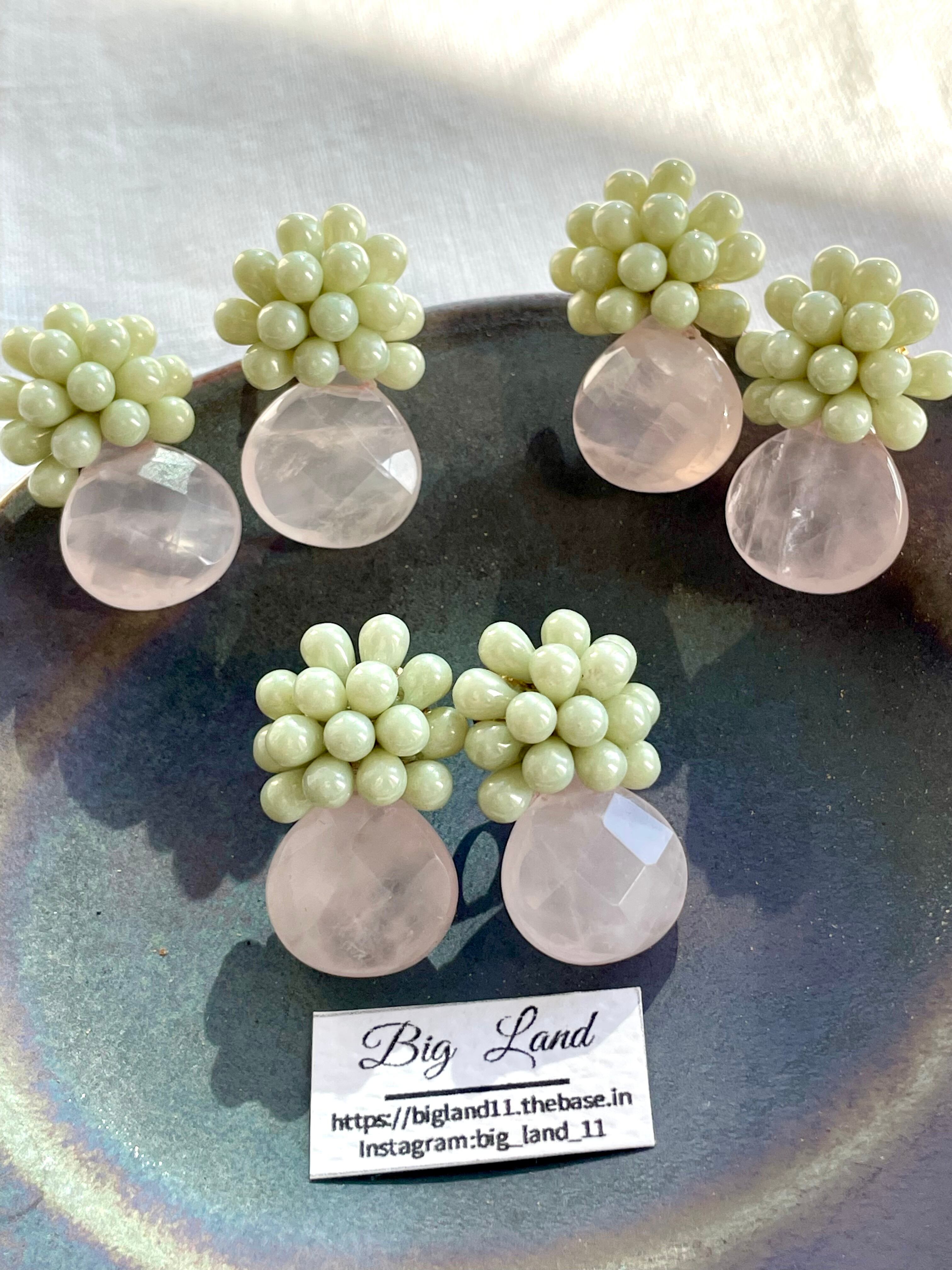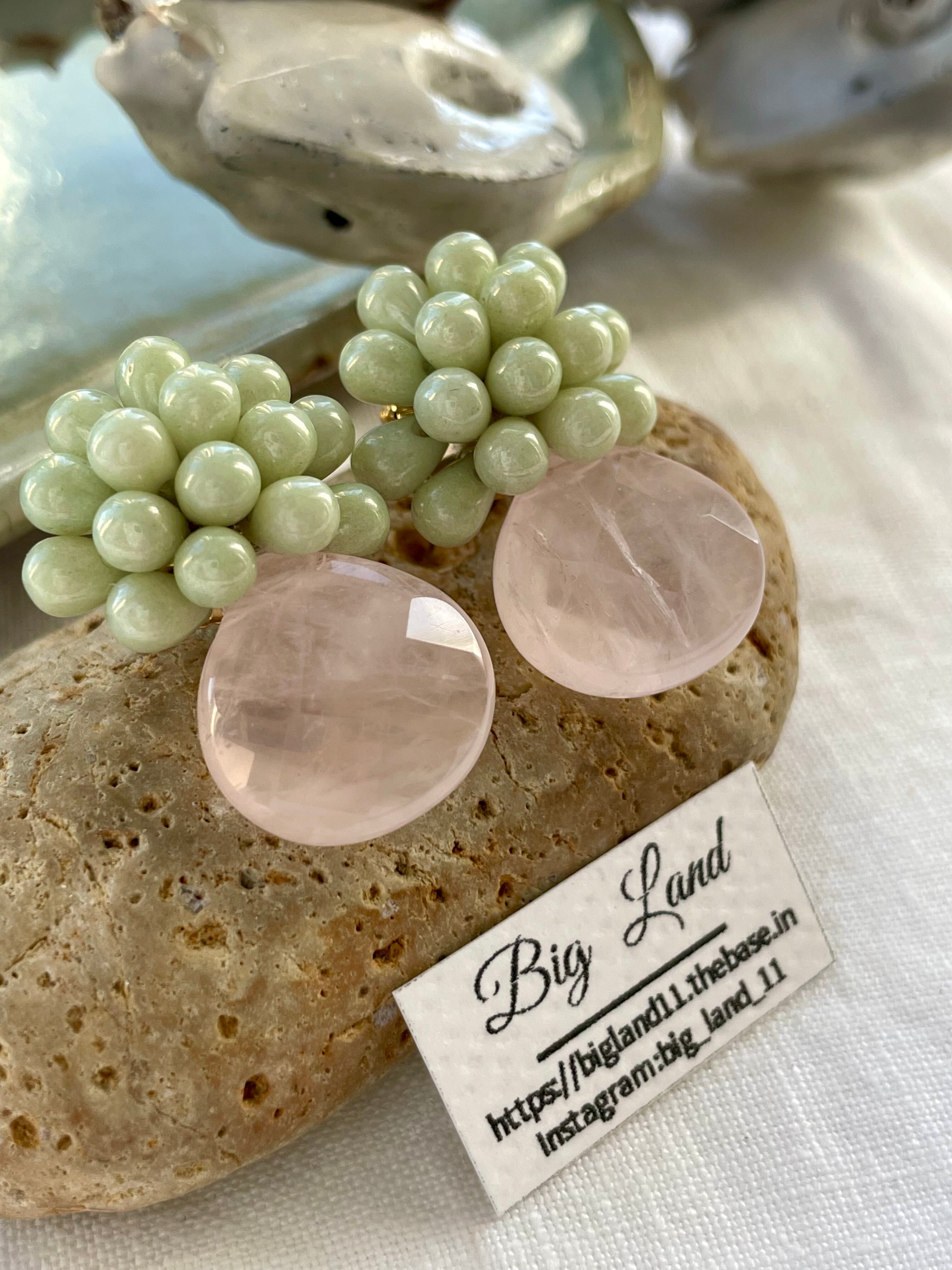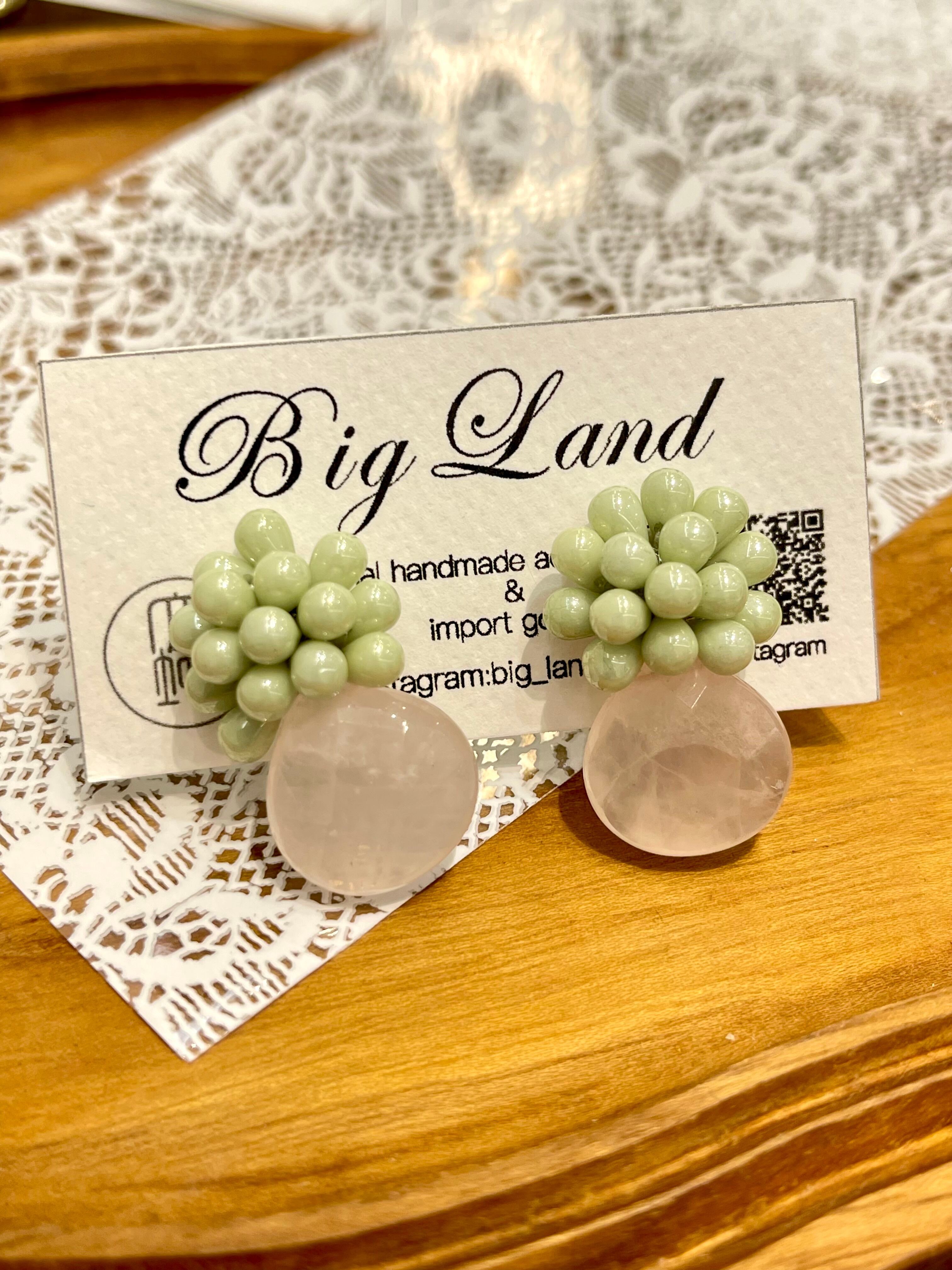 贅沢に大粒多面カットローズクォーツとチェコガラスを組み合わせ、上品で高級感があり他とは被らないデザインが皆様から大変喜ばれPOPUPで完売御礼でした!!