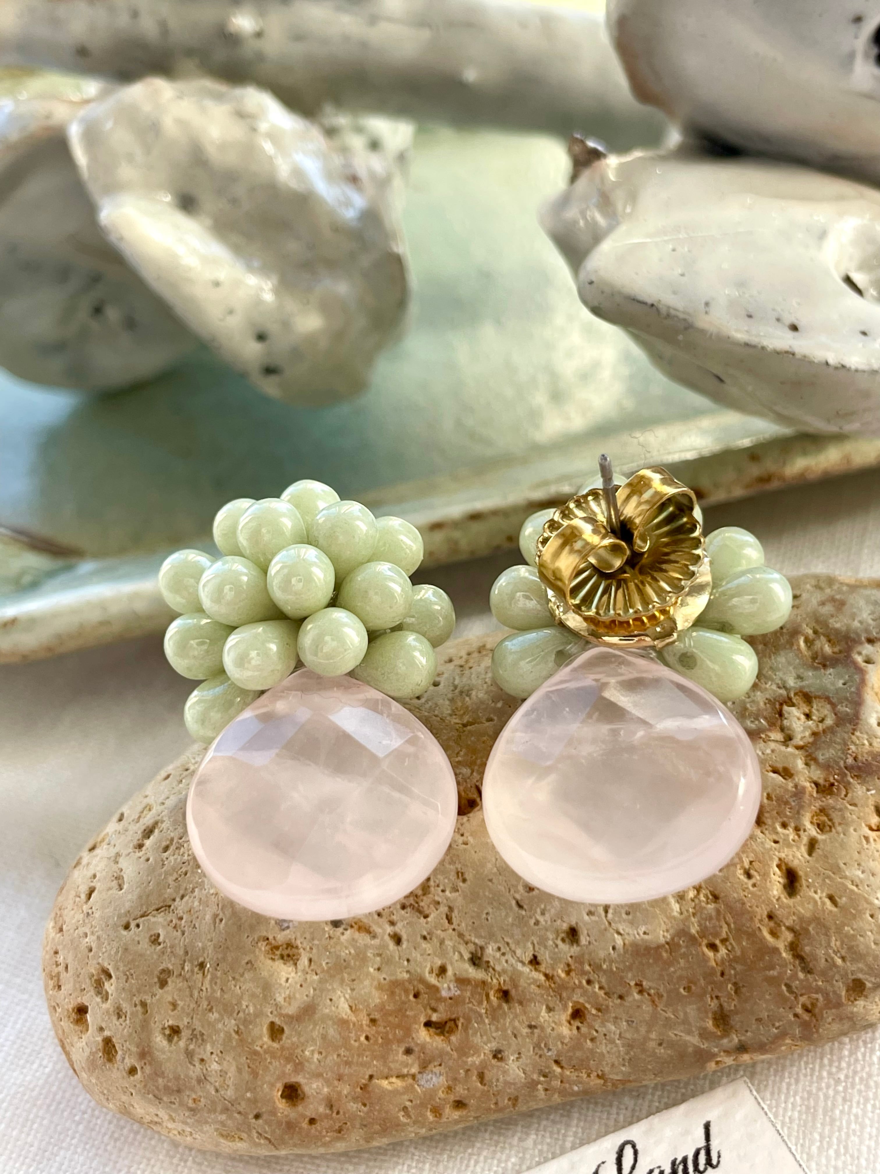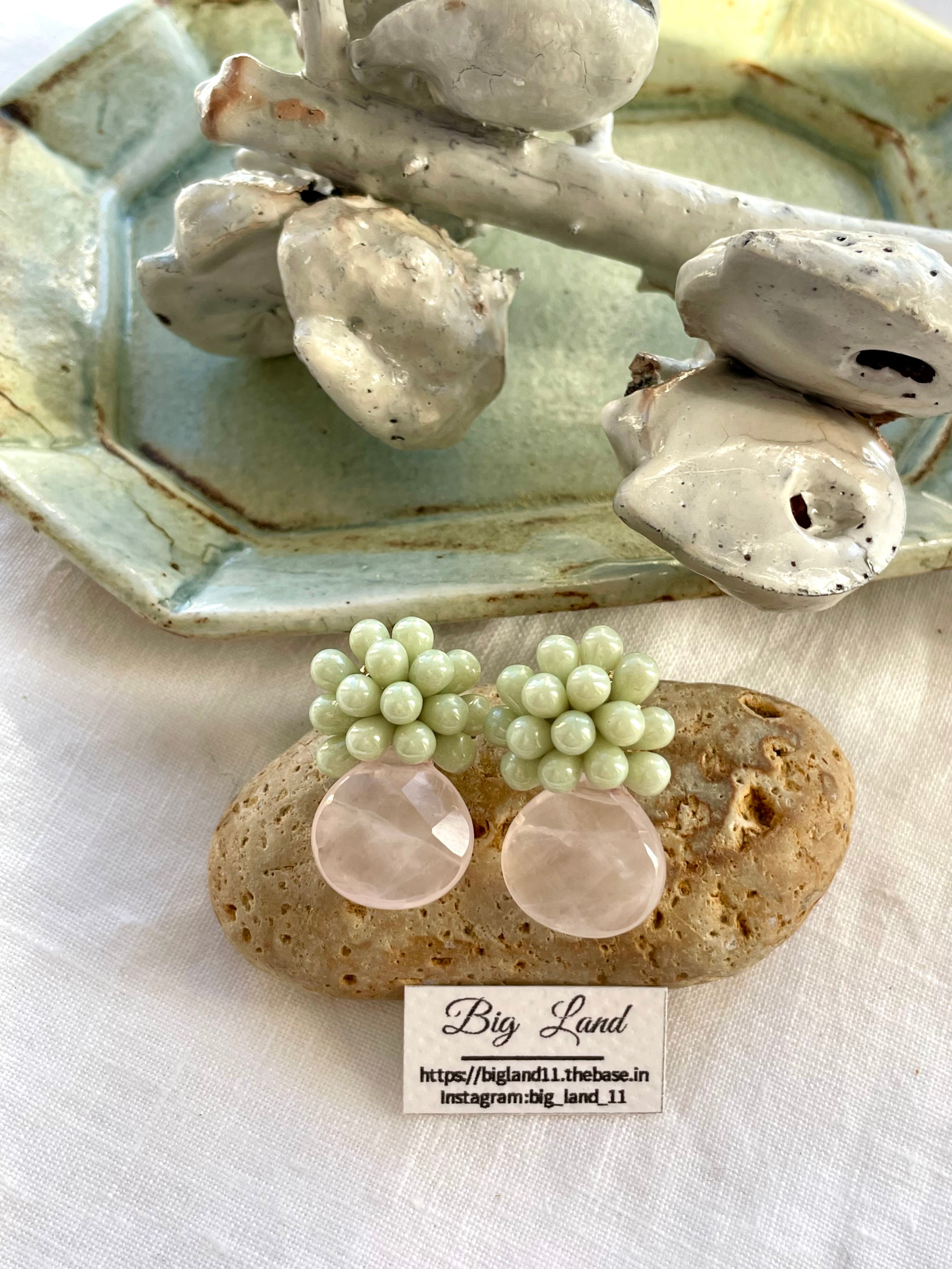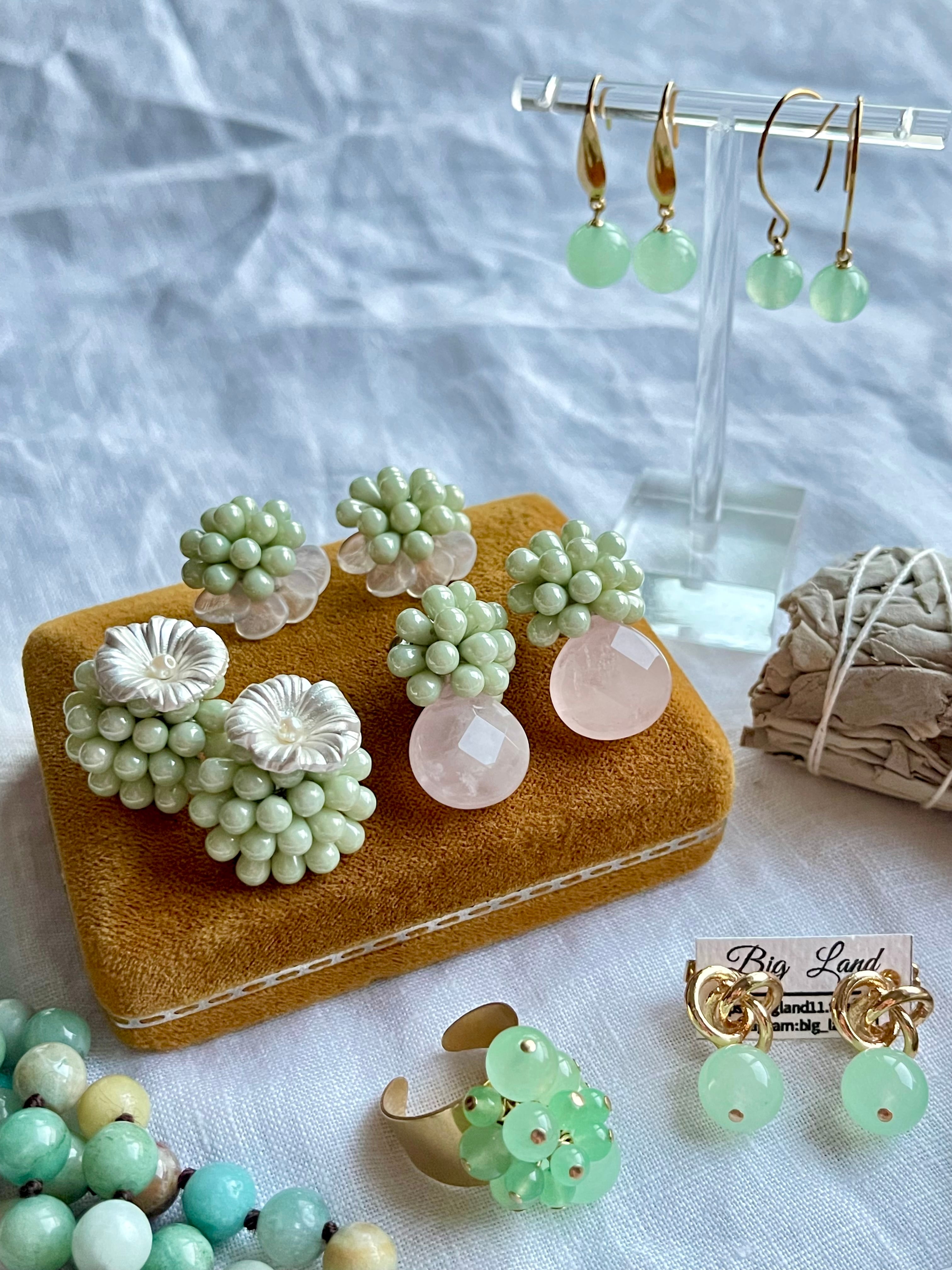 贅沢に大粒多面カットローズクォーツとチェコガラスを組み合わせ、上品で高級感があり他とは被らないデザインが皆様から大変喜ばれPOPUPで完売御礼でした!!