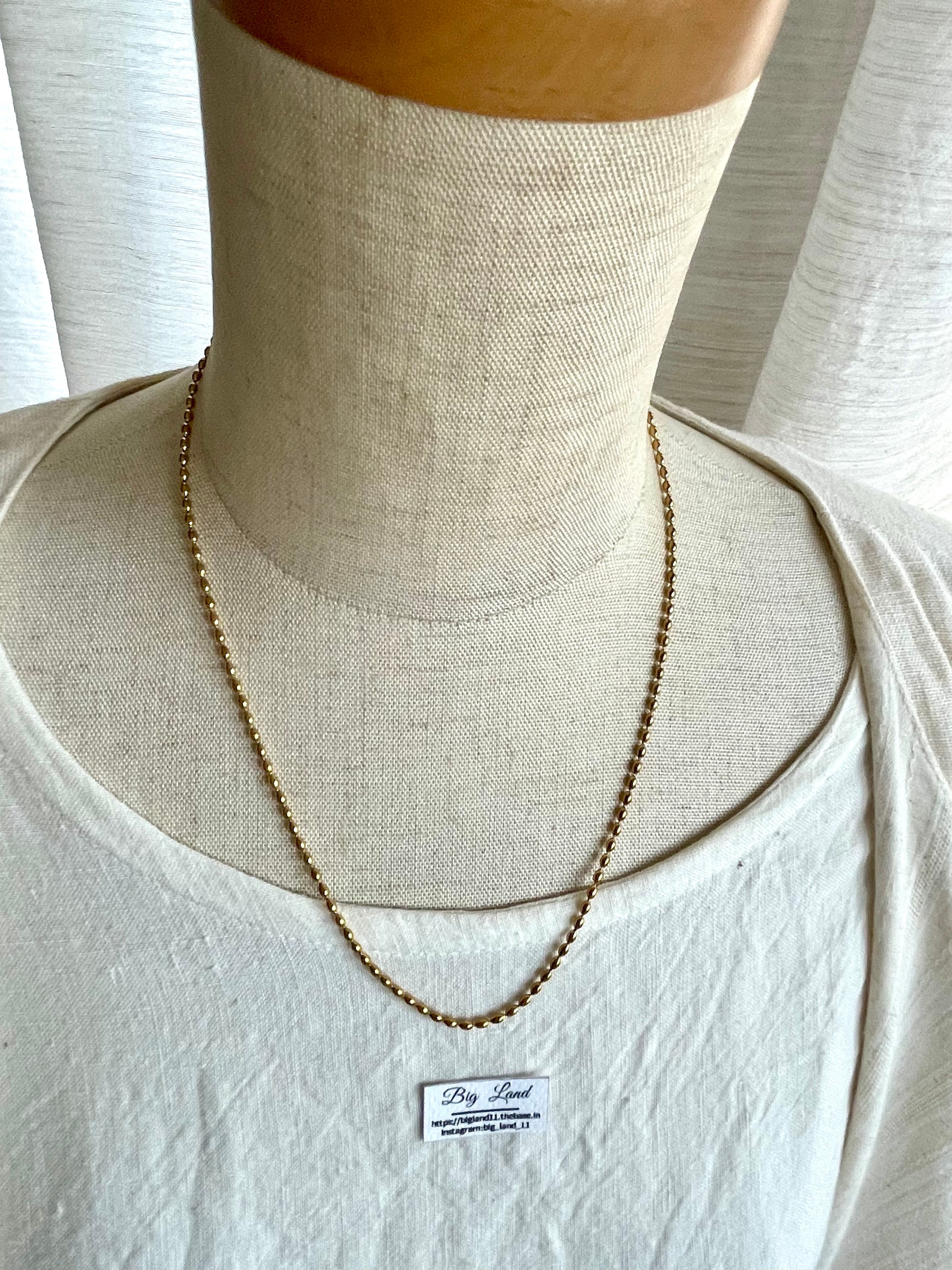 全長約45cmのステンレスチェーンは、耐久性があり、肌に優しくアレルギーをお持ちの方にも安心してお使いいただけます。