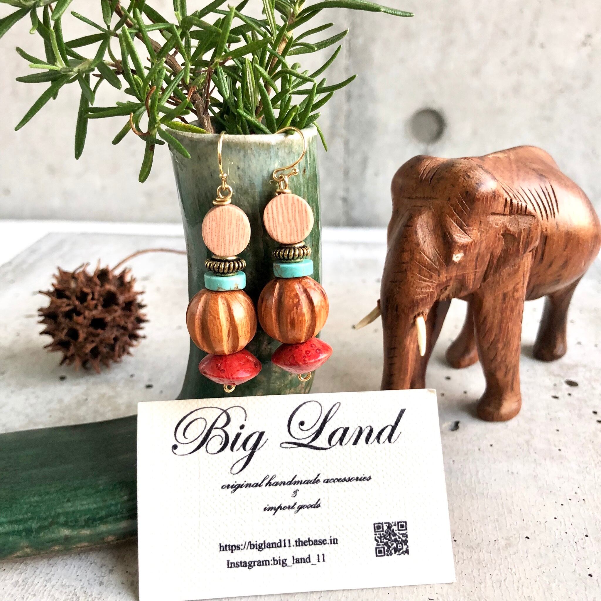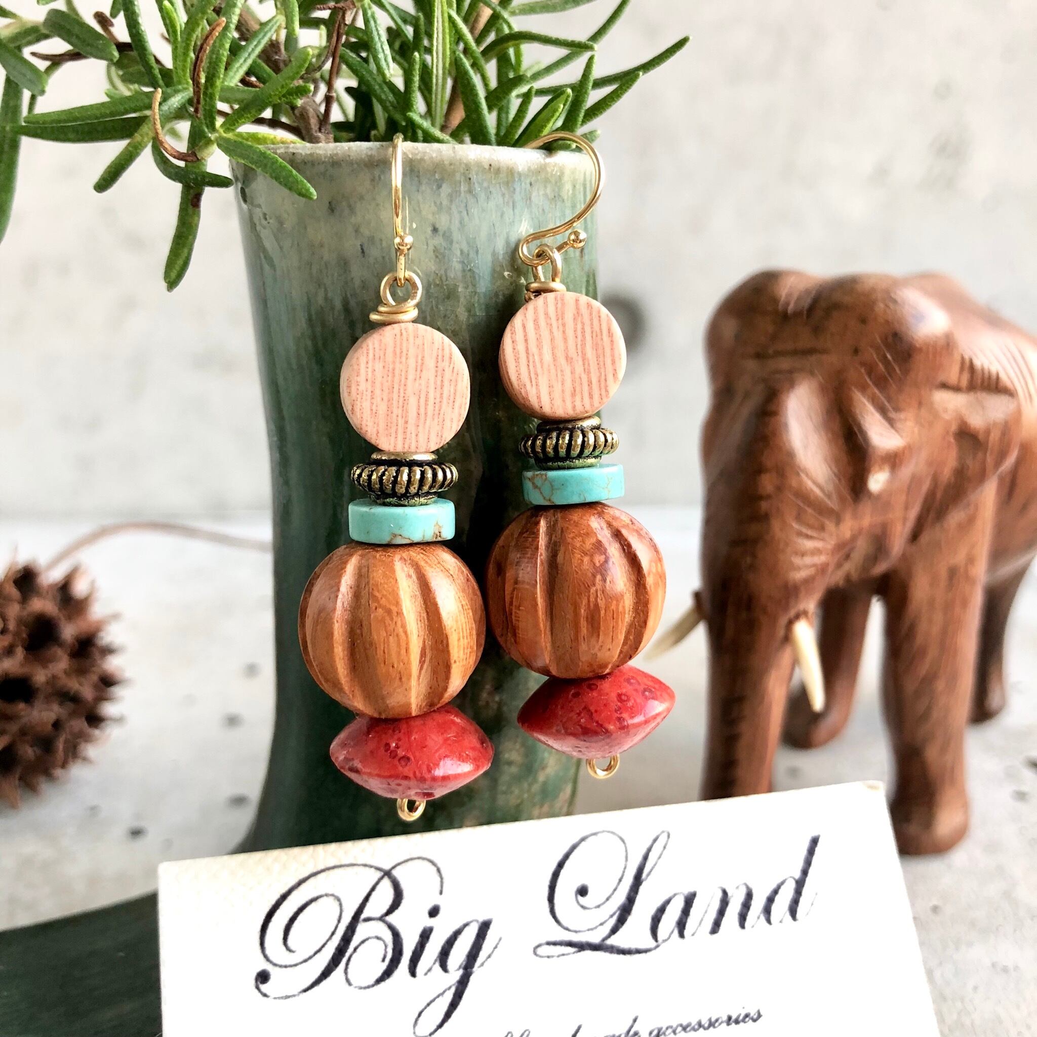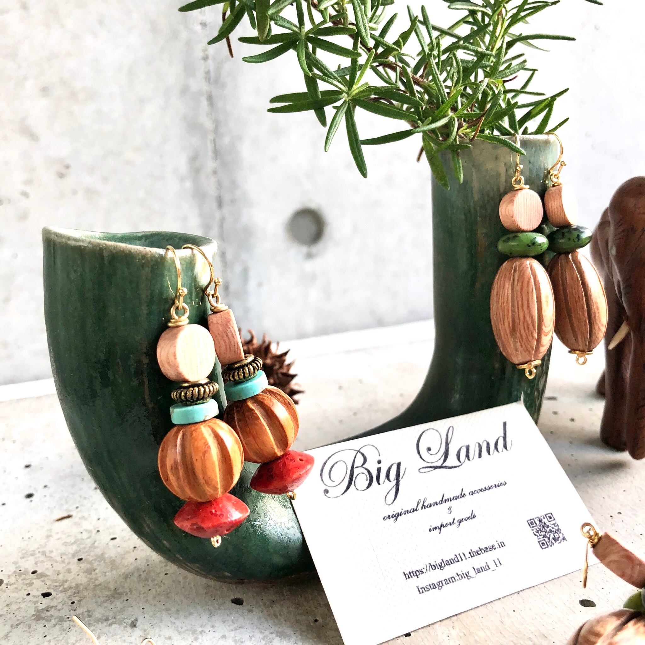 人気のカービーングウッドに真鍮、ターコイズ、珊瑚との組み合わせがネイティヴな雰囲気を醸し出して個性が光るデザインに仕上げました✨