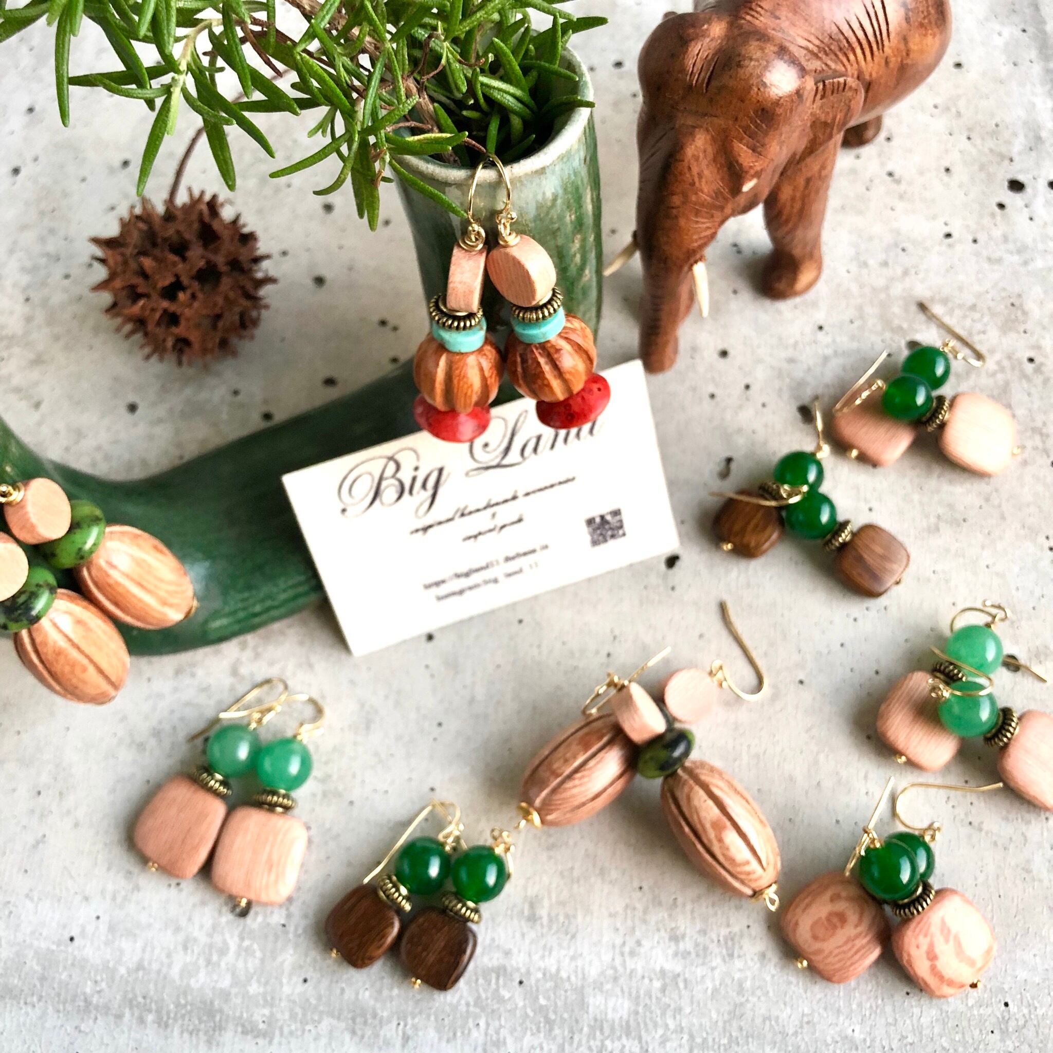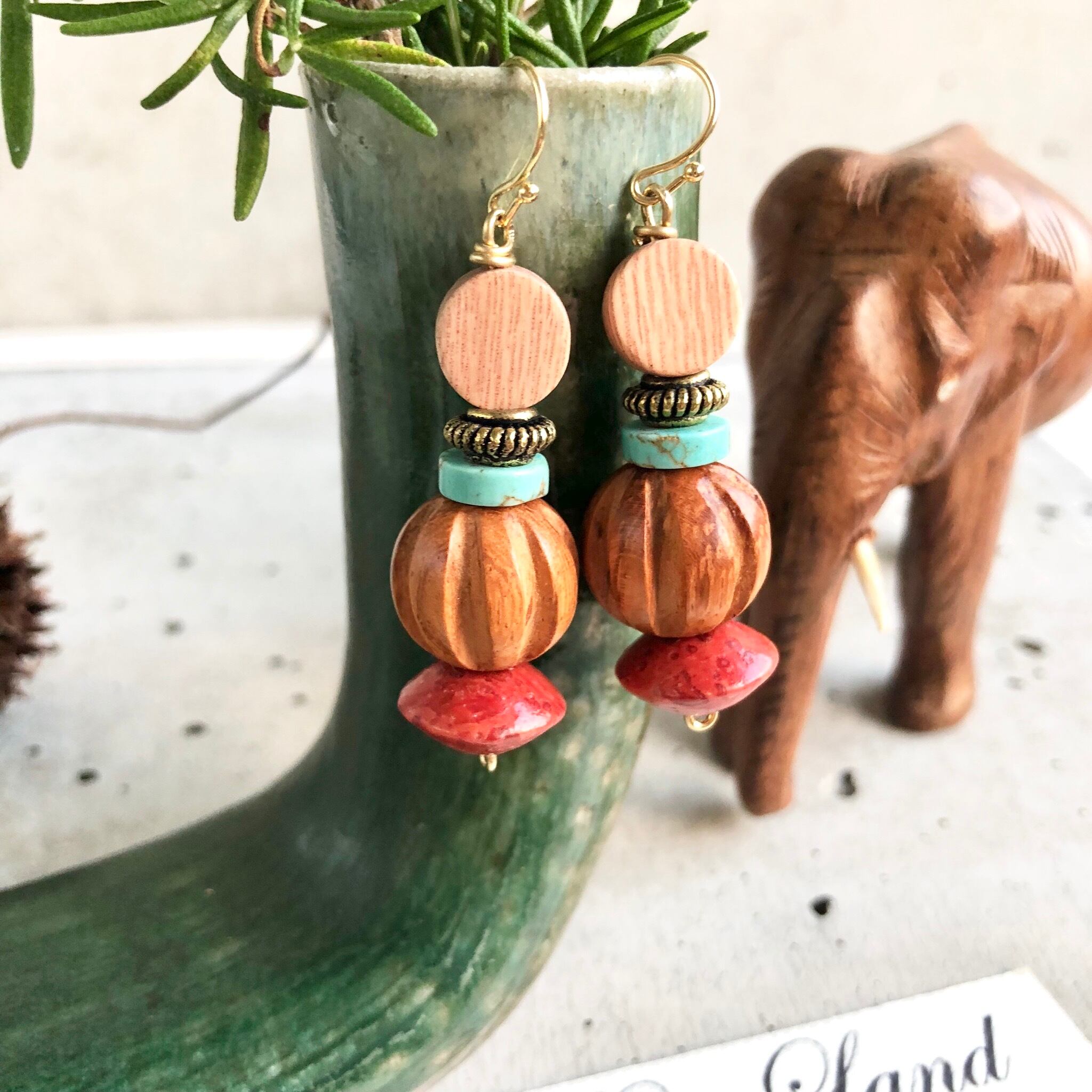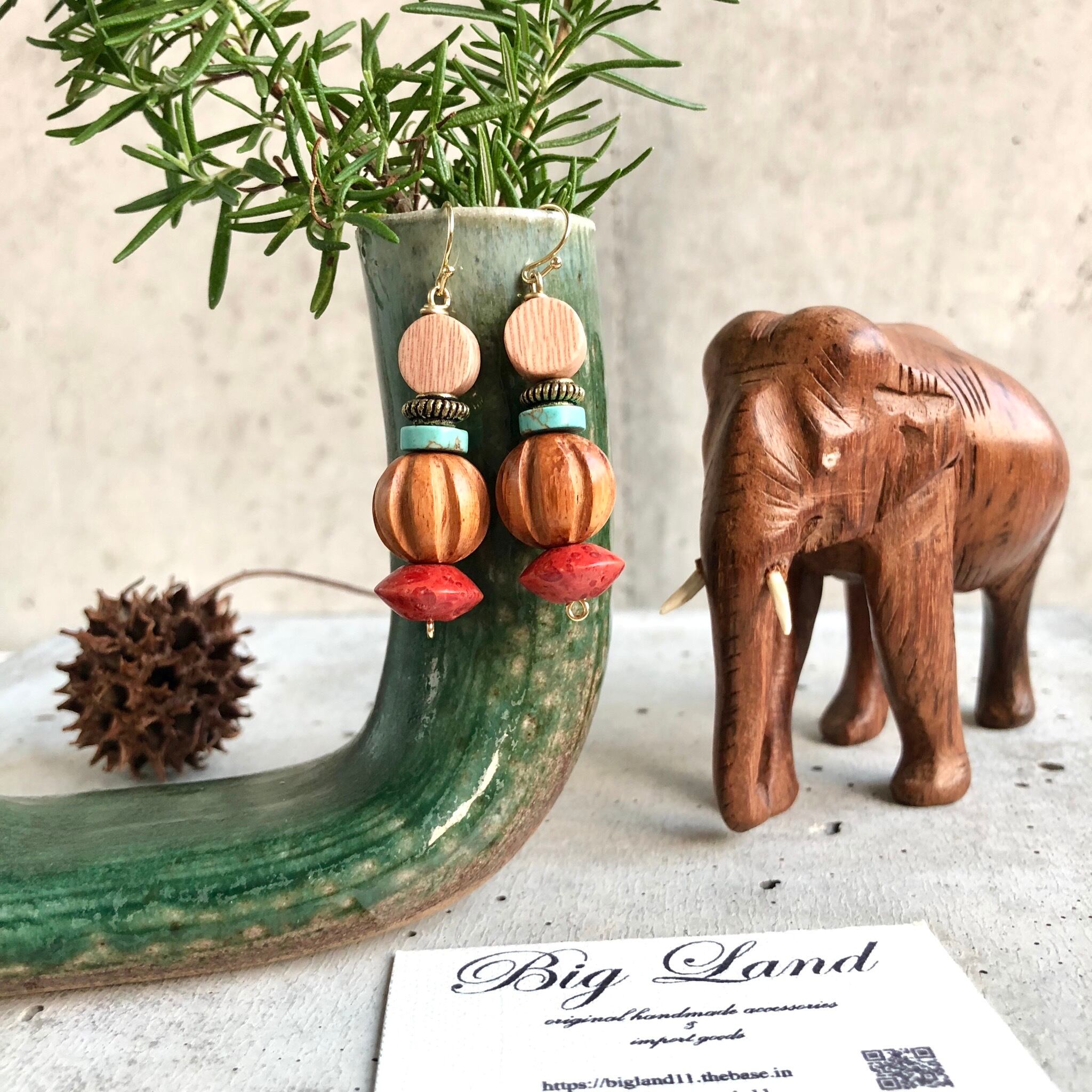 人気のカービーングウッドに真鍮、ターコイズ、珊瑚との組み合わせがネイティヴな雰囲気を醸し出して個性が光るデザインに仕上げました✨