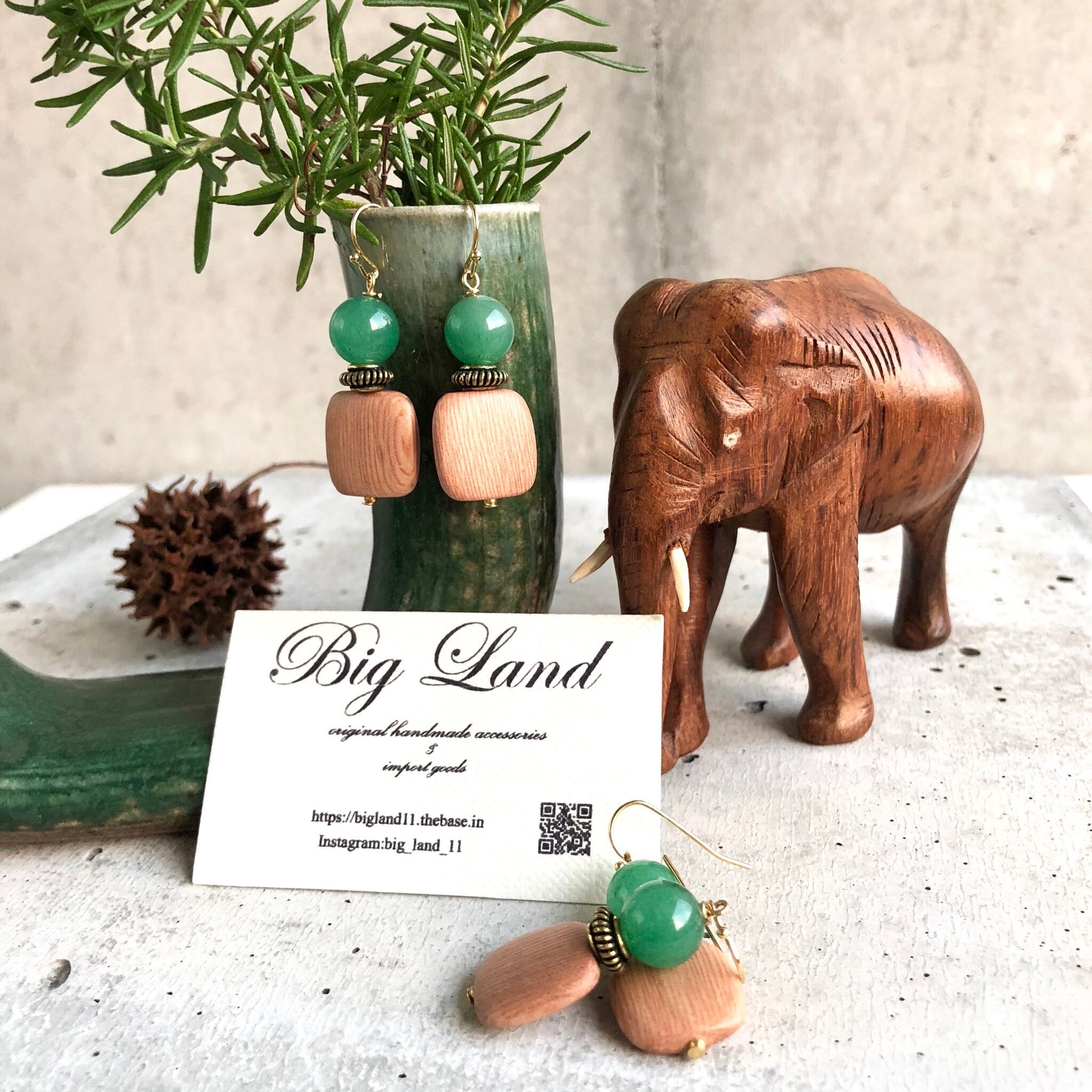 シンプルなスクエアのウッドに上品な綺麗色のグリーンアベンチュリンとの組み合わせが優しい雰囲気で、グリーン系でワントーンコーデにしたり、ナチュラルなお洋服との組み合わせもにもオススメで肌馴染みも良くヘルシーな雰囲気になります✨