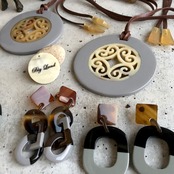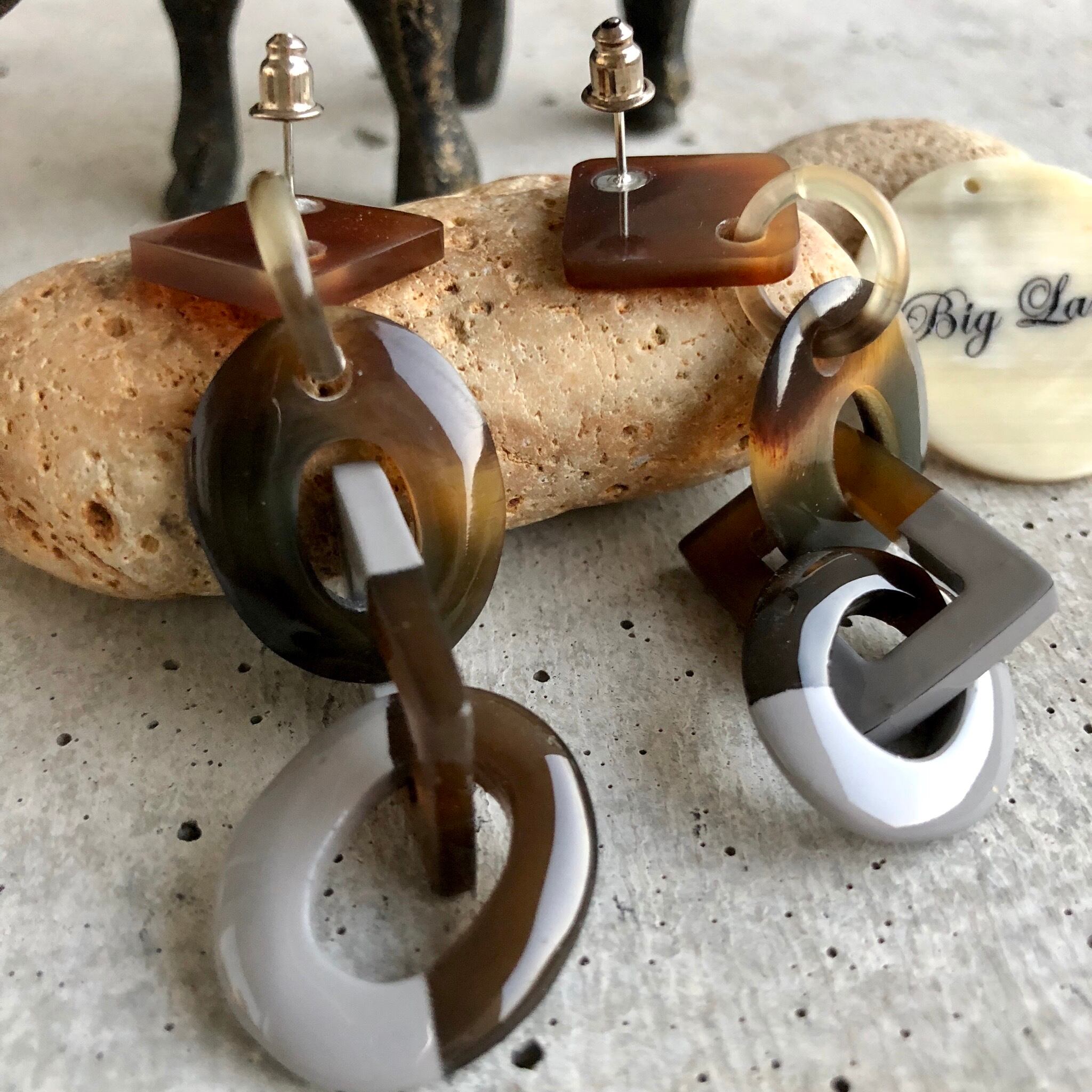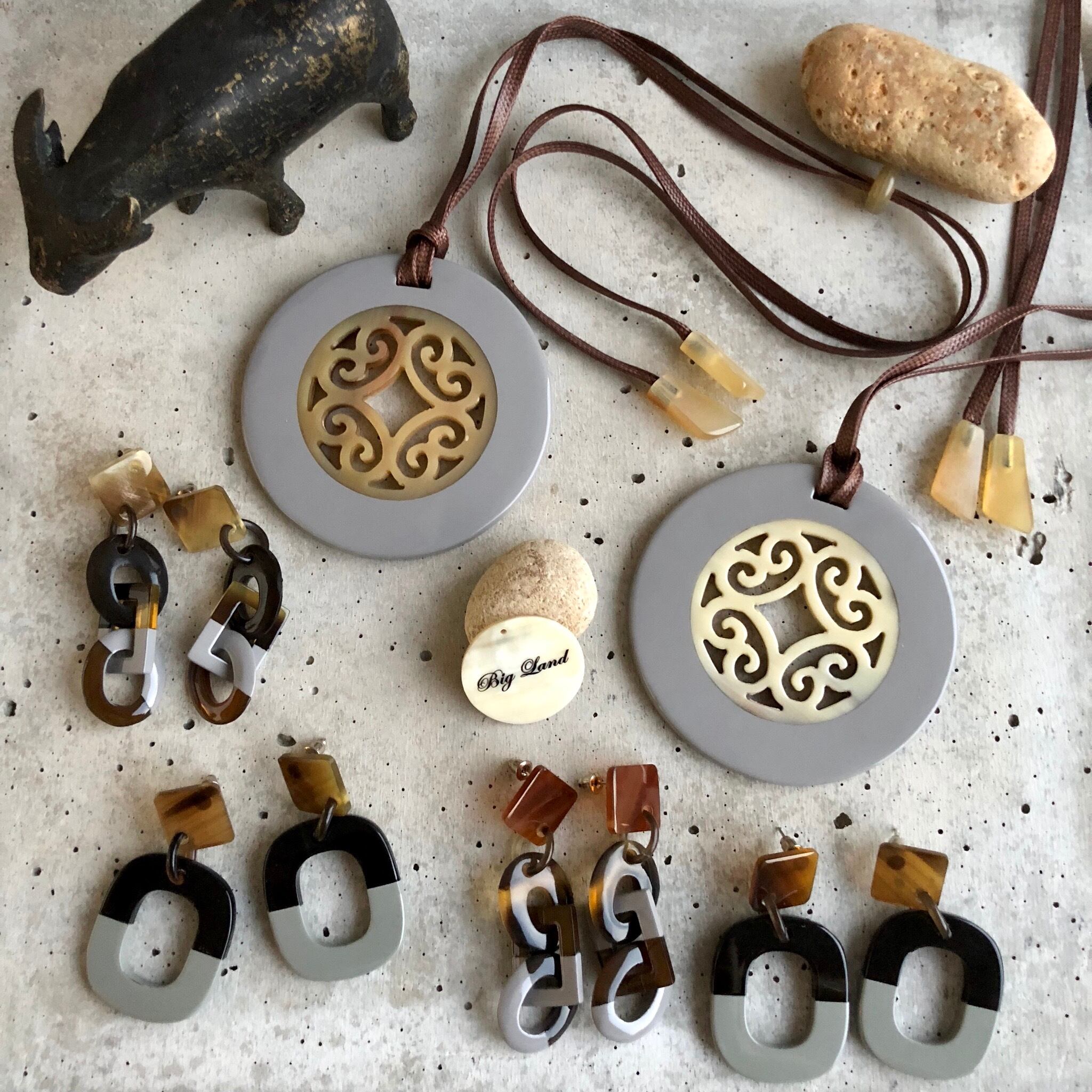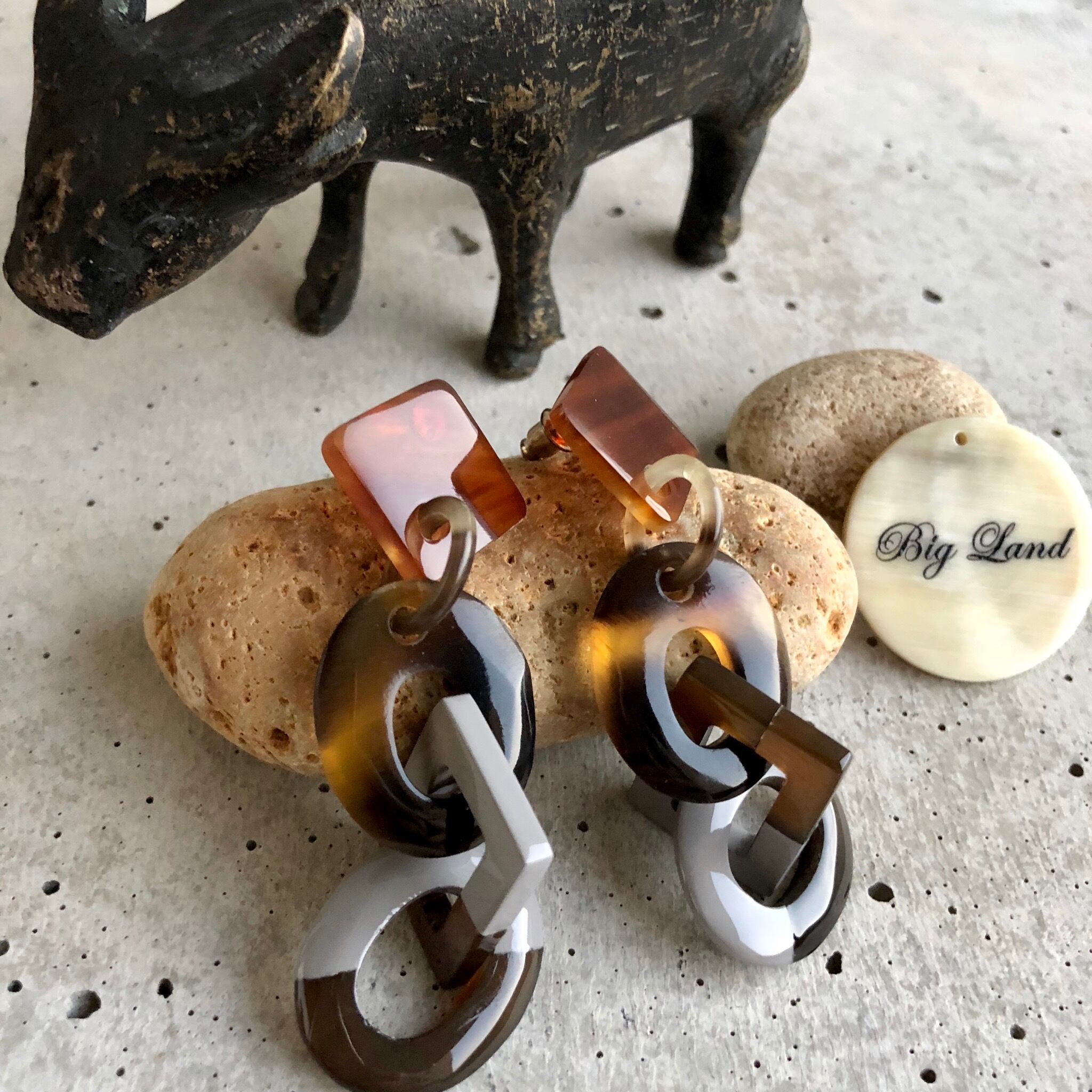 水牛角にグレーの漆塗りした大変上品なデザインで、スクエアと楕円の縦長デザインが洗練された雰囲気で軽いのが水牛アクセサリーの特徴です✨
