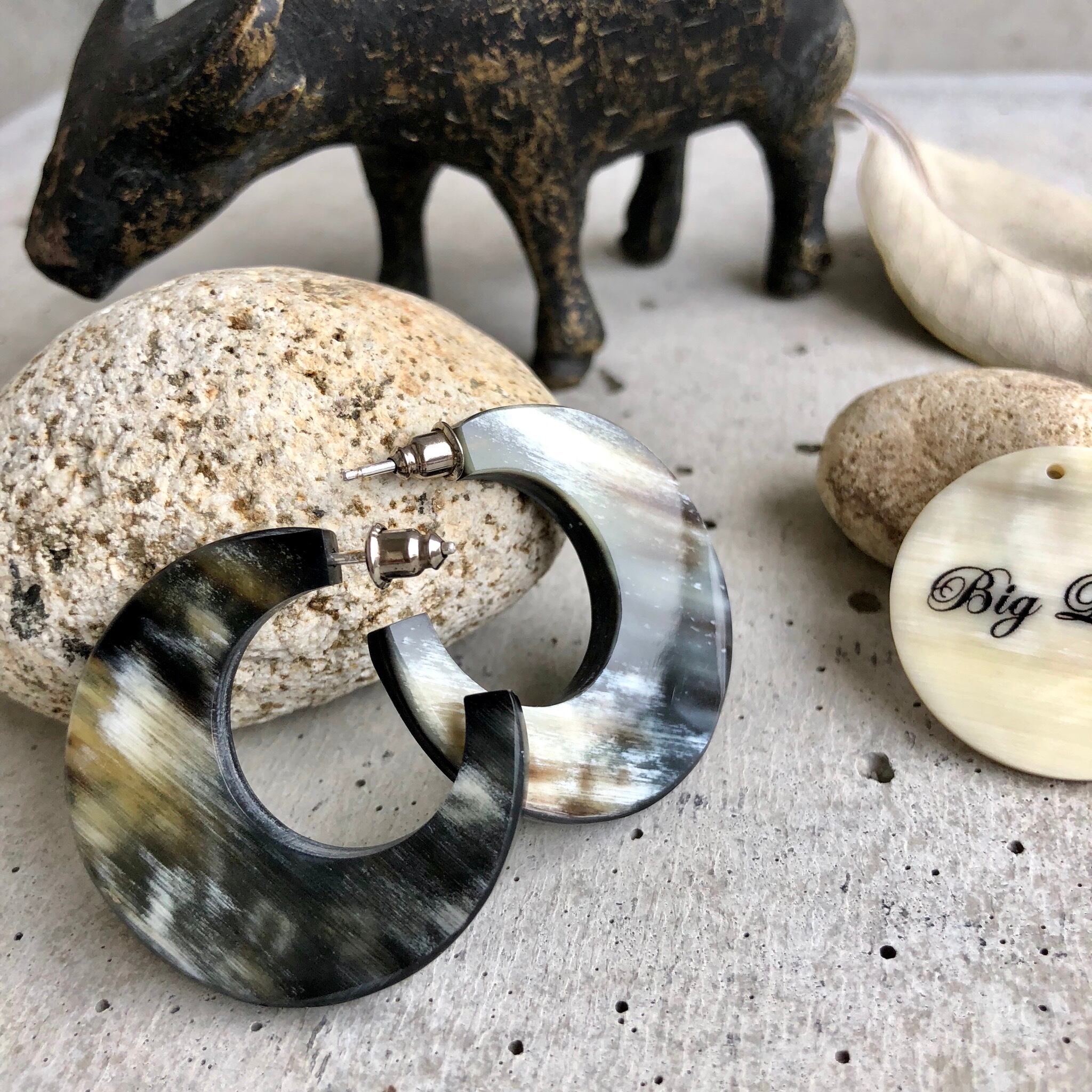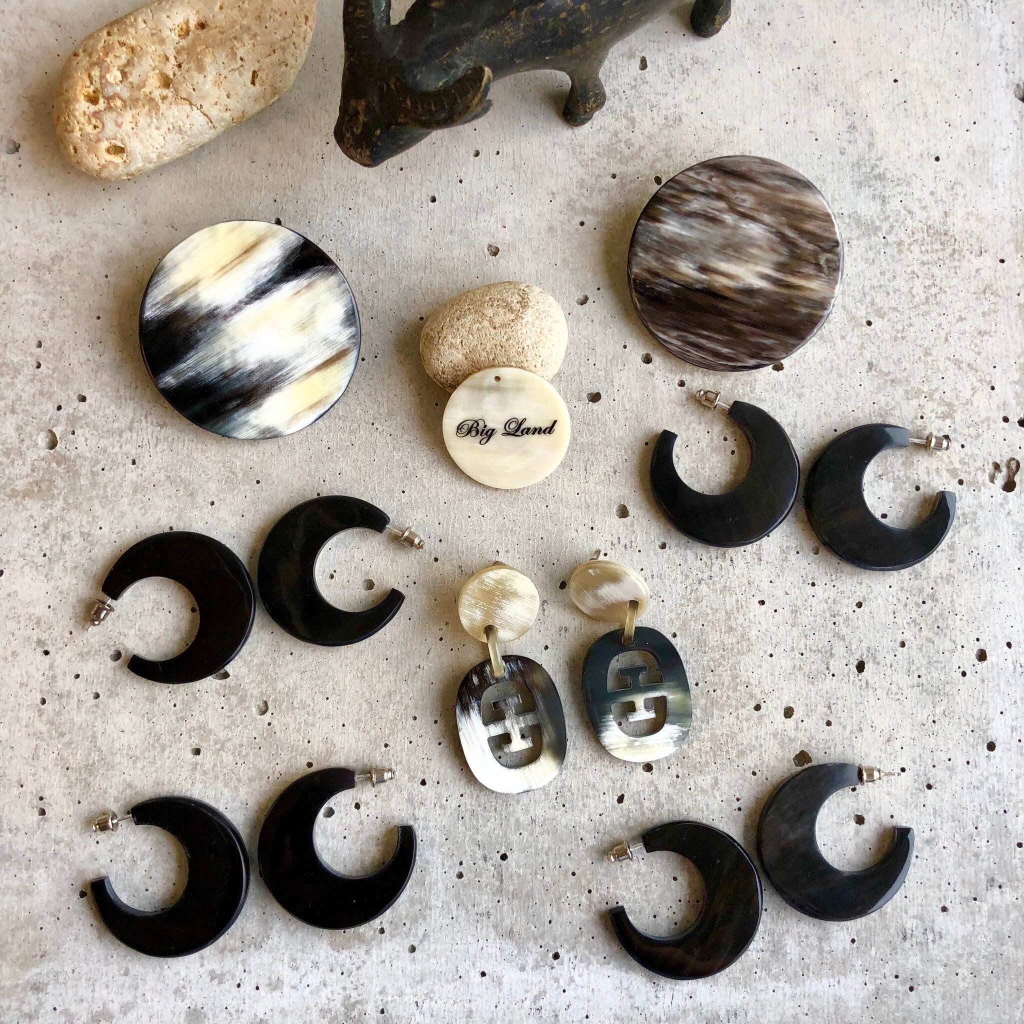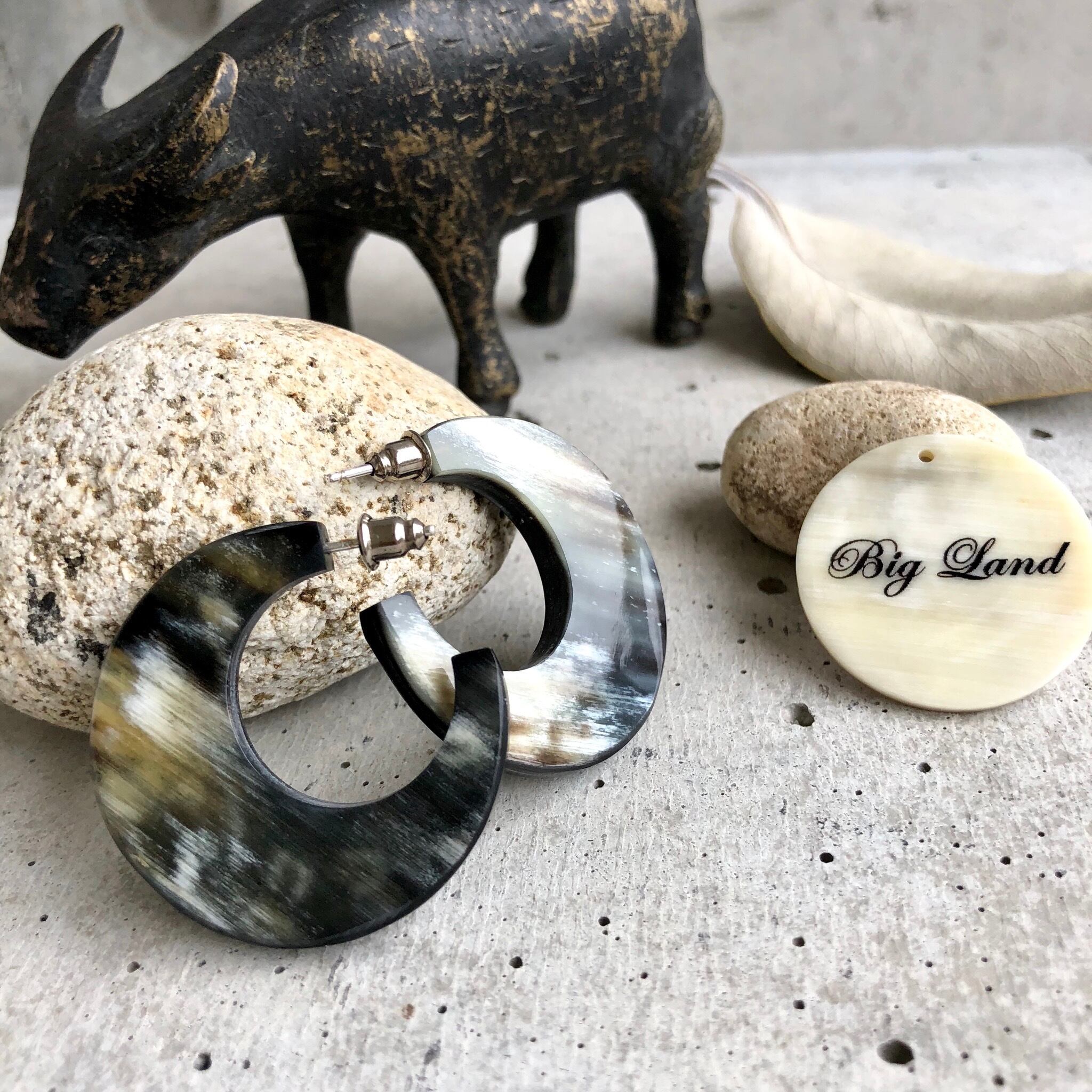 トレンドの水牛角で作られた個性が光る霜降りな柄のピアス✨