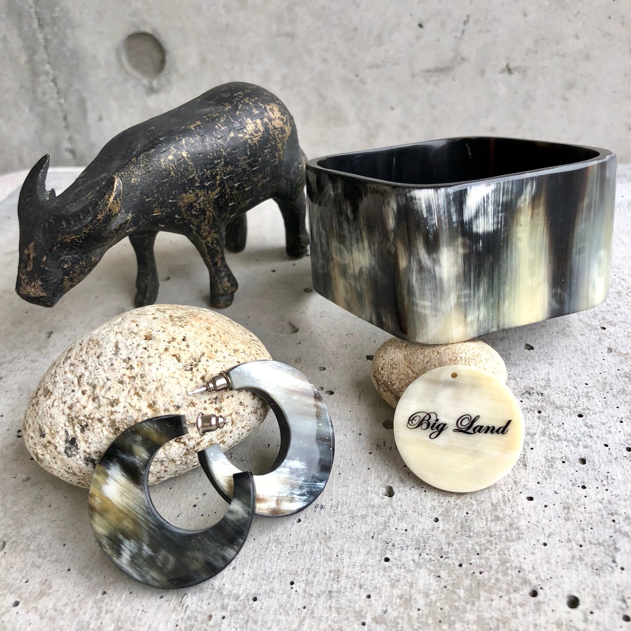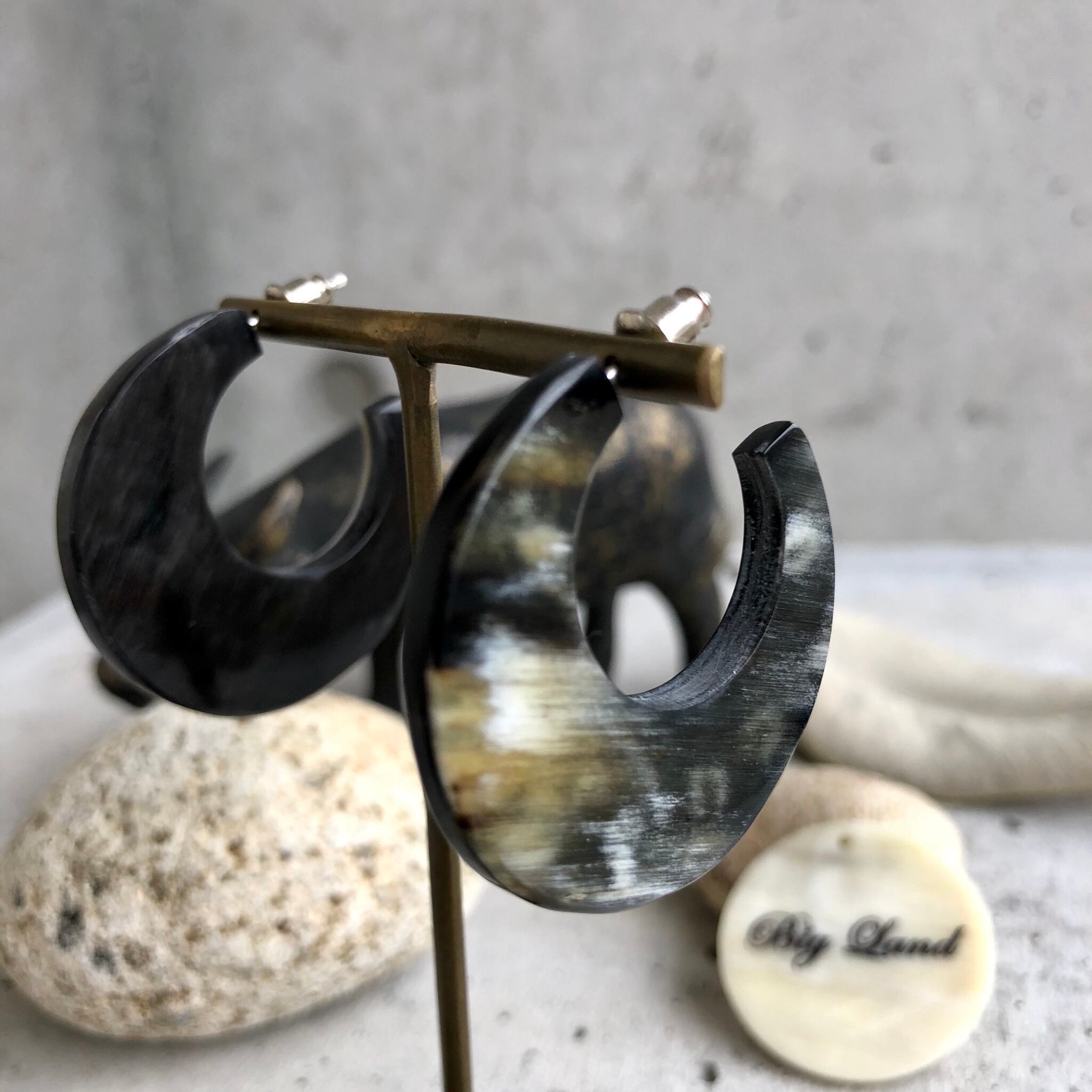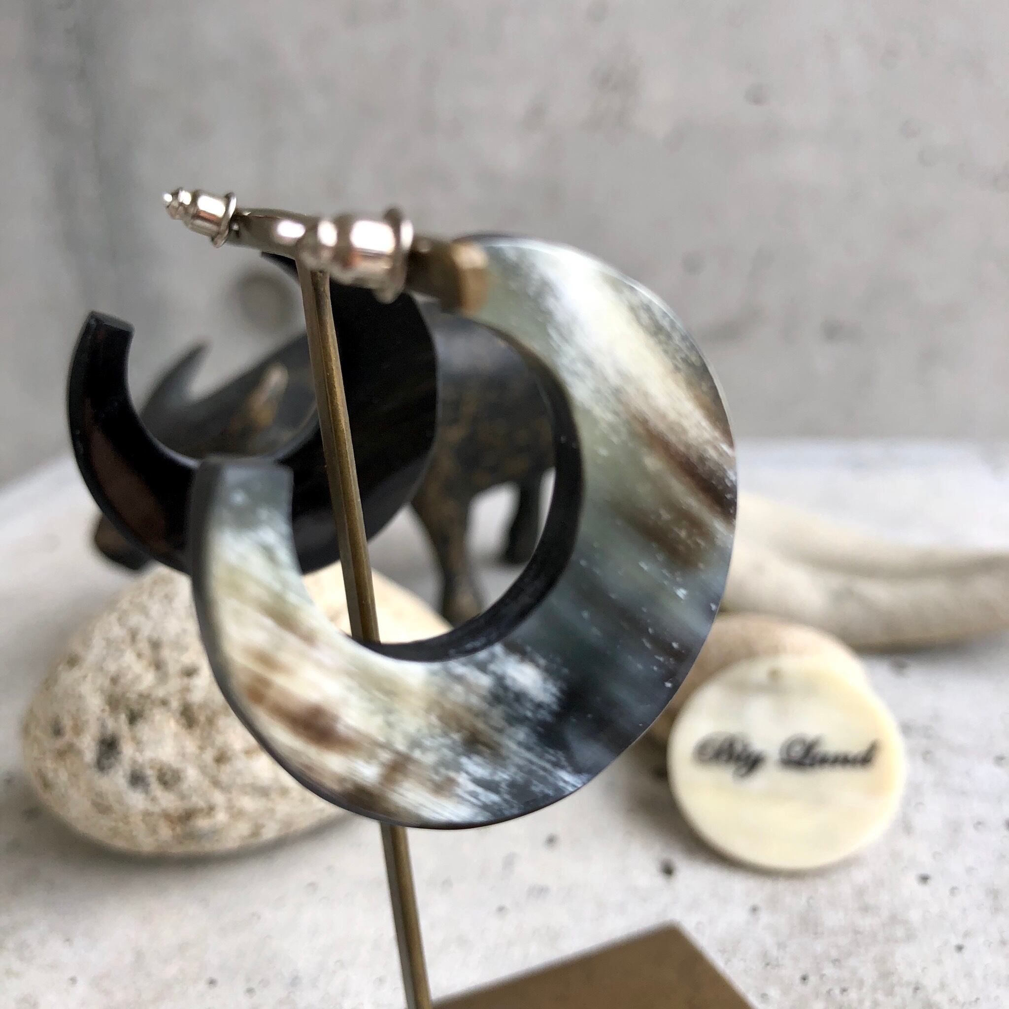 トレンドの水牛角で作られた個性が光る霜降りな柄のピアス✨