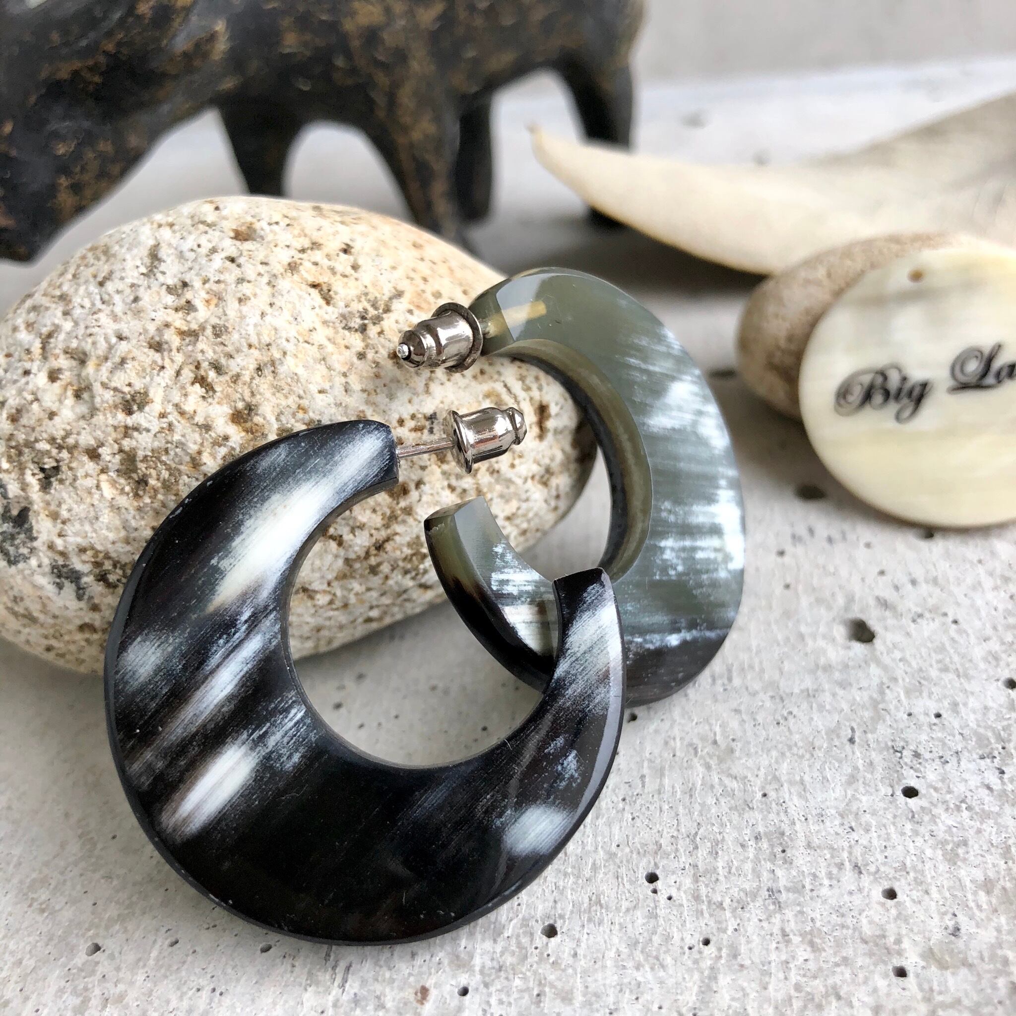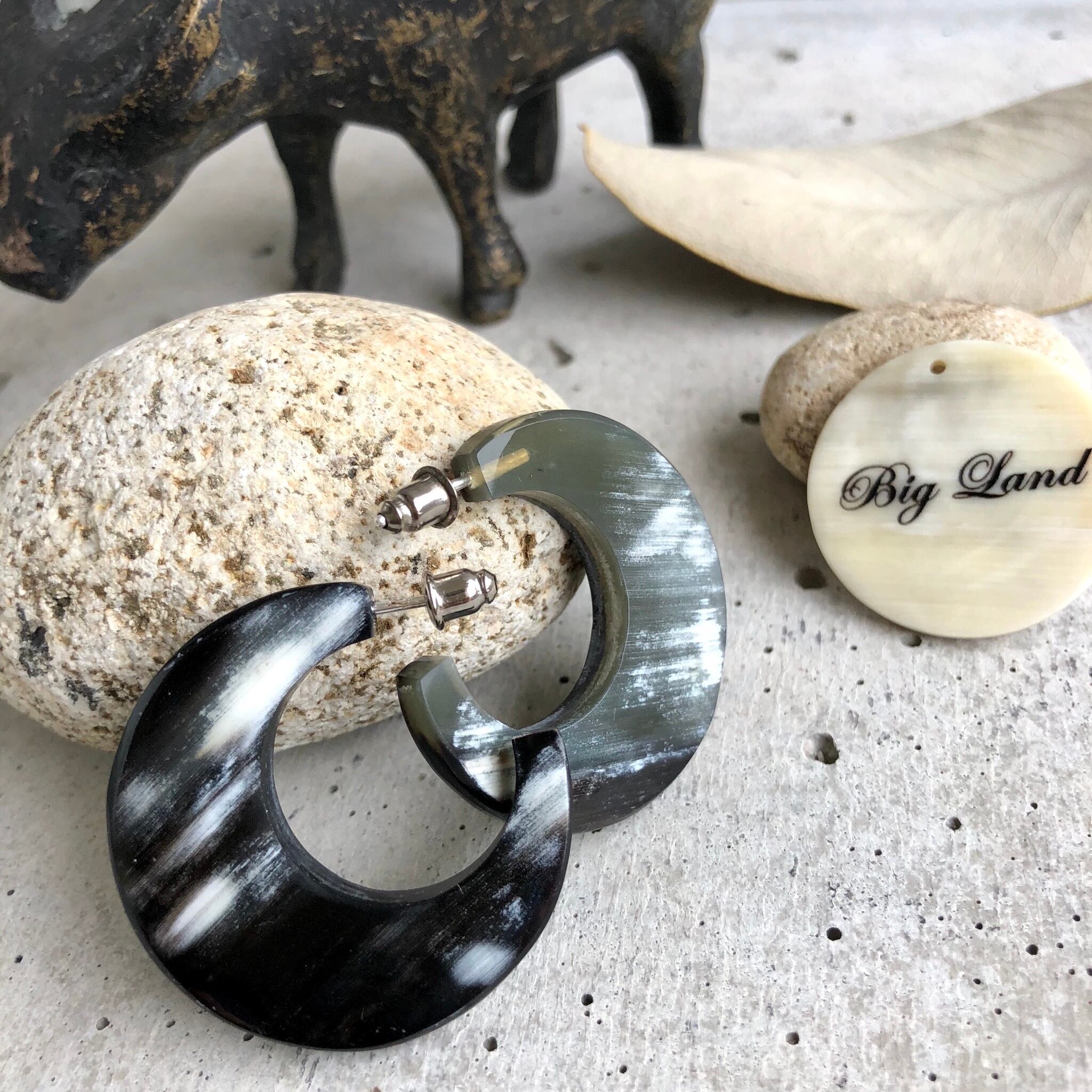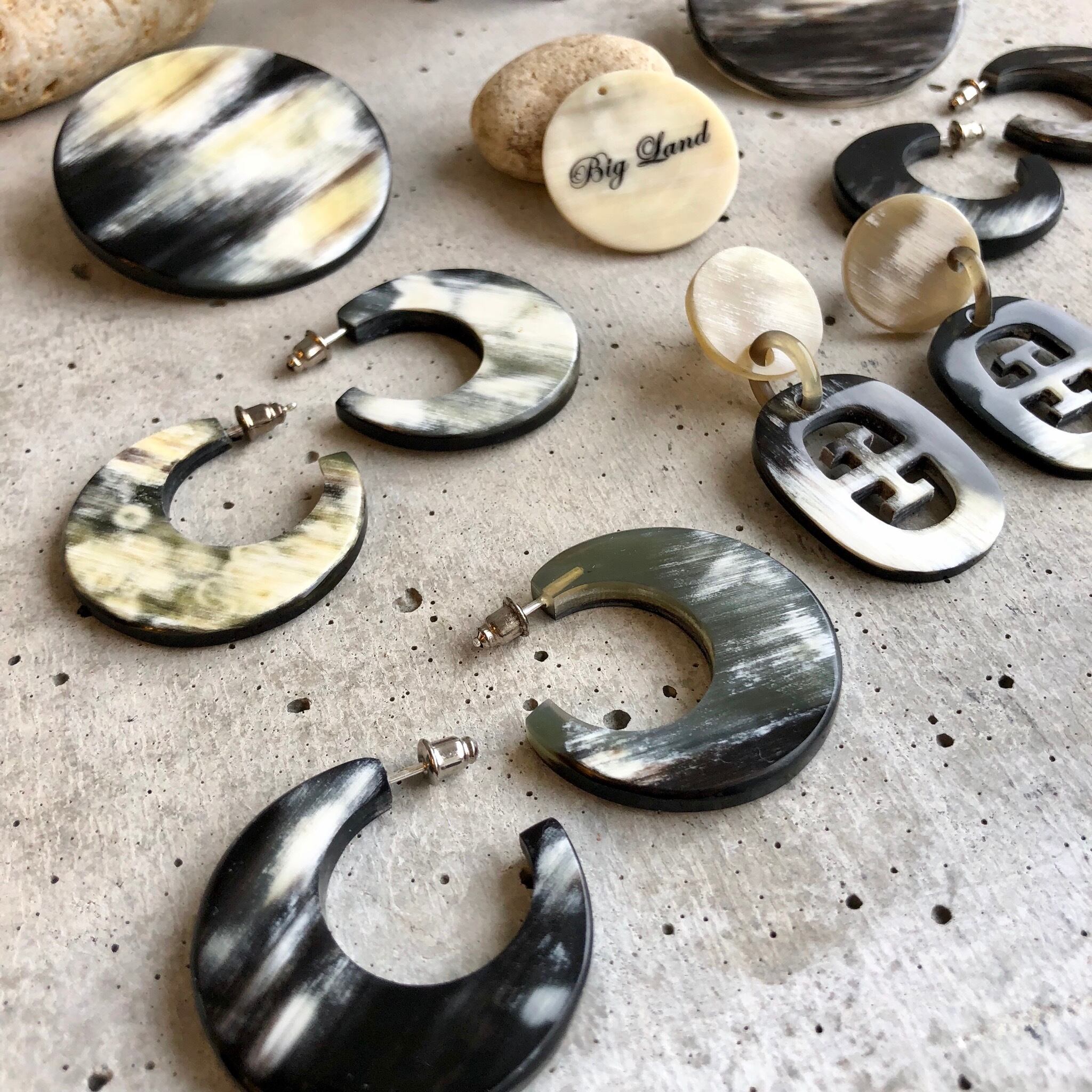 トレンドの水牛角で作られた個性が光る霜降りな柄のピアス✨