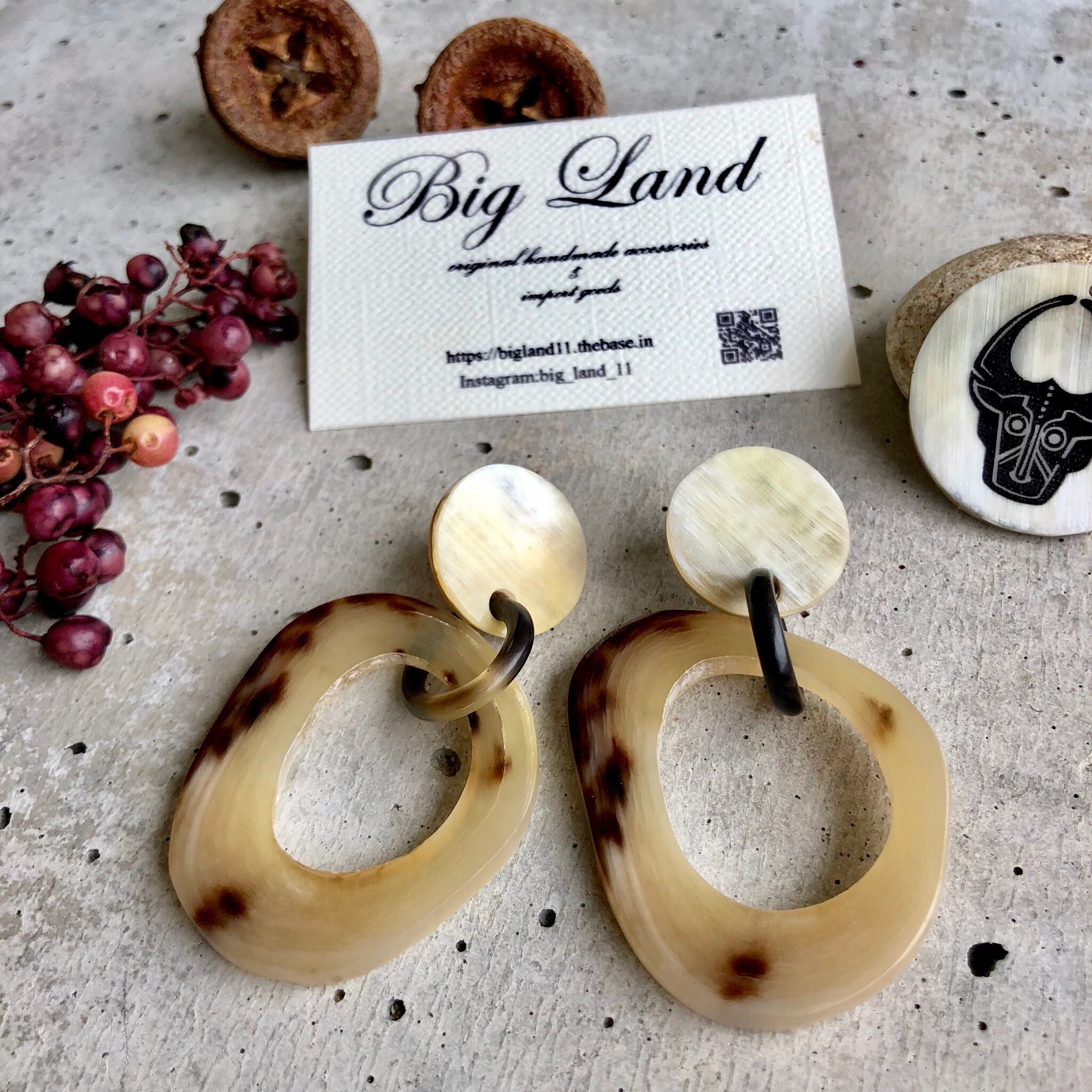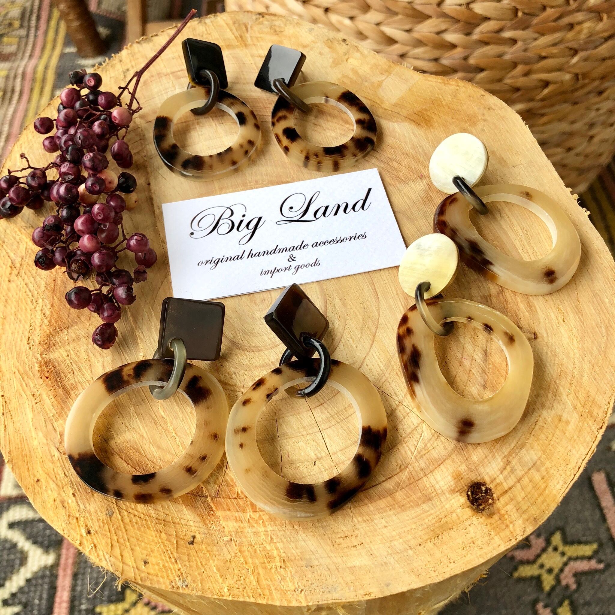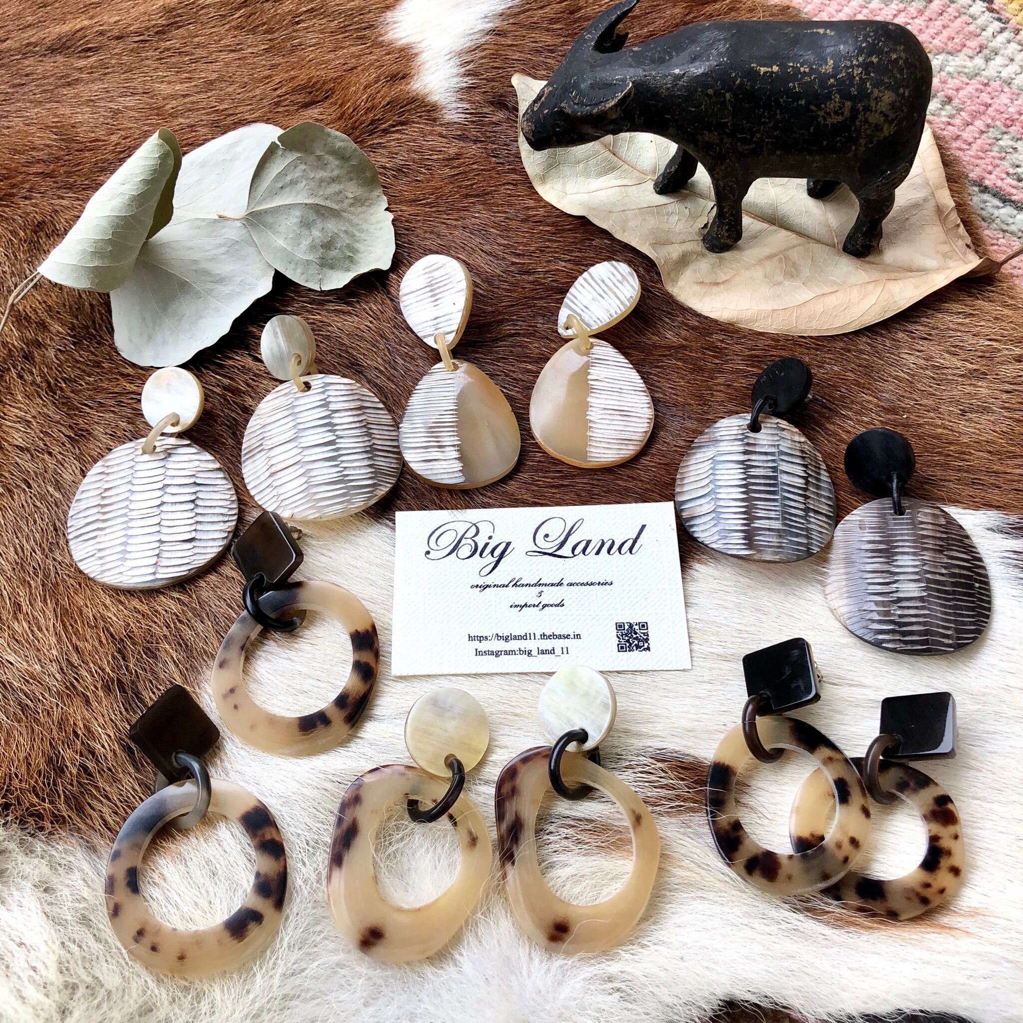 一点モノならではのべっ甲のような模様がなんとも美しく大ぶりなのに大変軽いのが水牛アクセサリーの特徴です✨
