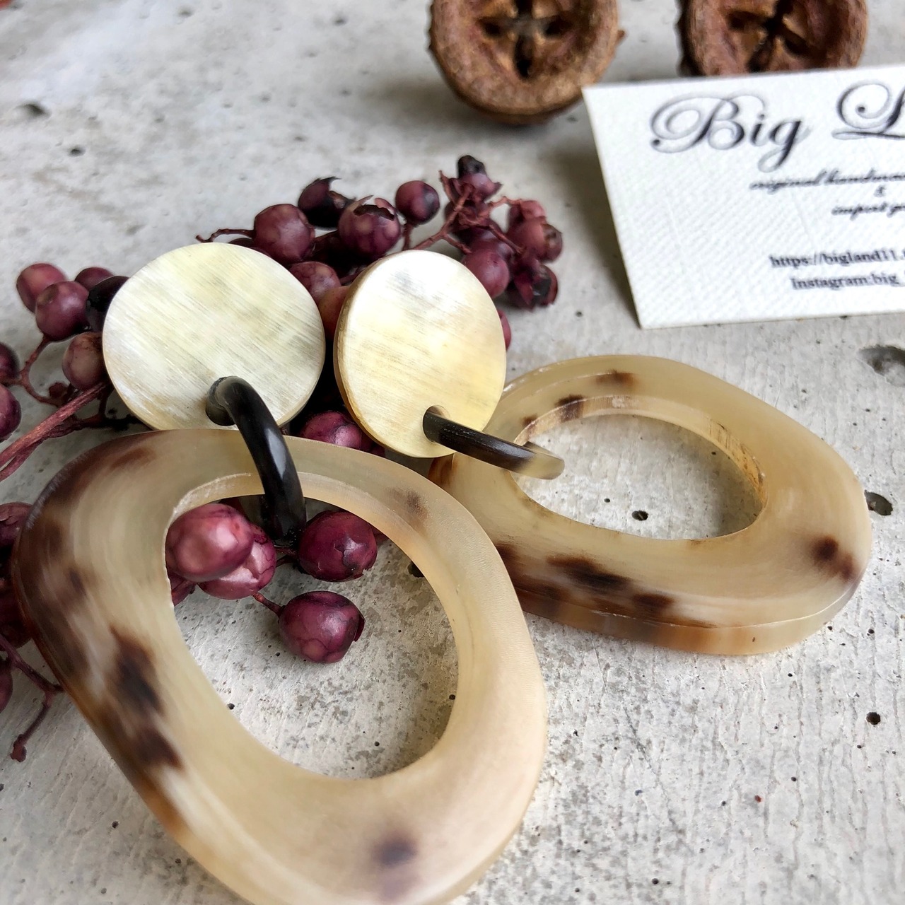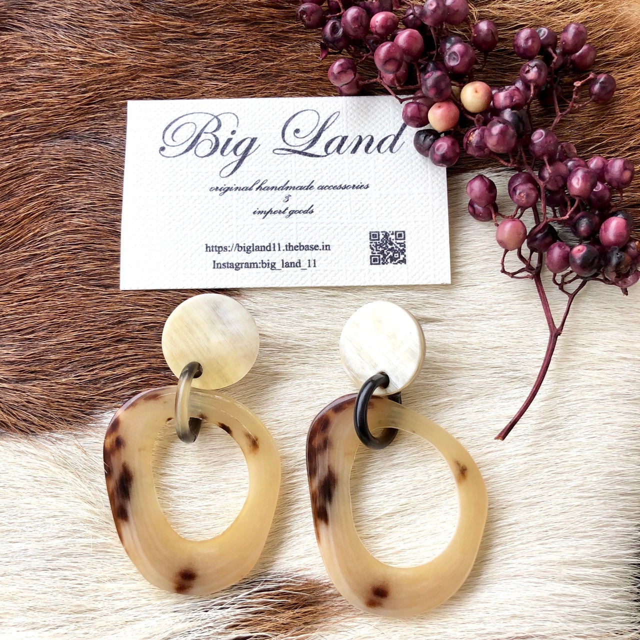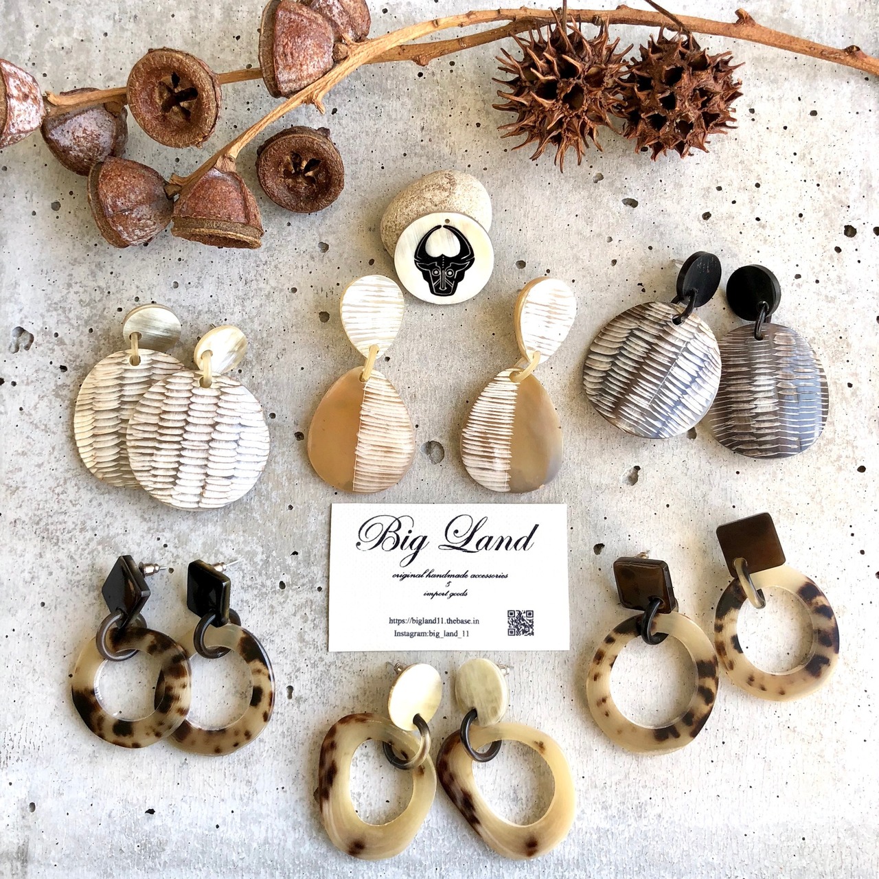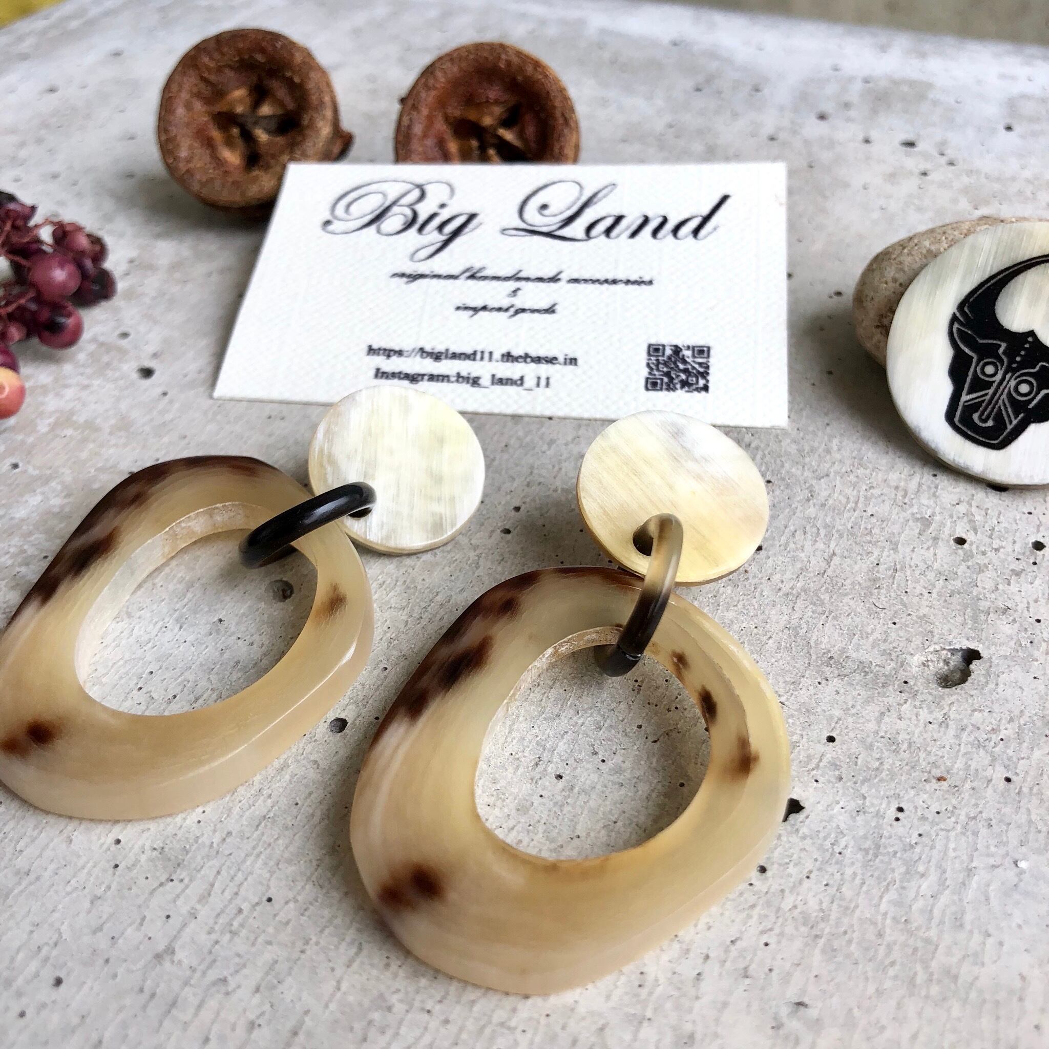 一点モノならではのべっ甲のような模様がなんとも美しく大ぶりなのに大変軽いのが水牛アクセサリーの特徴です✨