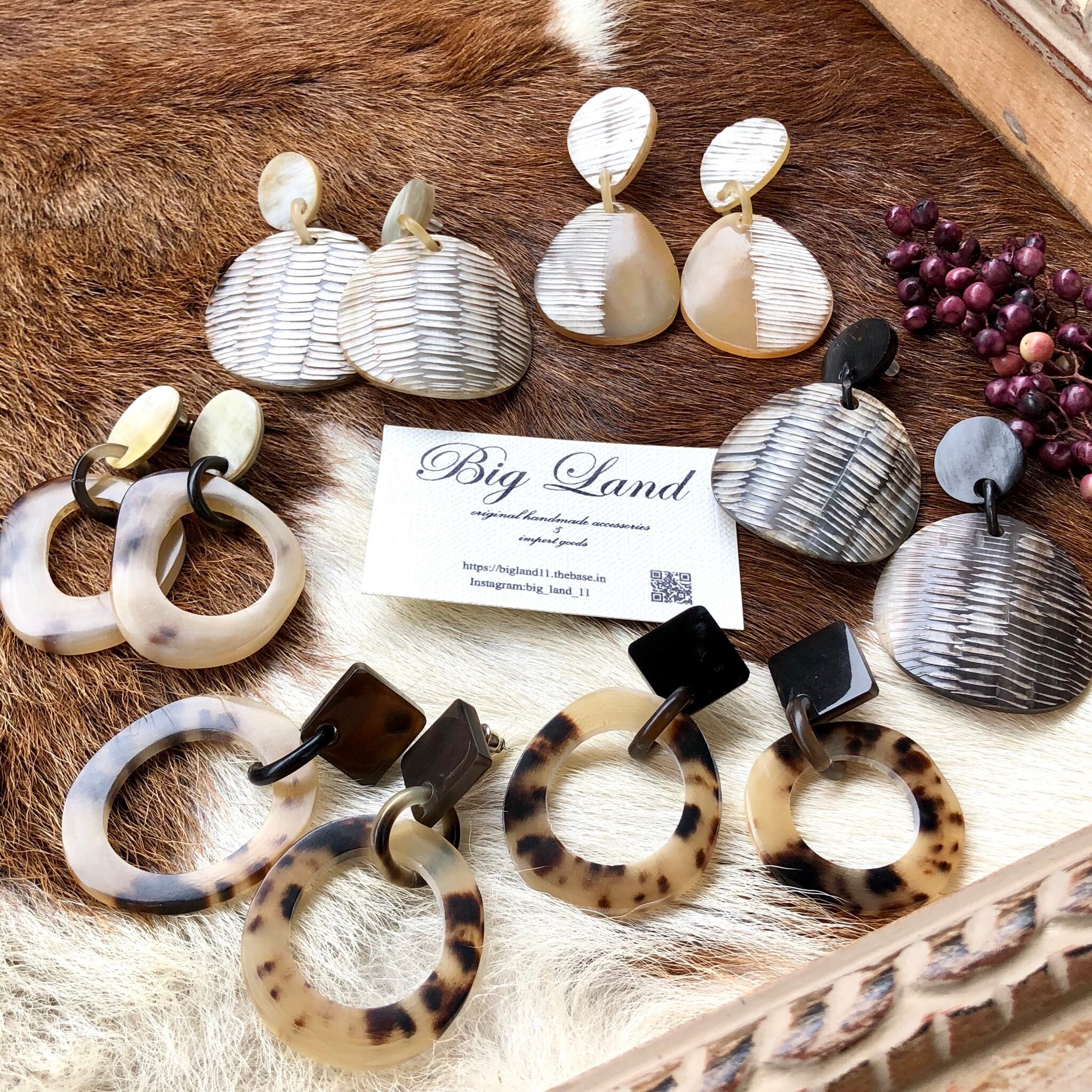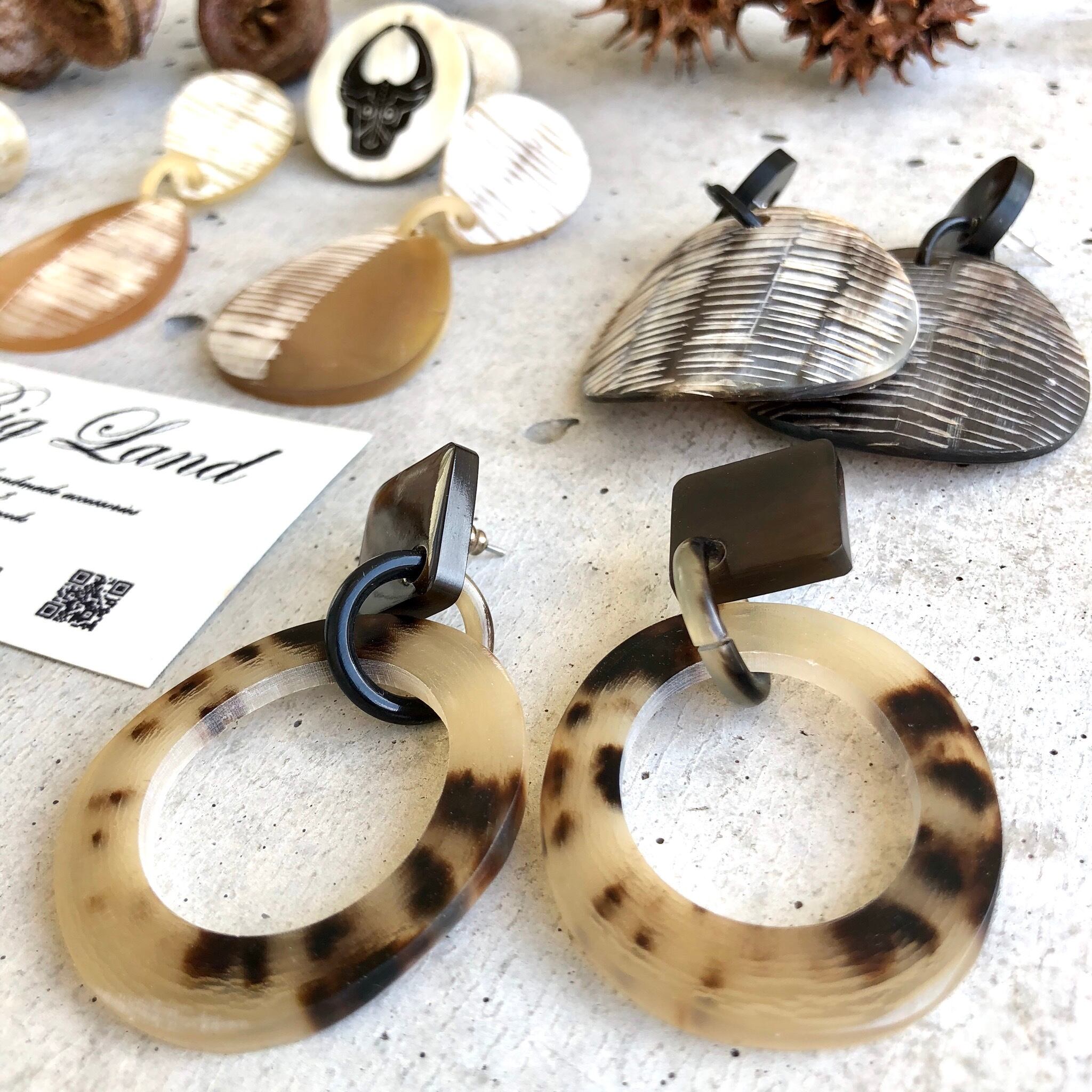 一点モノならではのべっ甲のような模様がなんとも美しく大ぶりなのに大変軽いのが水牛アクセサリーの特徴です✨