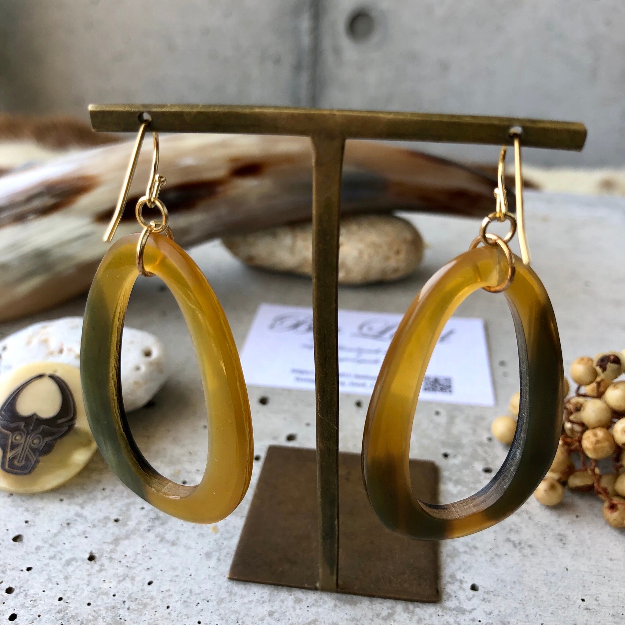 一点モノならではの色合いが美しく大ぶりなのに大変軽いのが水牛アクセサリーの特徴です✨