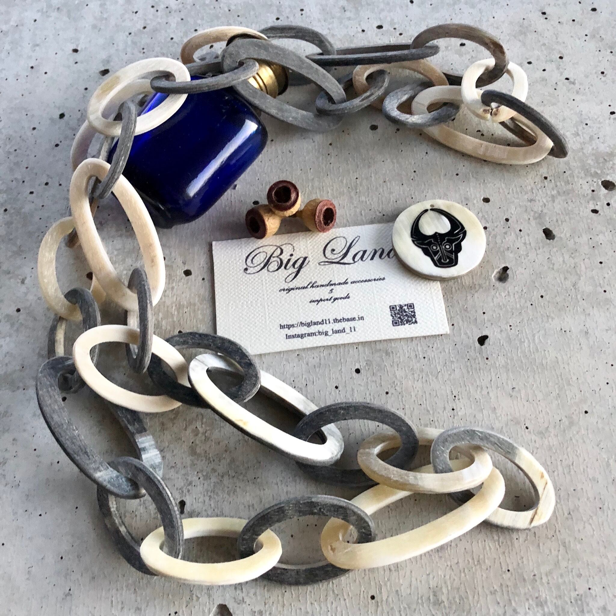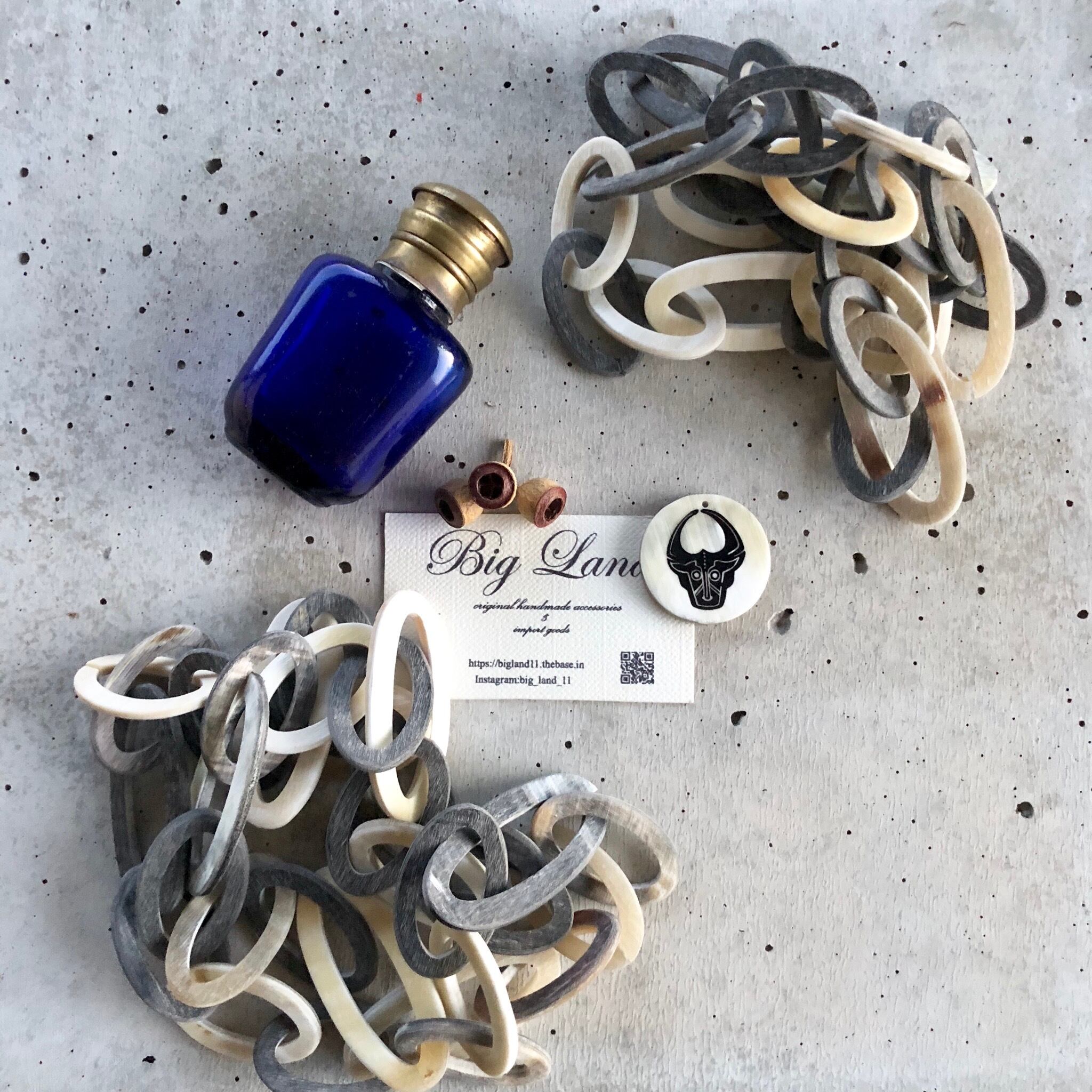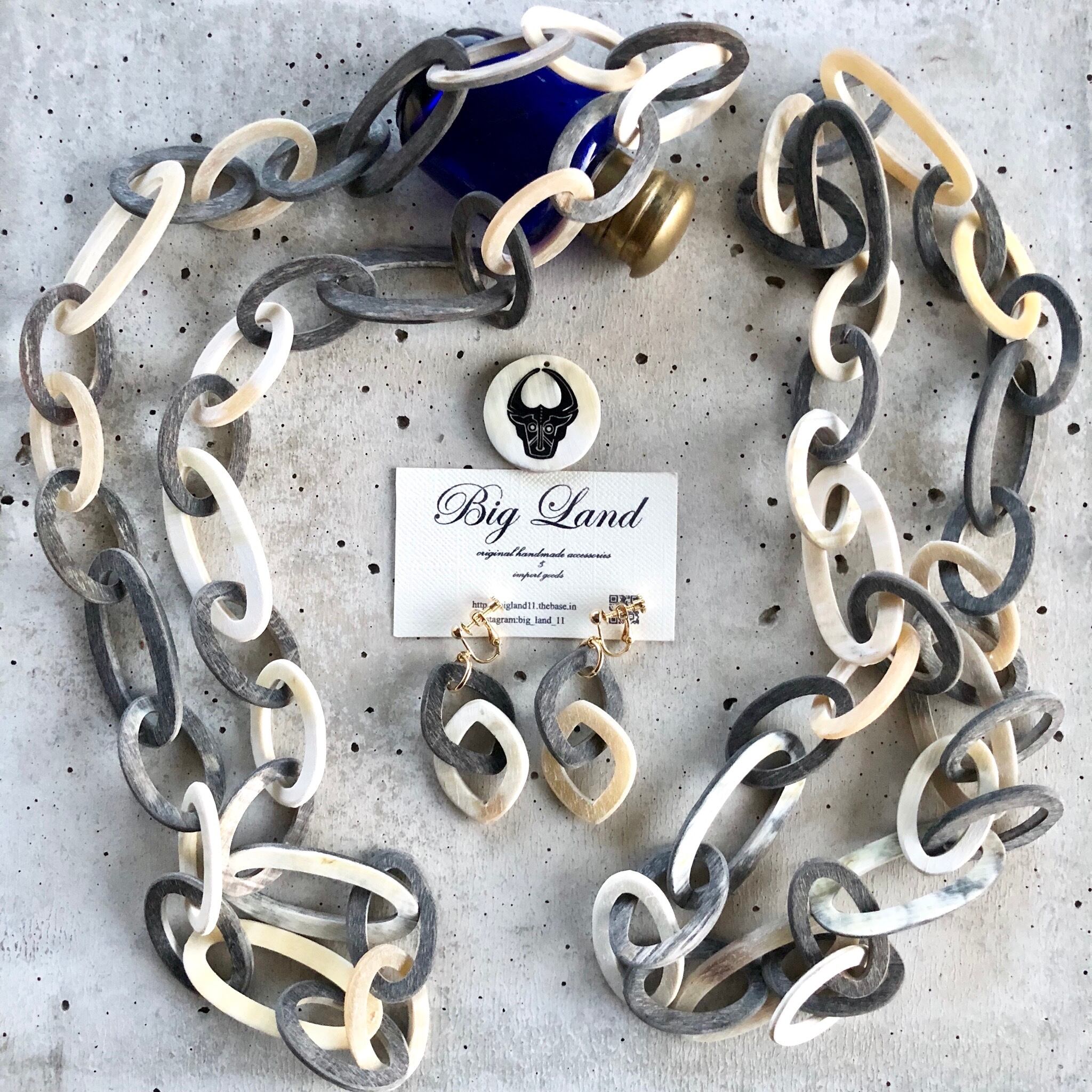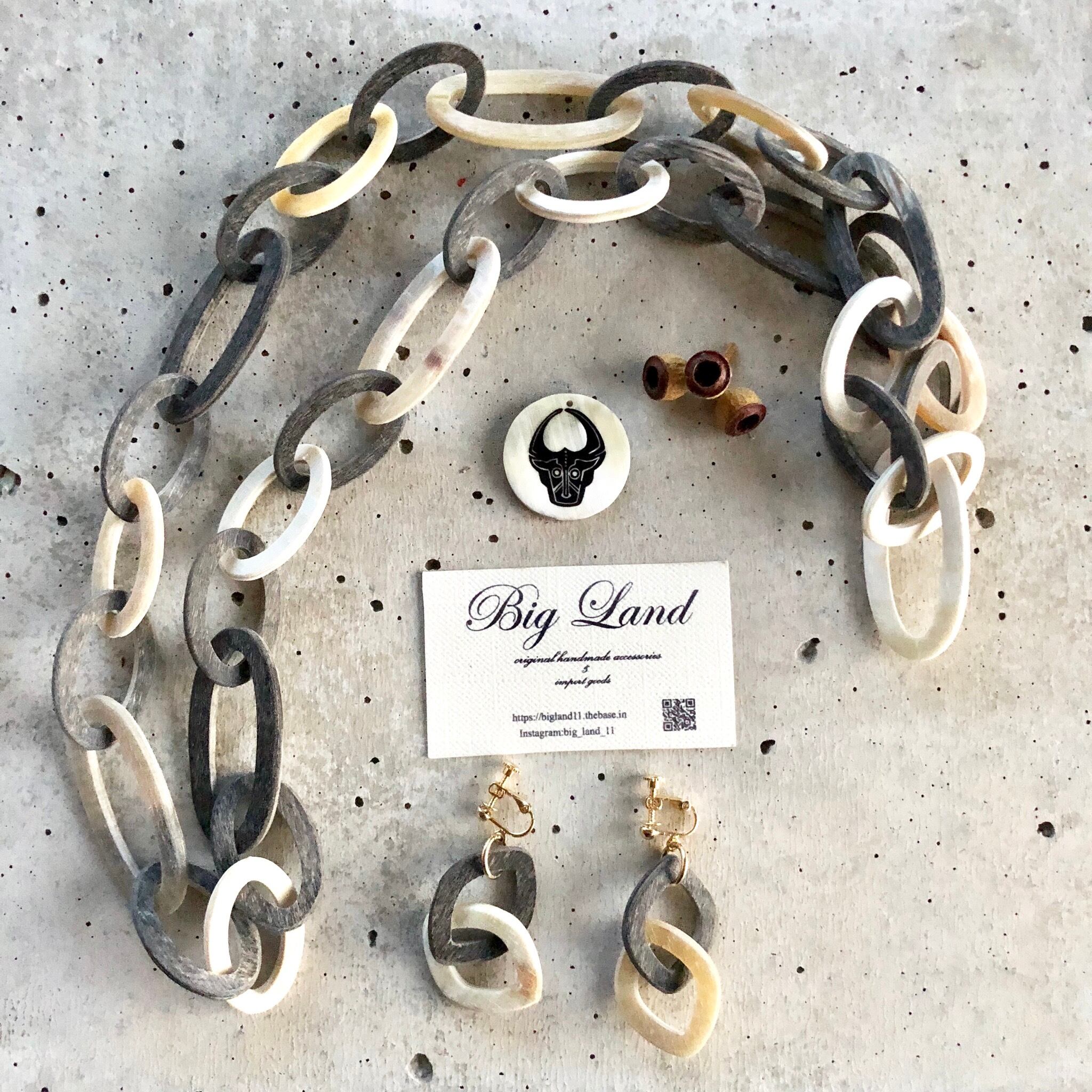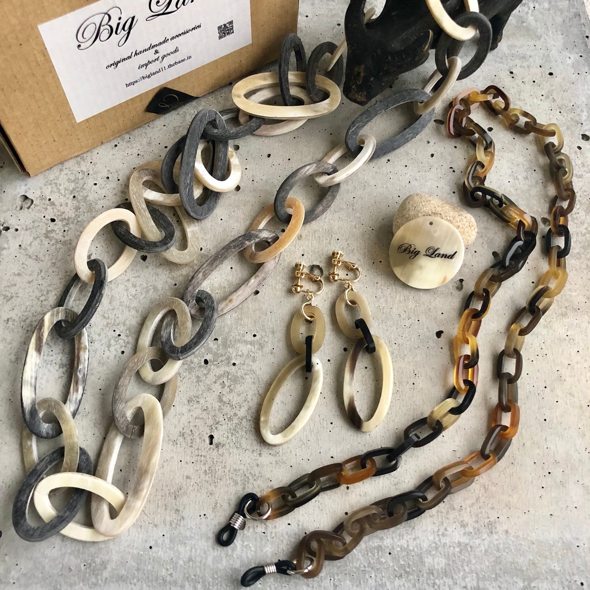 夏の汗ばむ季節でも天然素材の水牛角の為お肌に優しく、秋冬はニットにこちらを装着するだけで、存在感がありオシャレに差がつきます✨