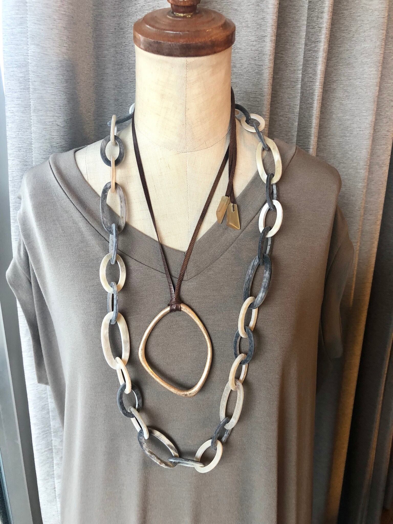 優しい上品な色合いがパリっぽく...水牛ならではの軽い装着感とこなれたワンランク上の雰囲気を醸し出すネックレスです✨