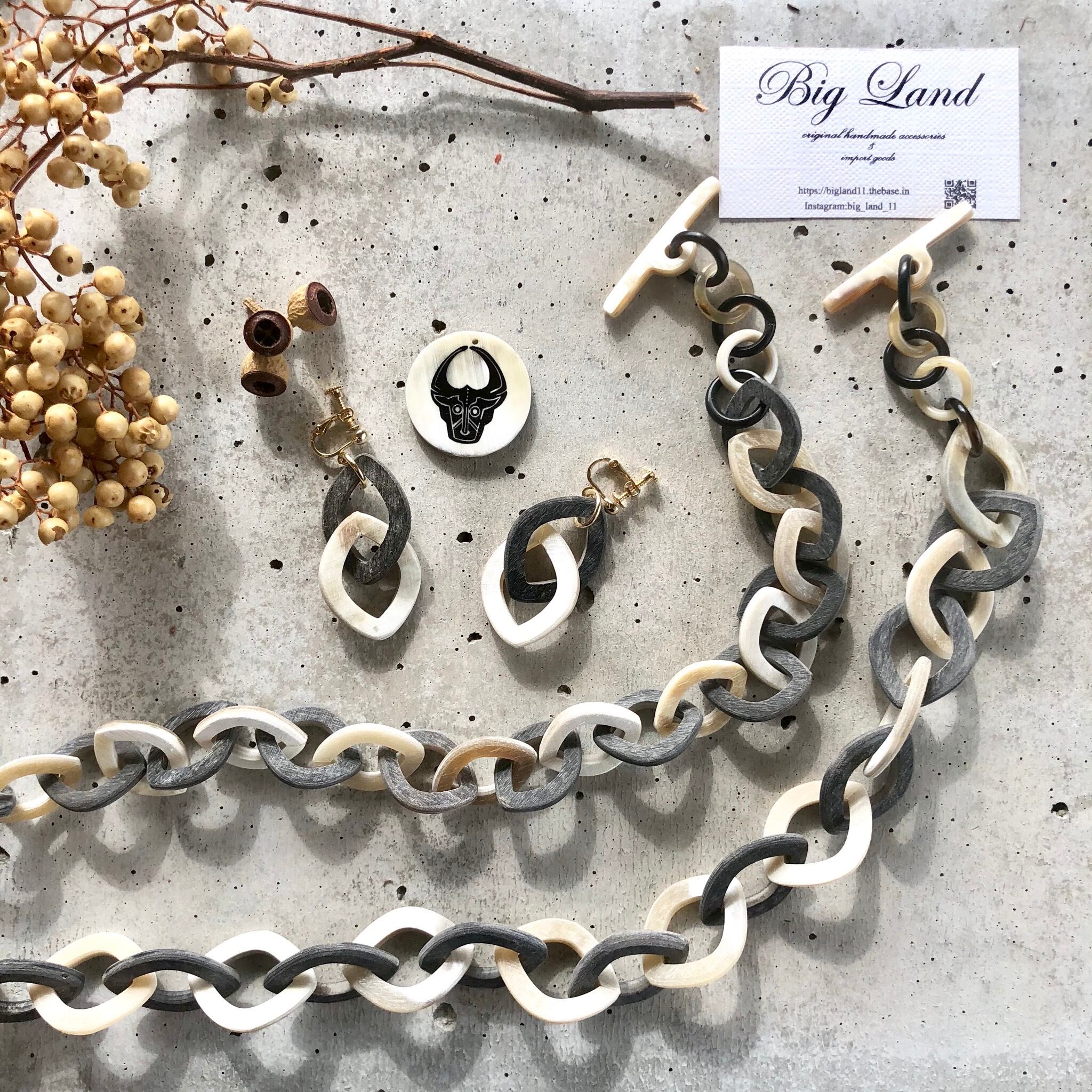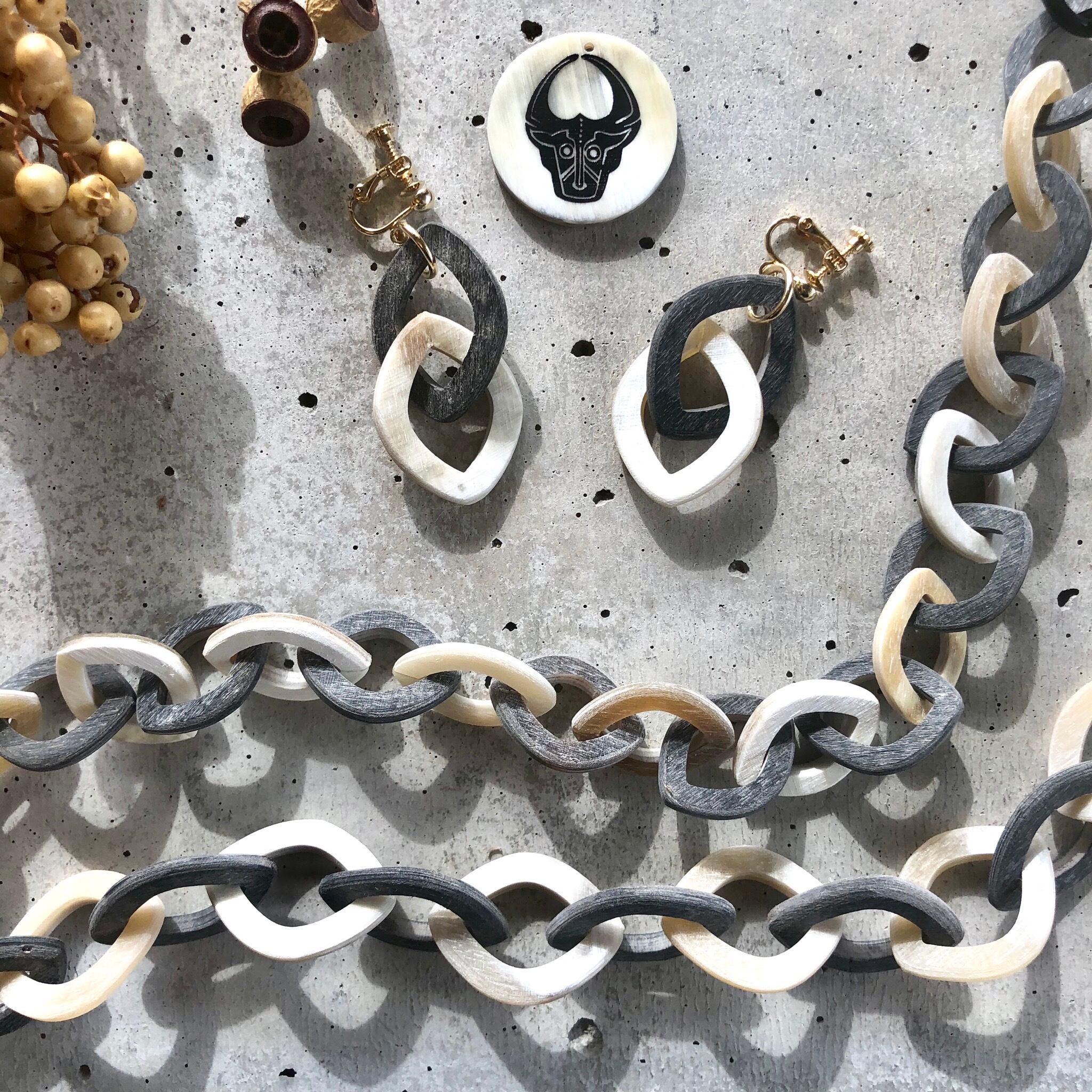 こちら、水牛角を削りマット仕上げに加工したなんともシックで大変珍しいネックレスでイチオシのデザインです‼︎