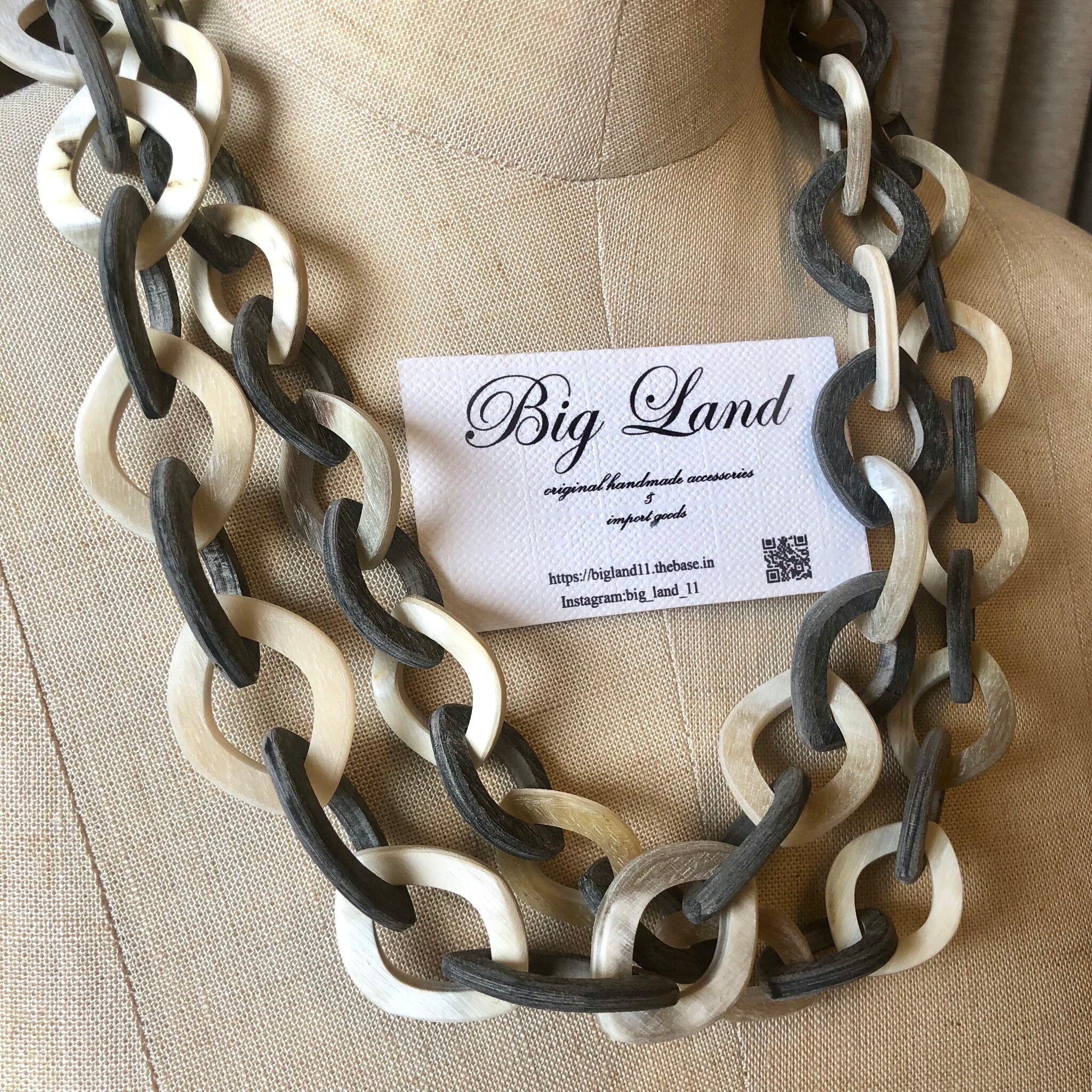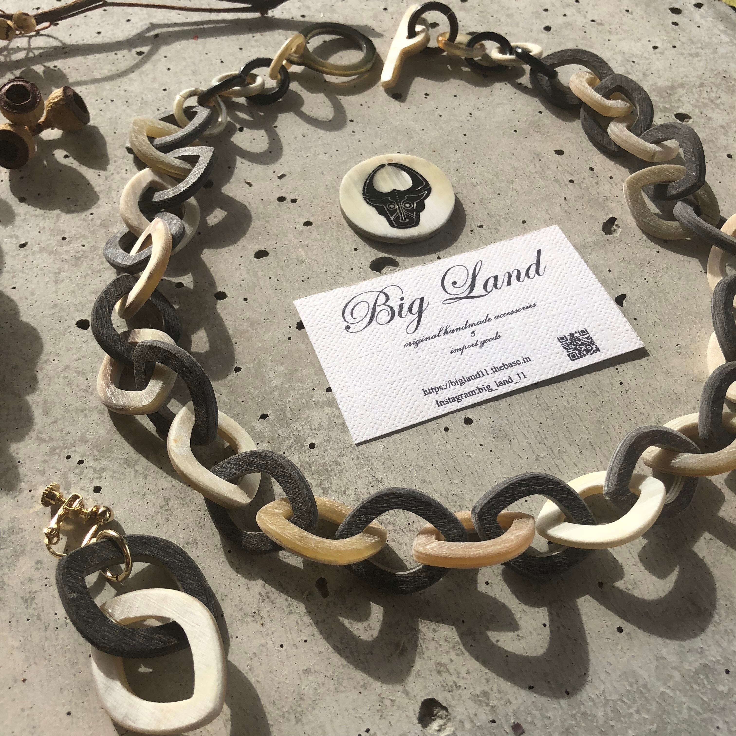 夏の汗ばむ季節でも天然素材の水牛角の為お肌に優しく、秋冬はニットにこちらを装着するだけで、存在感がありオシャレに差がつきます✨