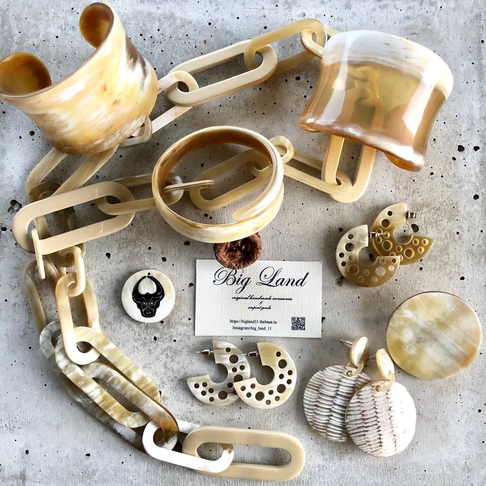 一点ものならではの美しい色合いがワンランク上のオシャレを楽しんで頂け、水牛にパンチング加工を施す事により大変洗練されたデザインで軽いのが水牛アクセサリーの特徴です✨