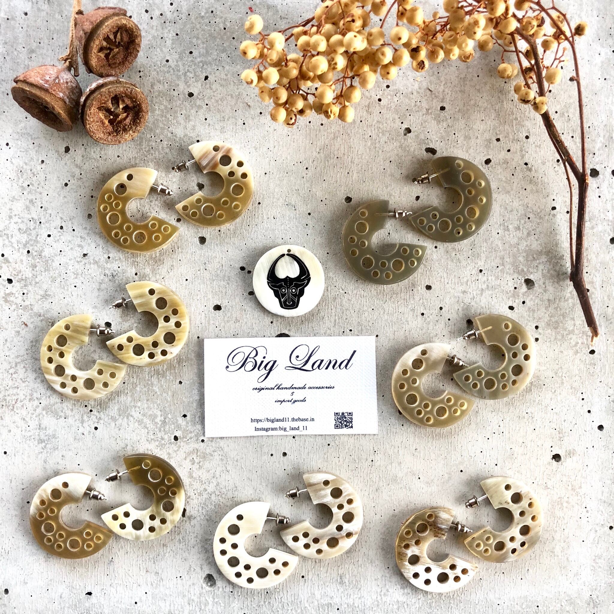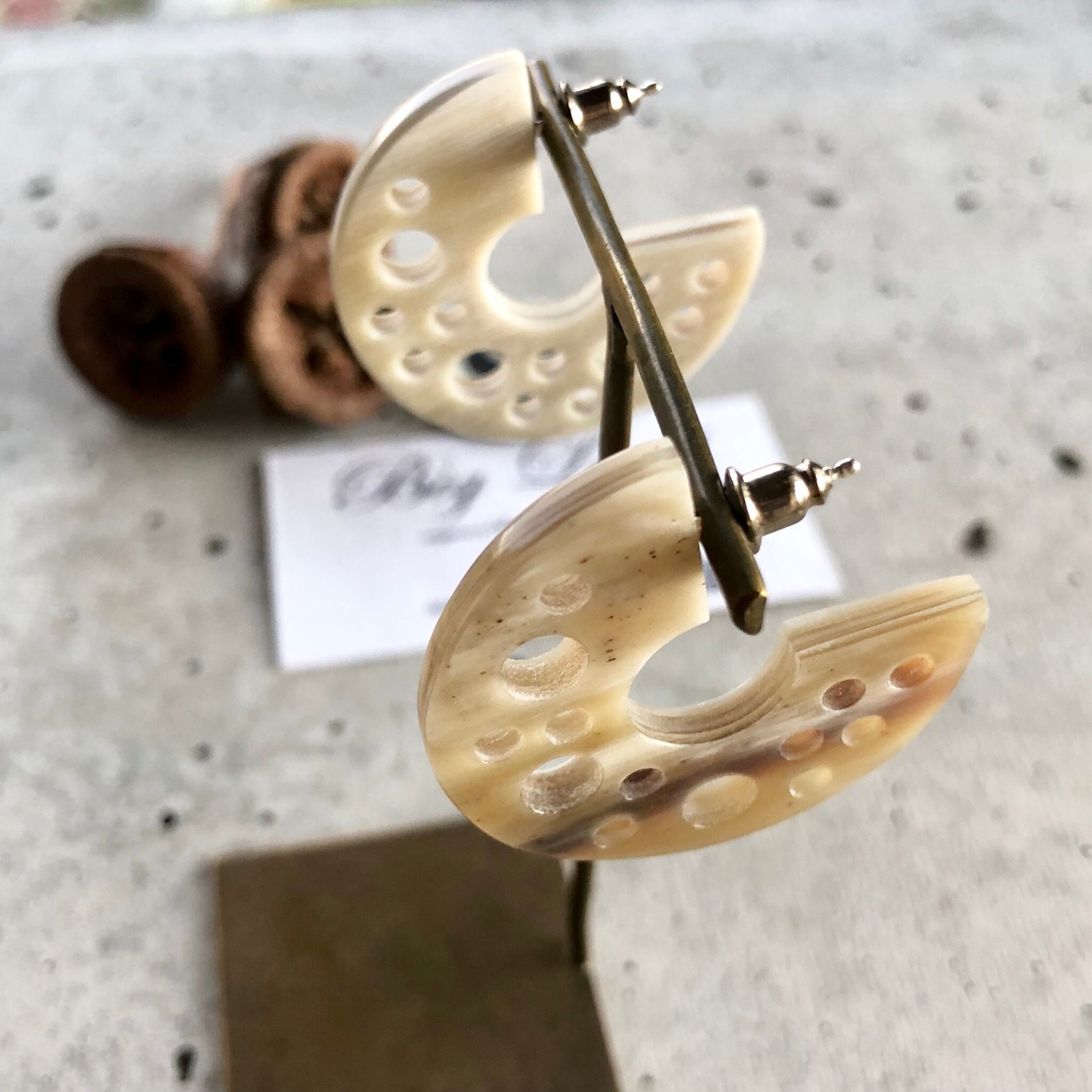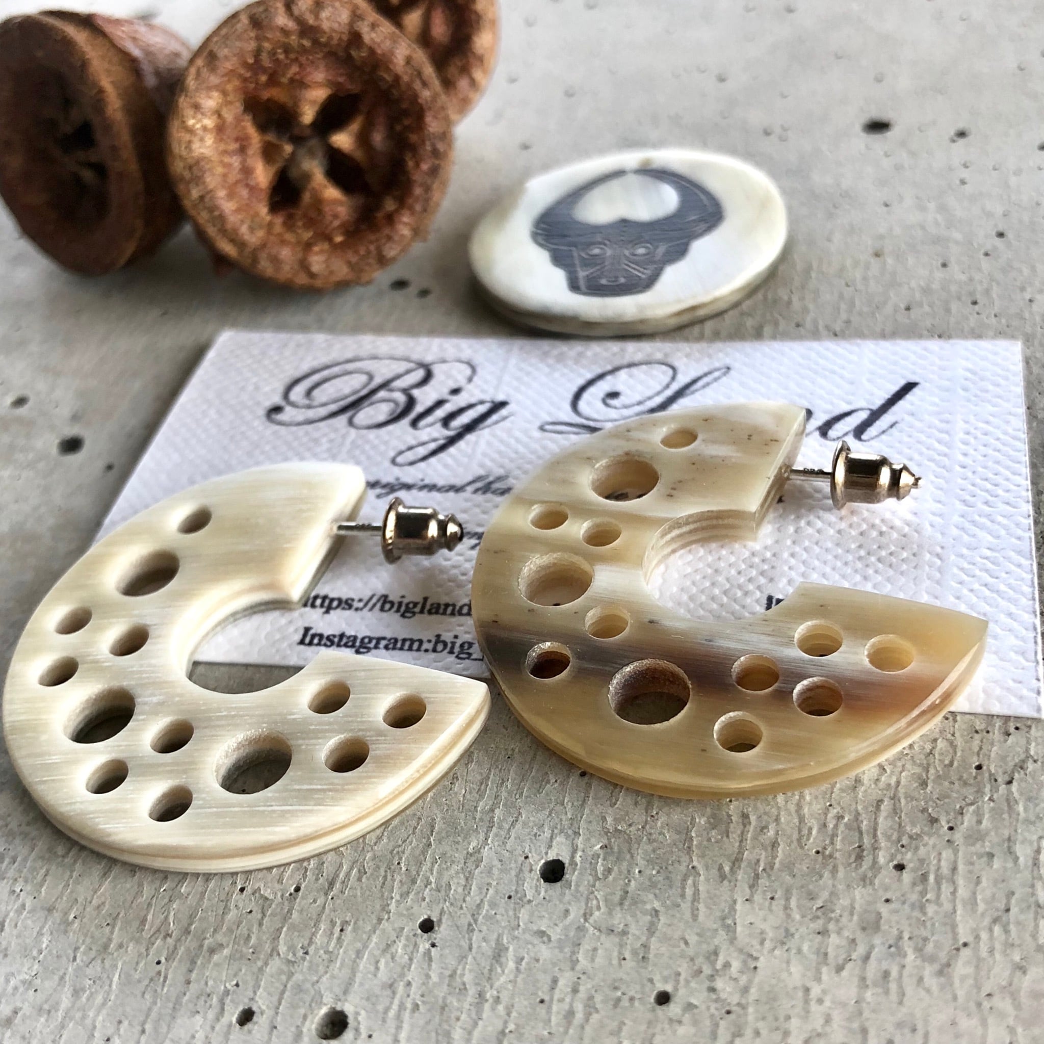 トレンドの水牛角で作られた個性が光るパンチングピアス✨