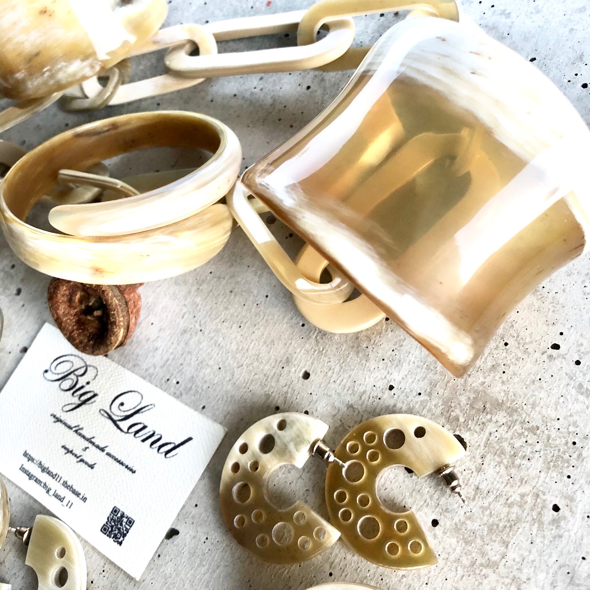 一点ものならではの美しい色合いがワンランク上のオシャレを楽しんで頂け、水牛にパンチング加工を施す事により大変洗練されたデザインで軽いのが水牛アクセサリーの特徴です✨