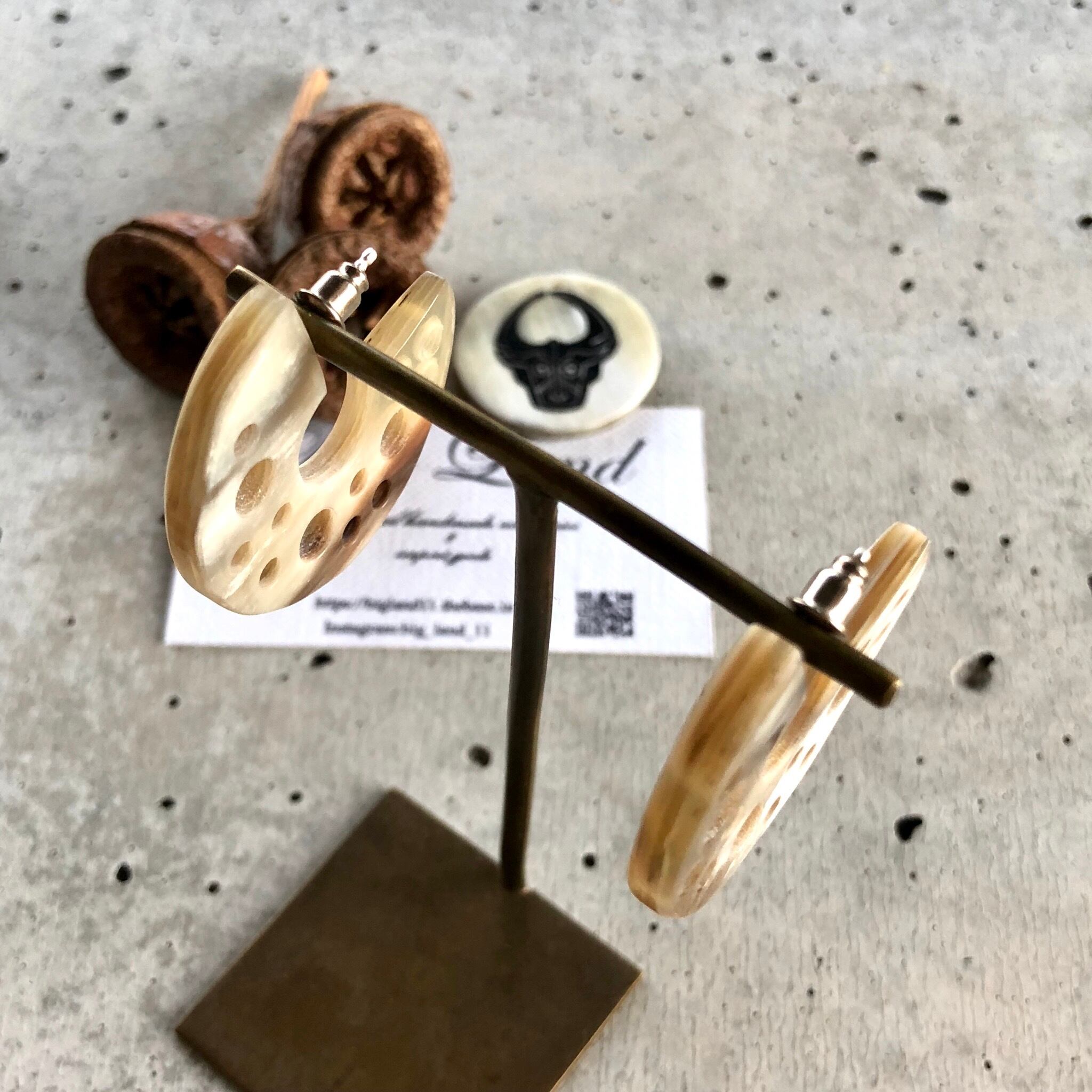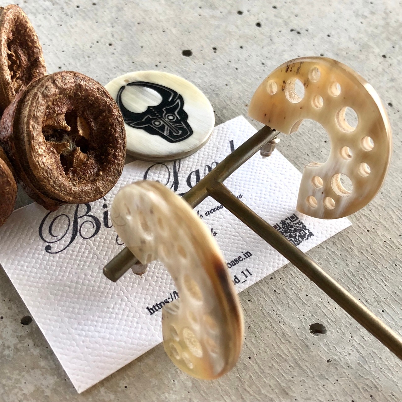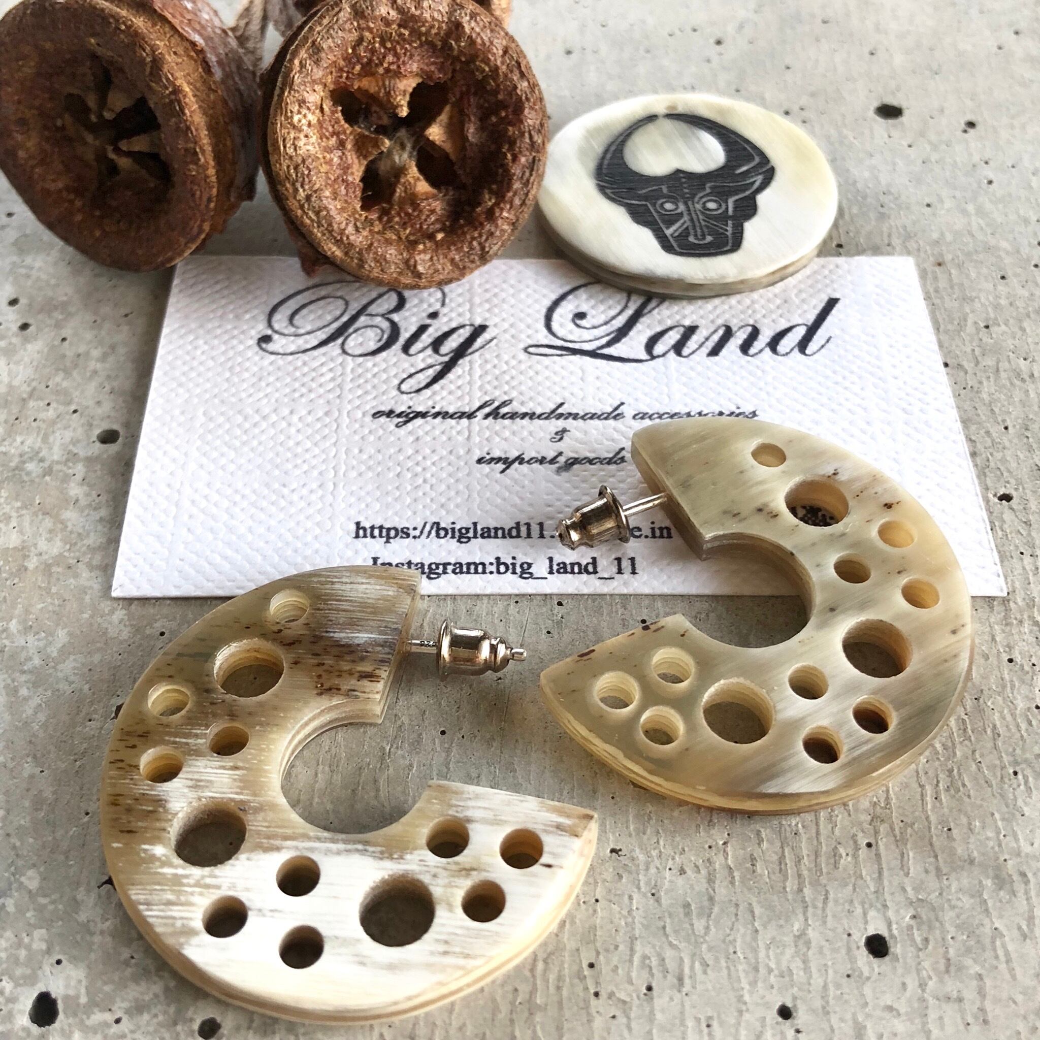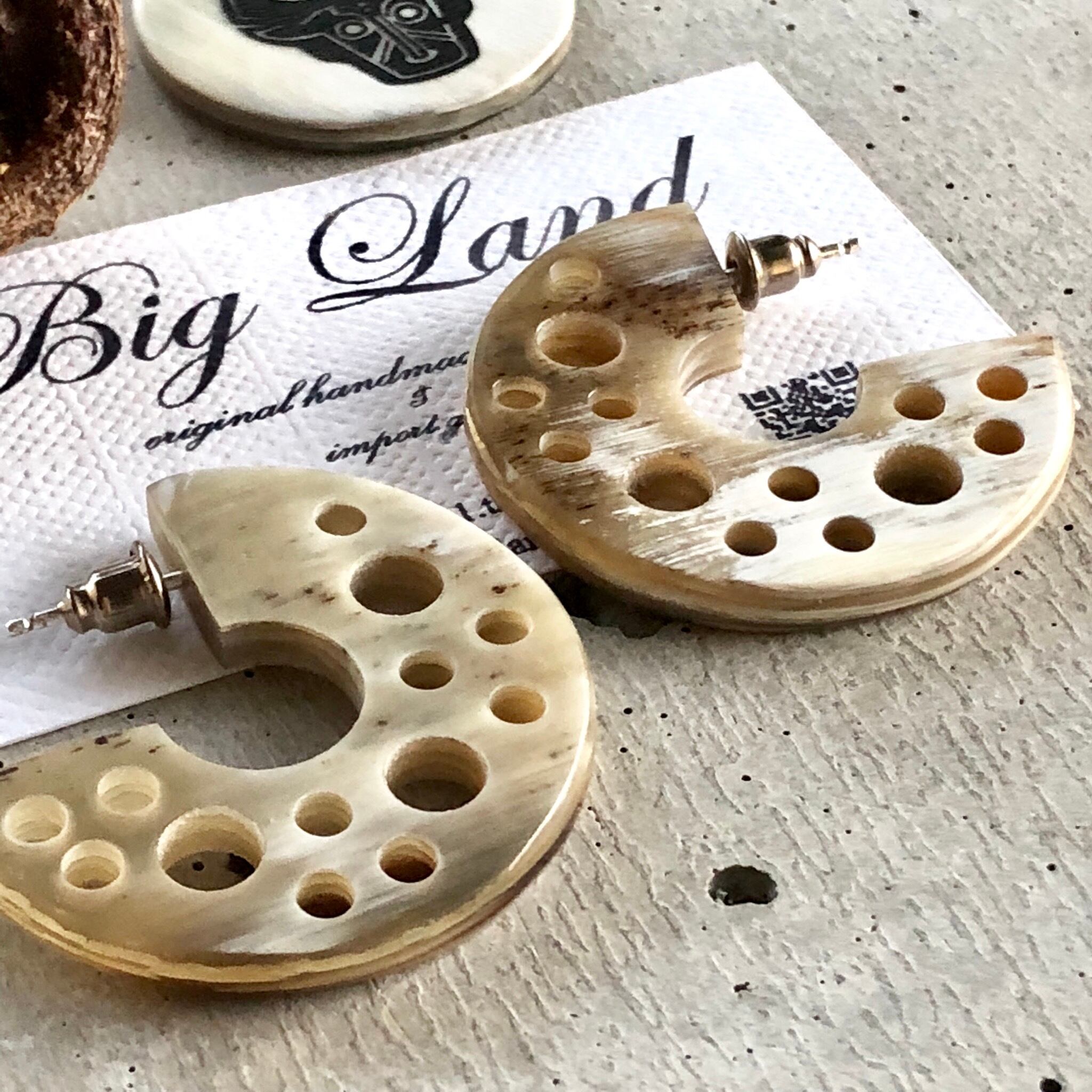 トレンドの水牛角で作られた個性が光るパンチングピアス✨