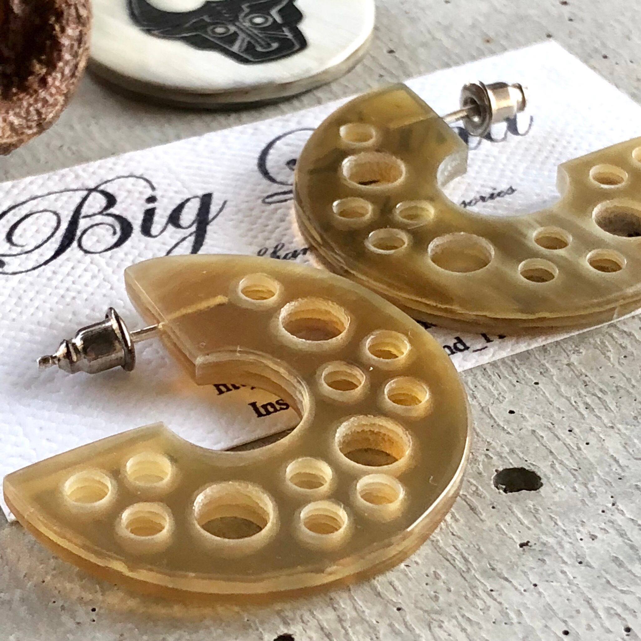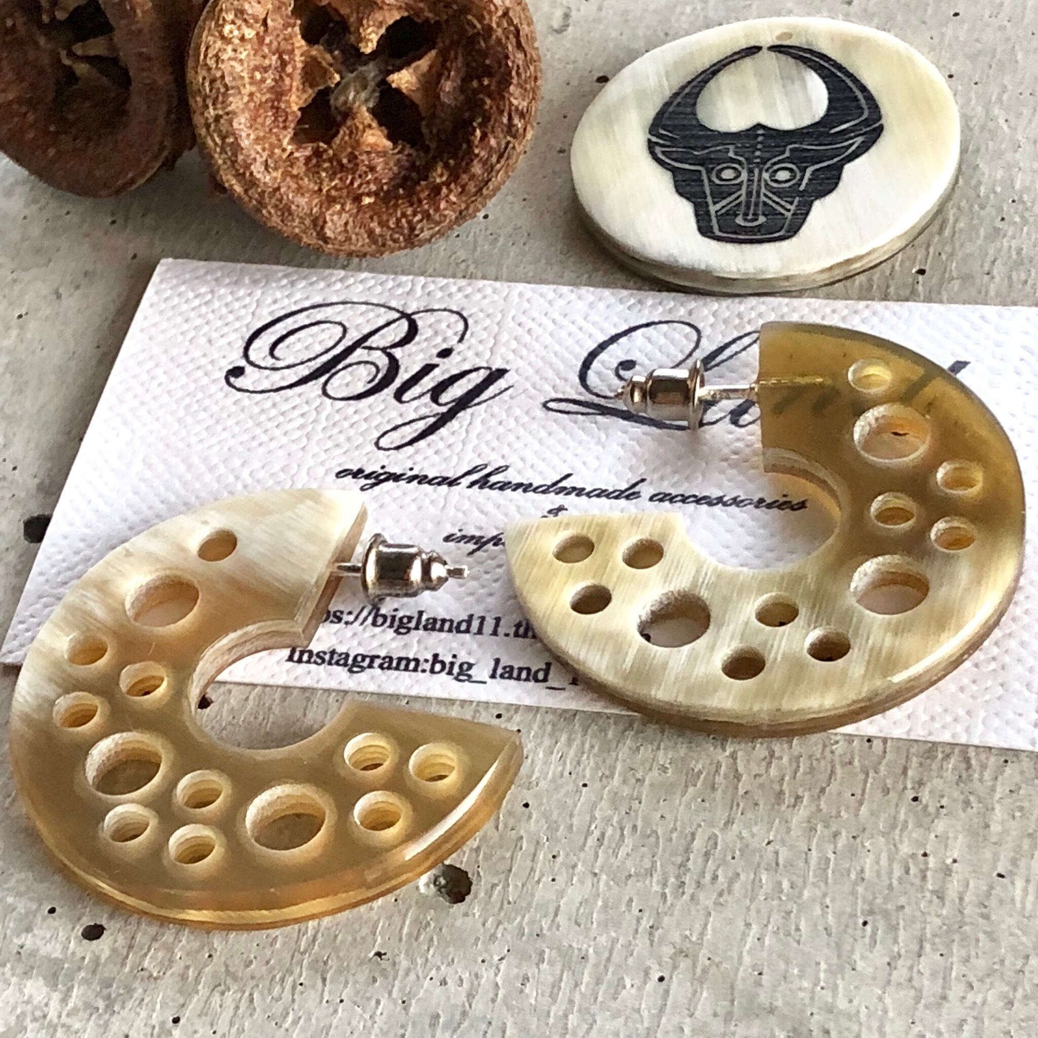 トレンドの水牛角で作られた個性が光るパンチングピアス✨