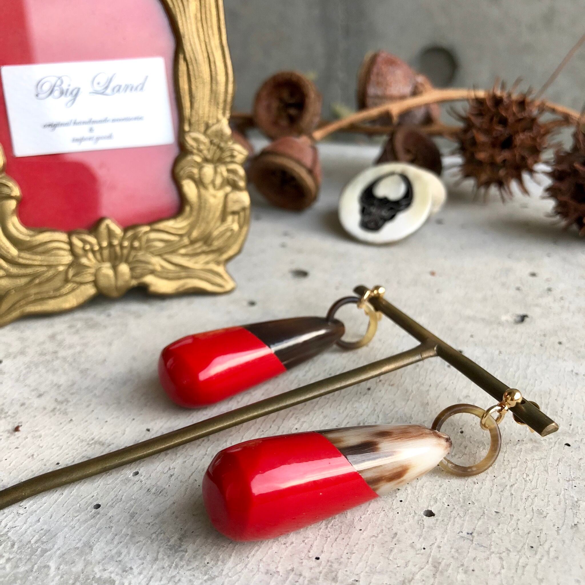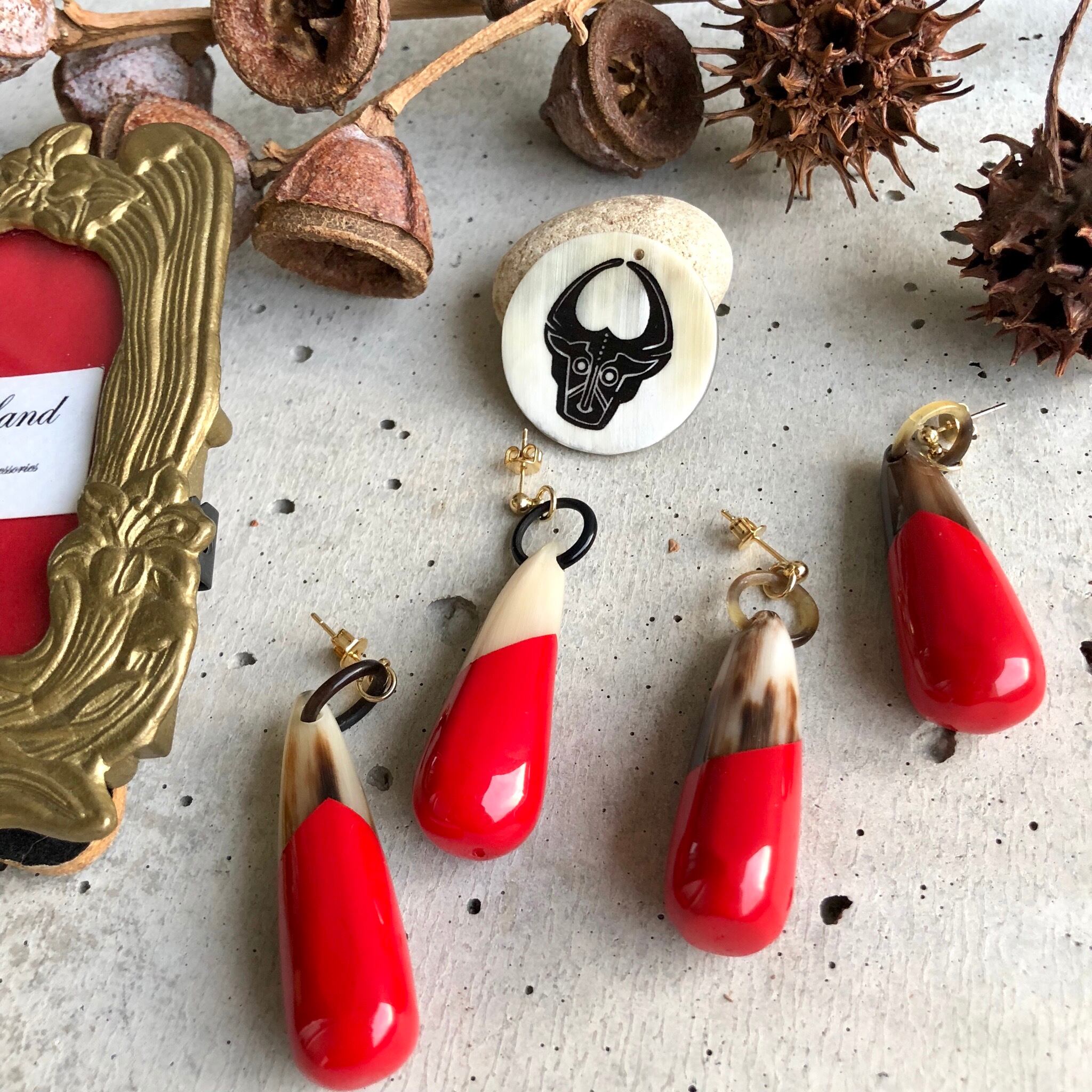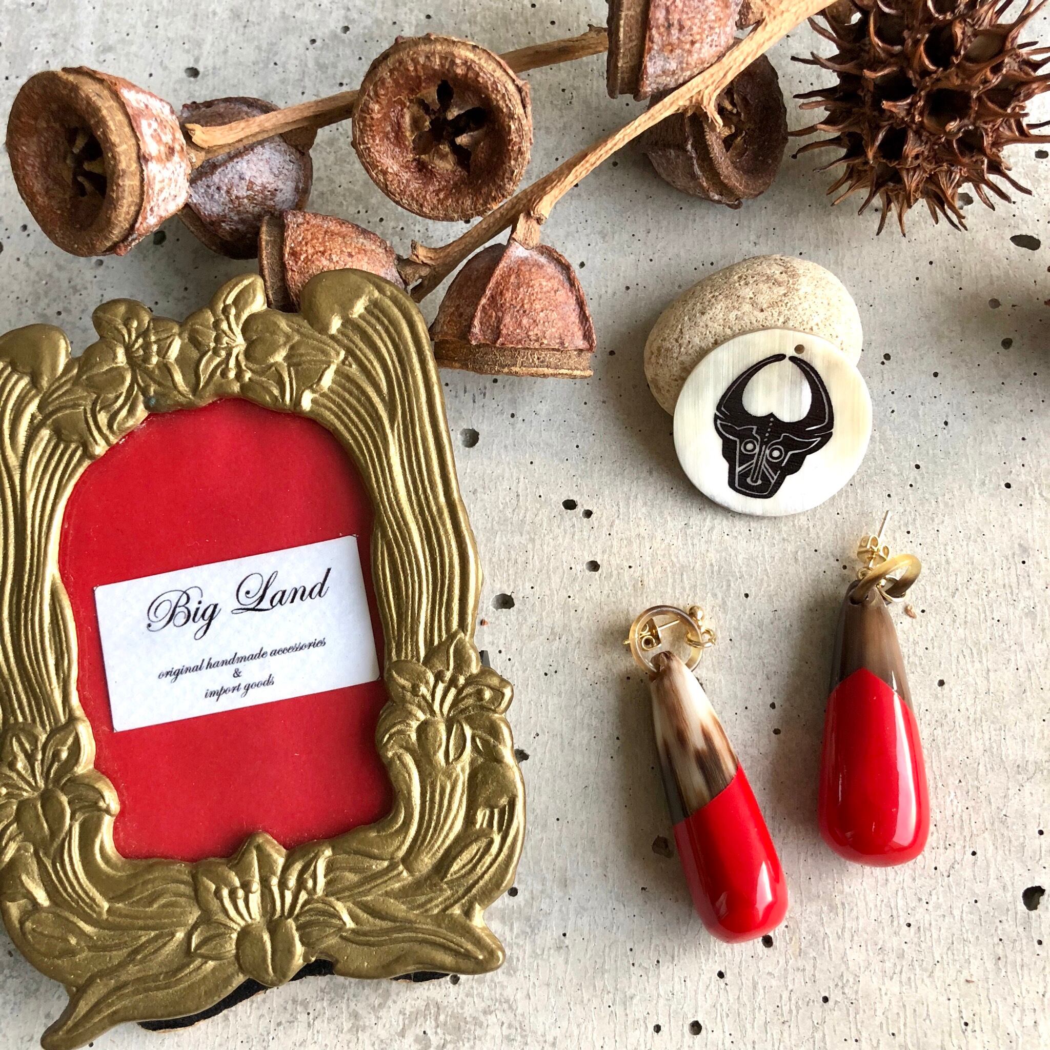 天然の水牛に赤色の漆塗りは元気が出そうなビビットカラー✨秋冬は暗い色のお洋服が多くなりますので、お顔周りがパッと明るくなりワンポイントのオシャレに役立ちます✨
