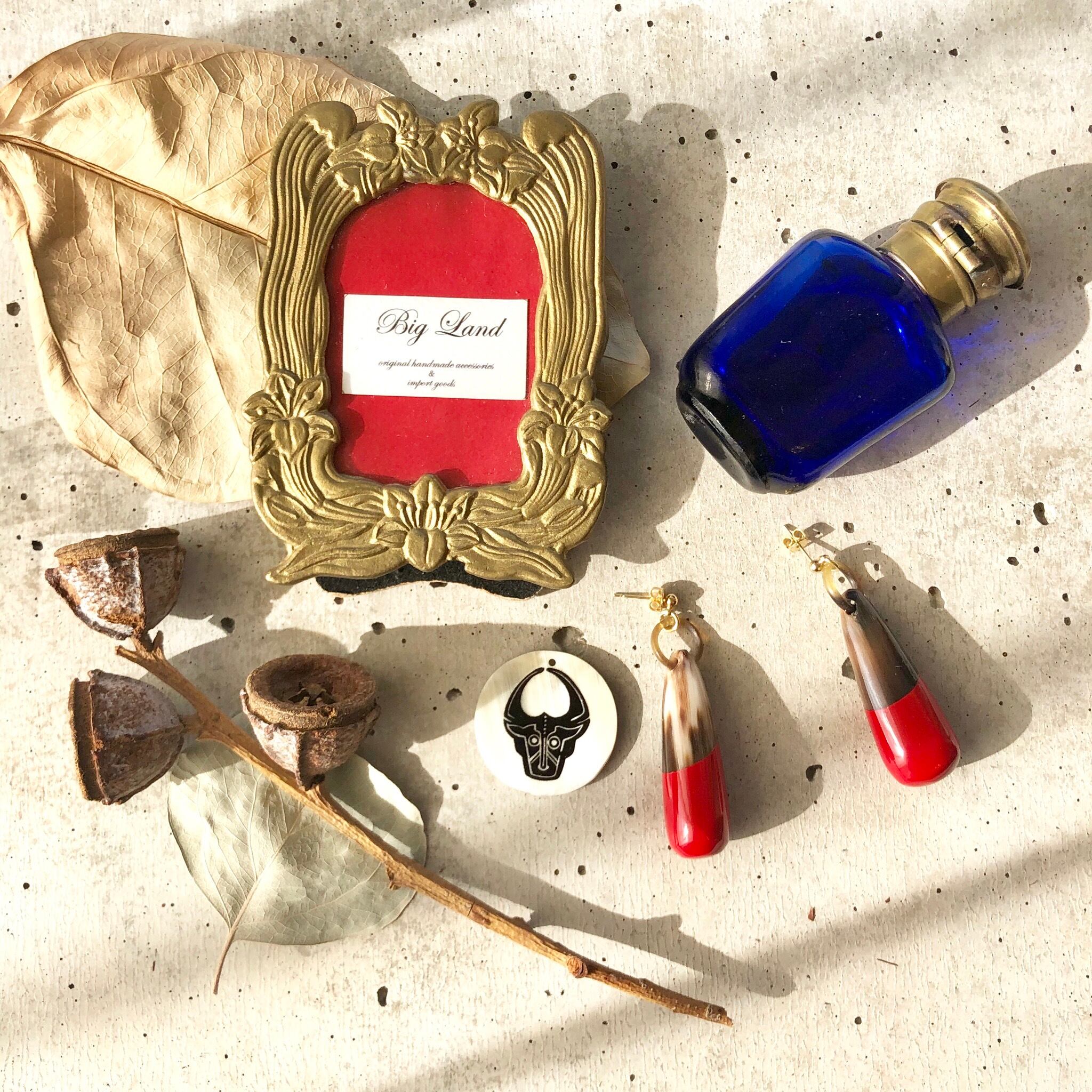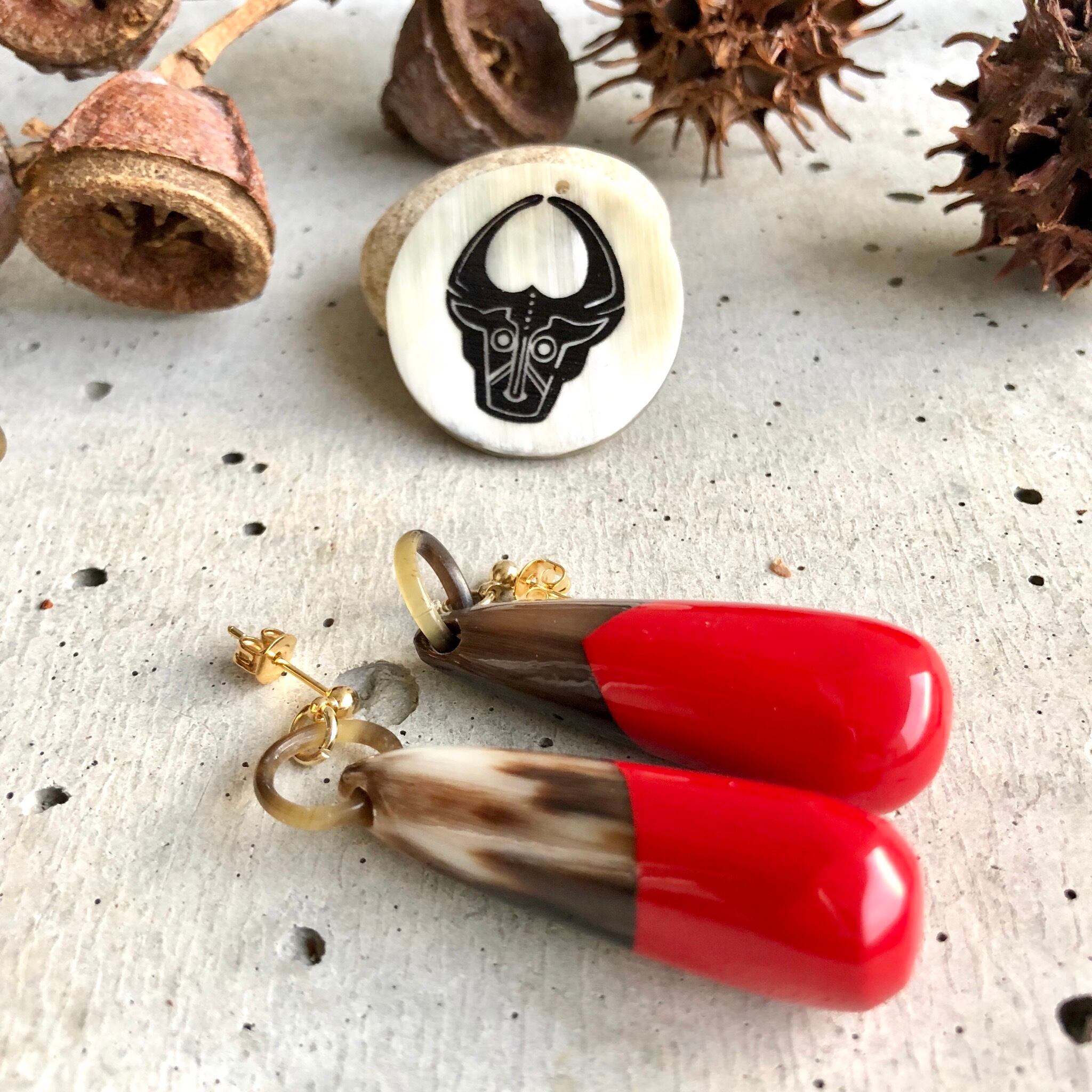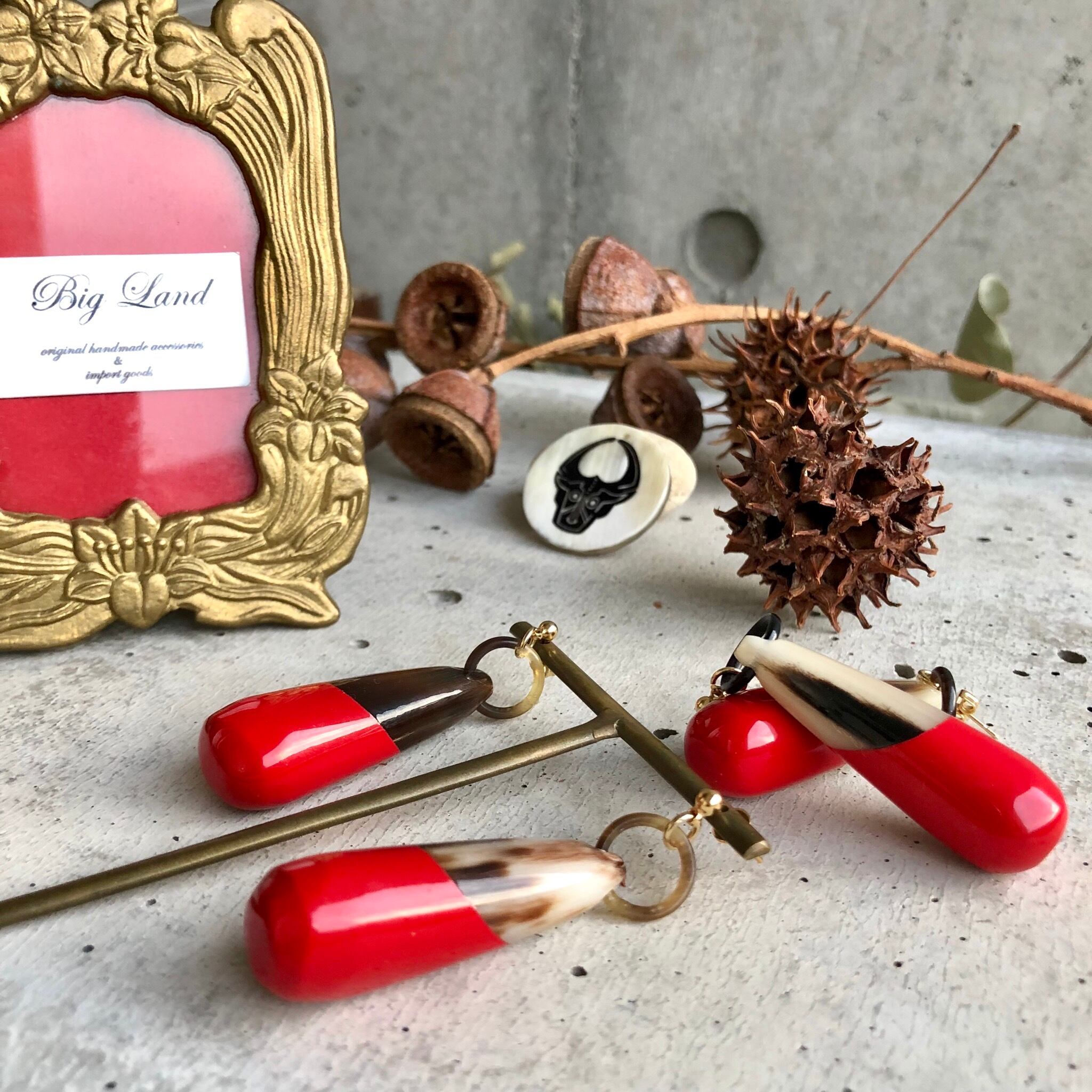 天然の水牛に赤色の漆塗りは元気が出そうなビビットカラー✨秋冬は暗い色のお洋服が多くなりますので、お顔周りがパッと明るくなりワンポイントのオシャレに役立ちます✨