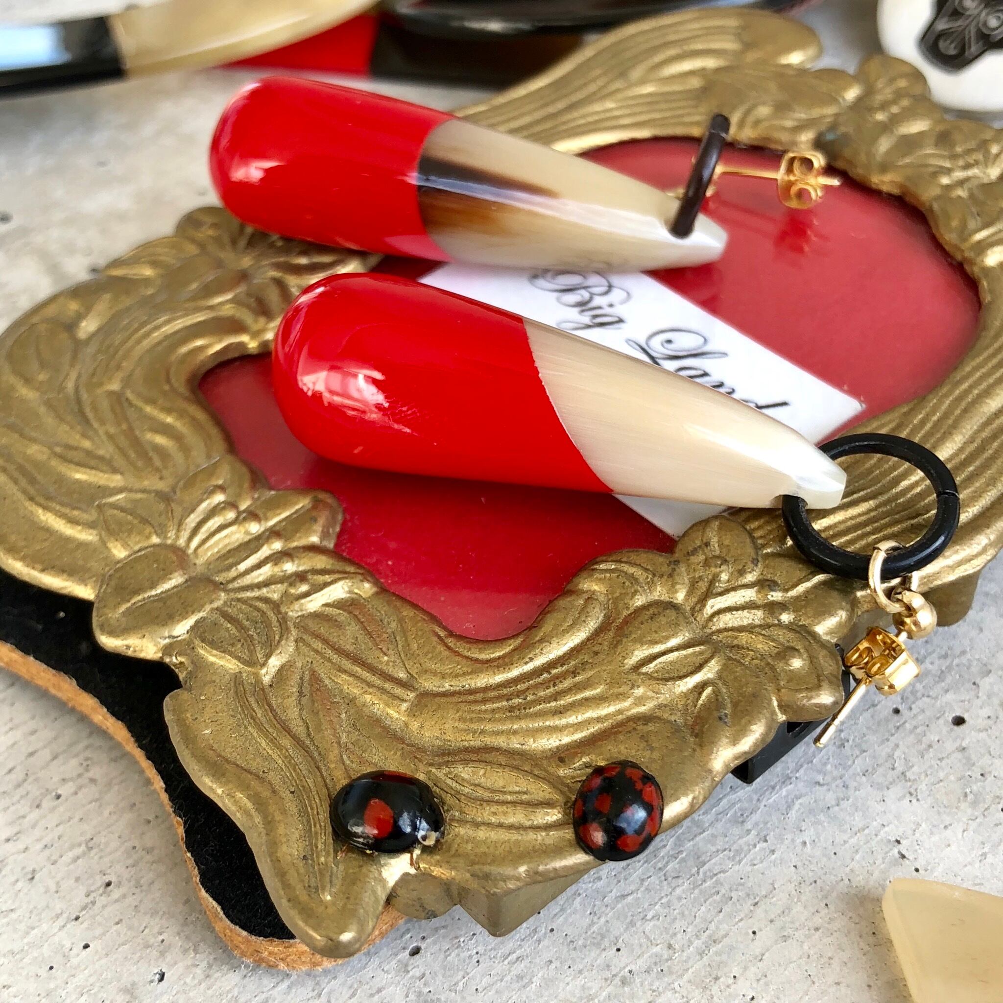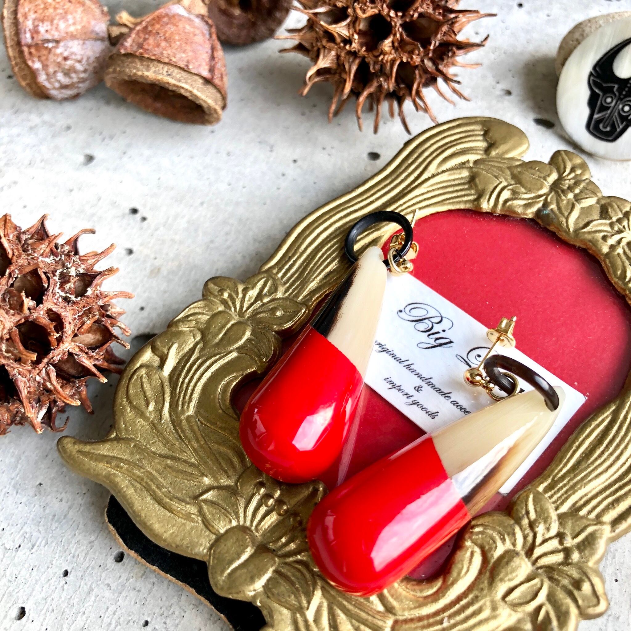天然の水牛に赤色の漆塗りは元気が出そうなビビットカラー✨秋冬は暗い色のお洋服が多くなりますので、お顔周りがパッと明るくなりワンポイントのオシャレに役立ちます✨