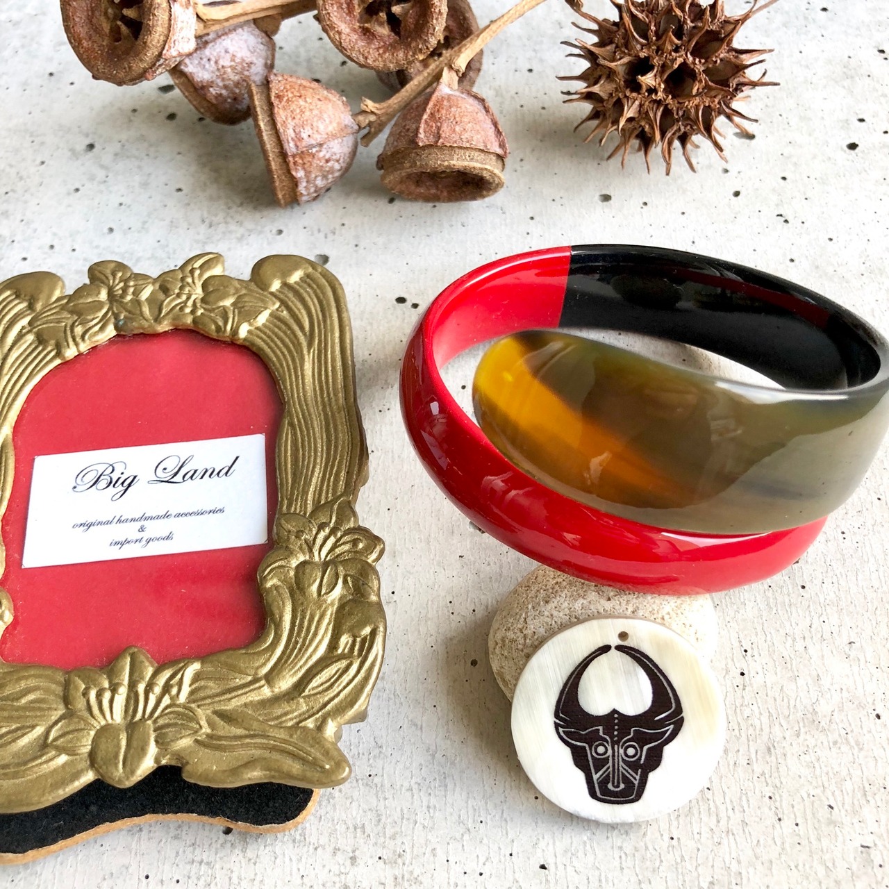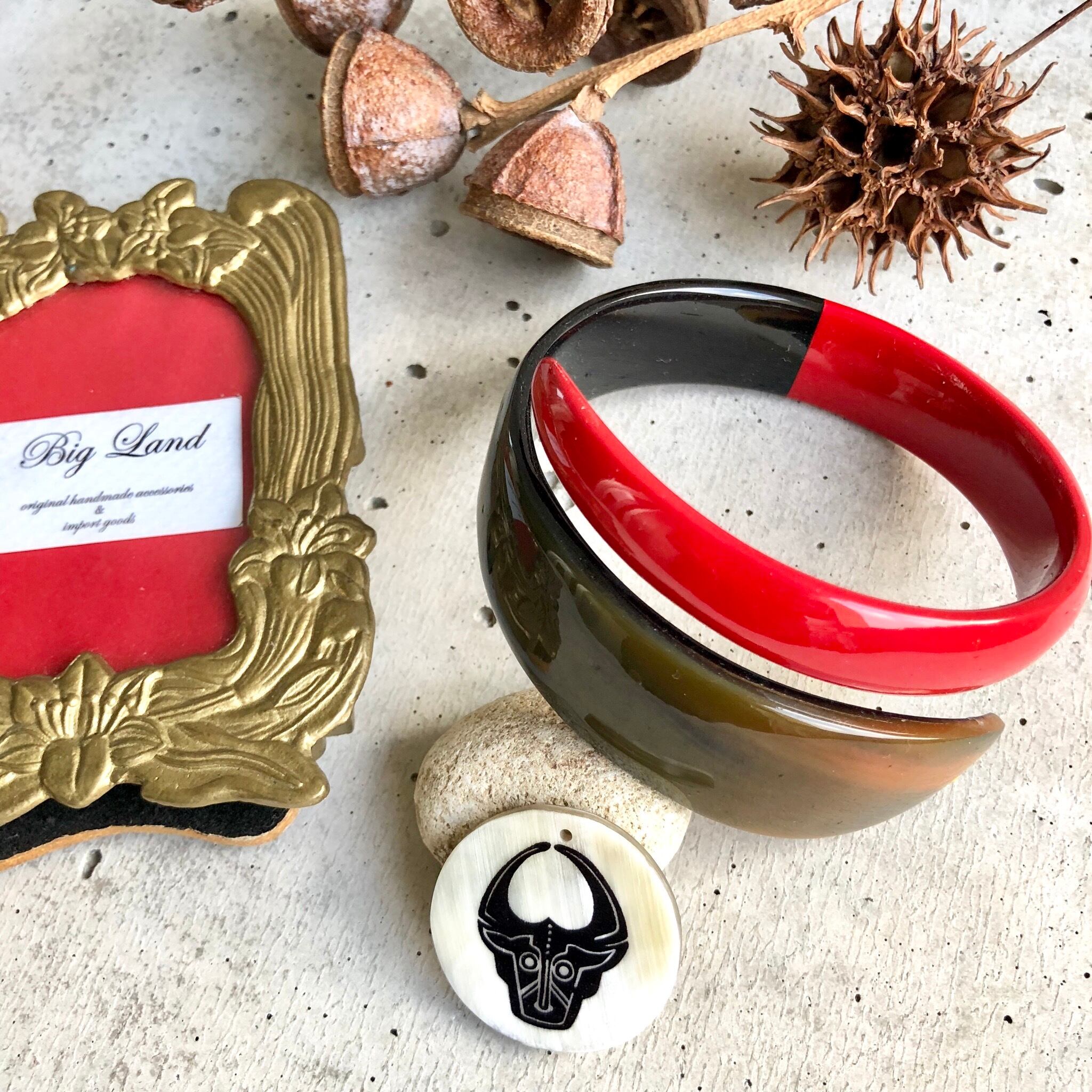 天然の水牛に赤色の漆を塗り水牛のグラデーション柄が大変上品でブラウンコーデに合います‼️