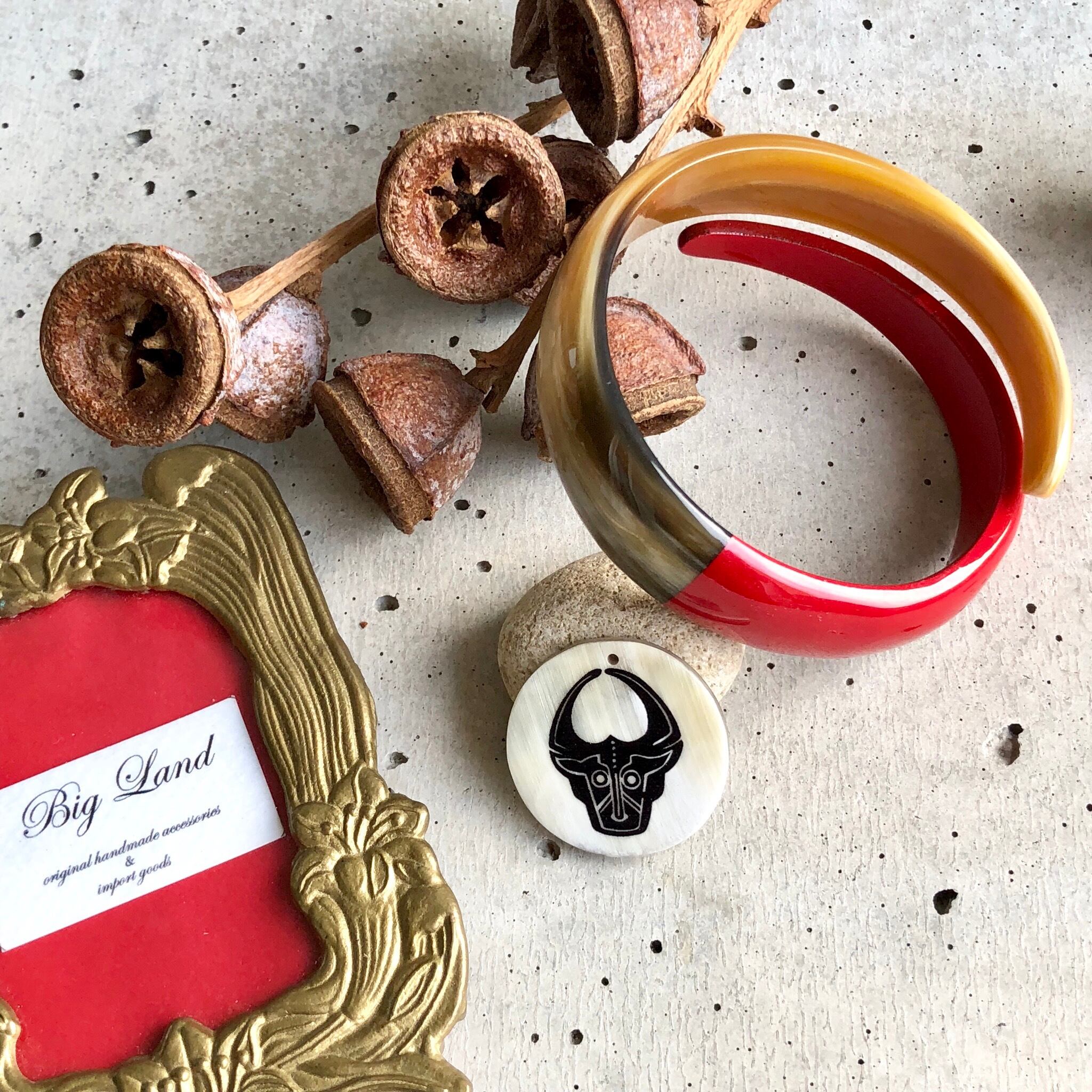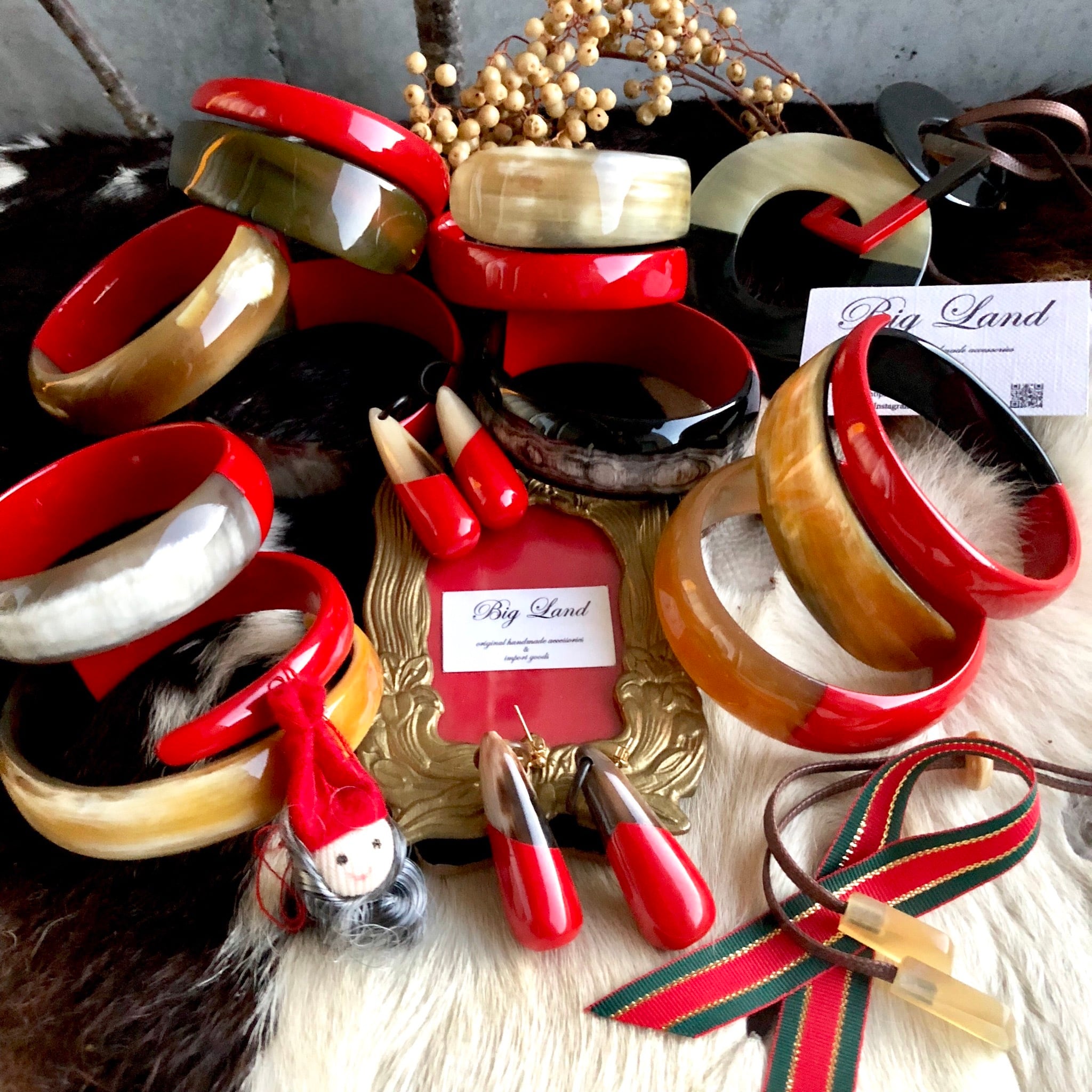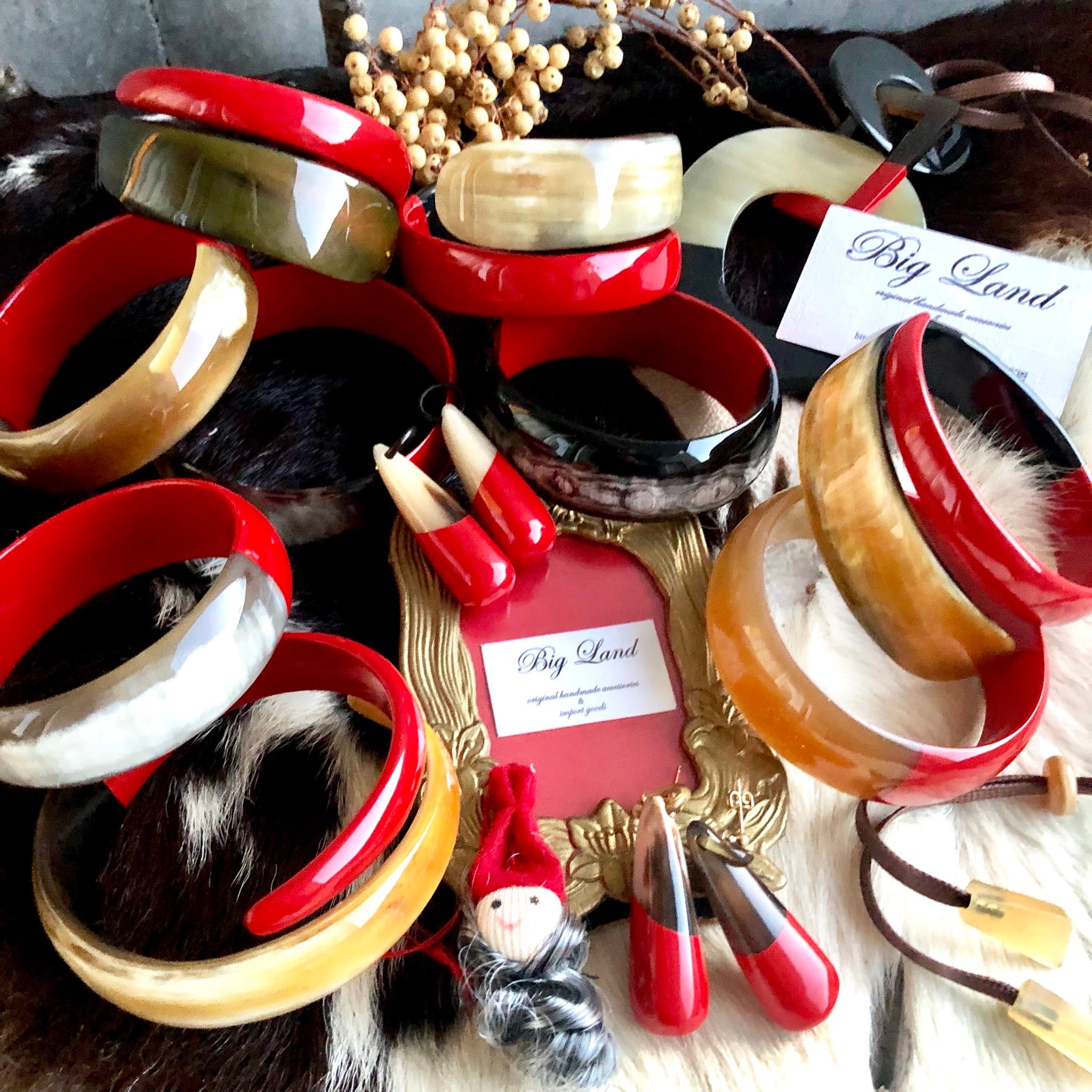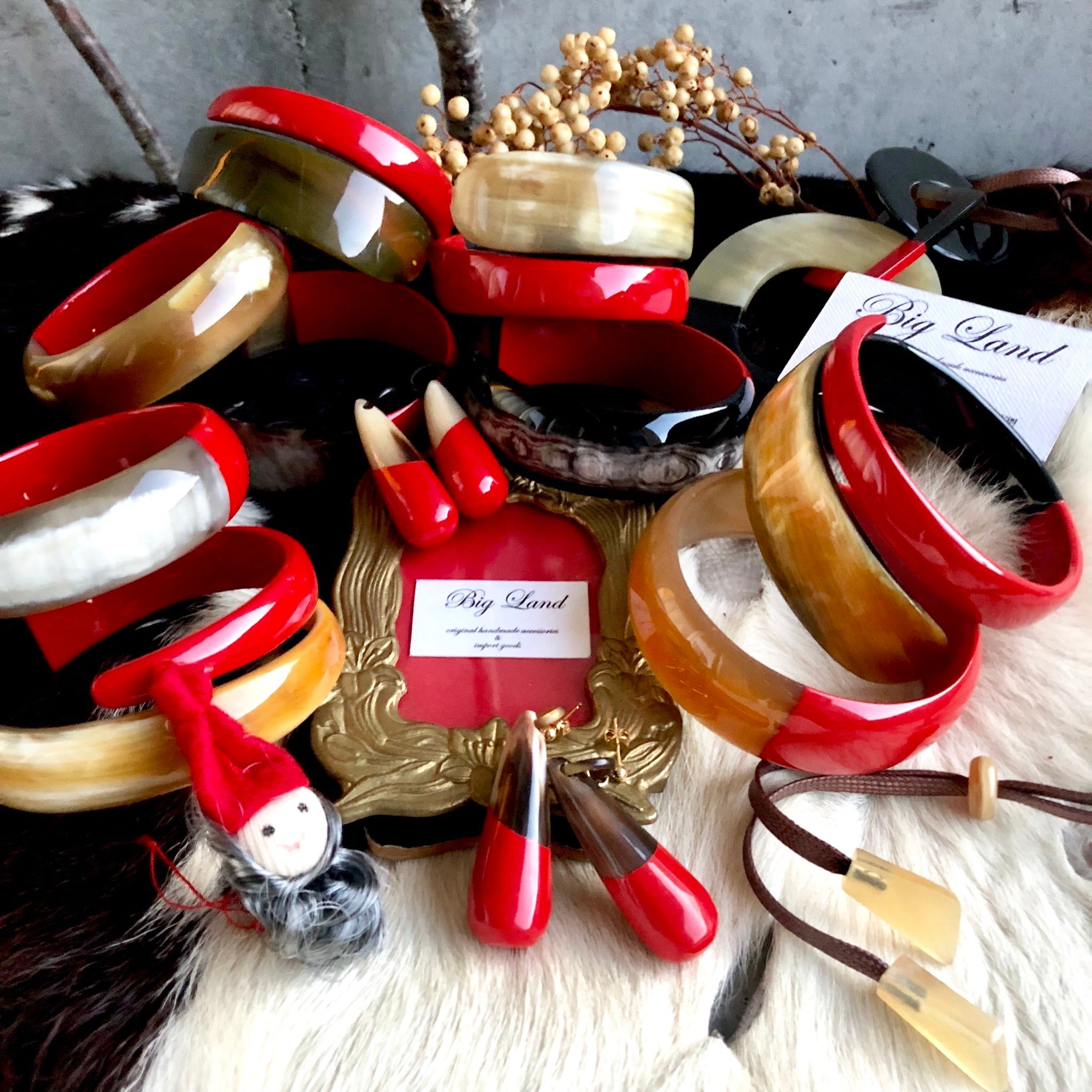 天然の水牛に赤色の漆を塗り水牛のグラデーション柄が大変上品でべージュやキャメルコーデに合います‼️