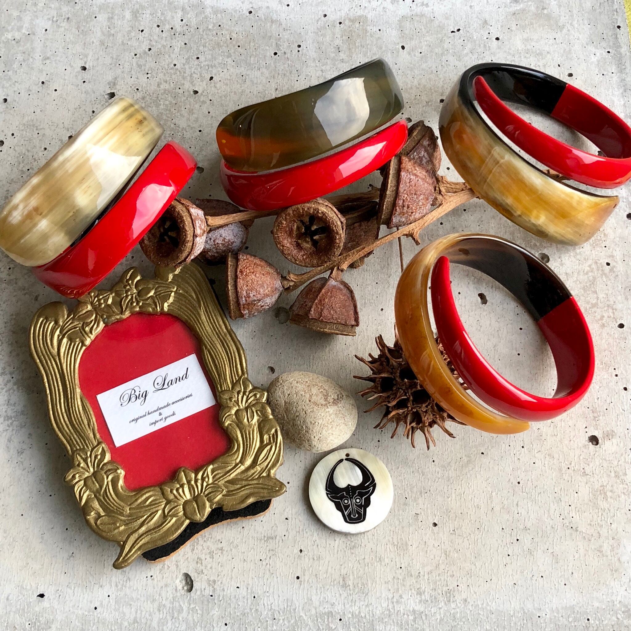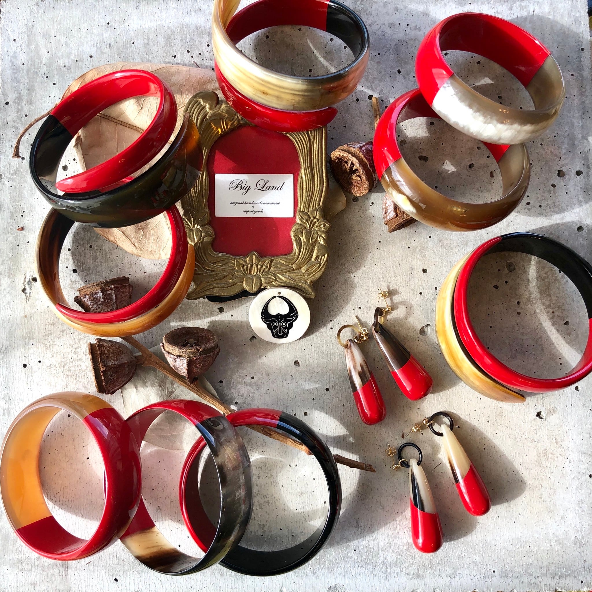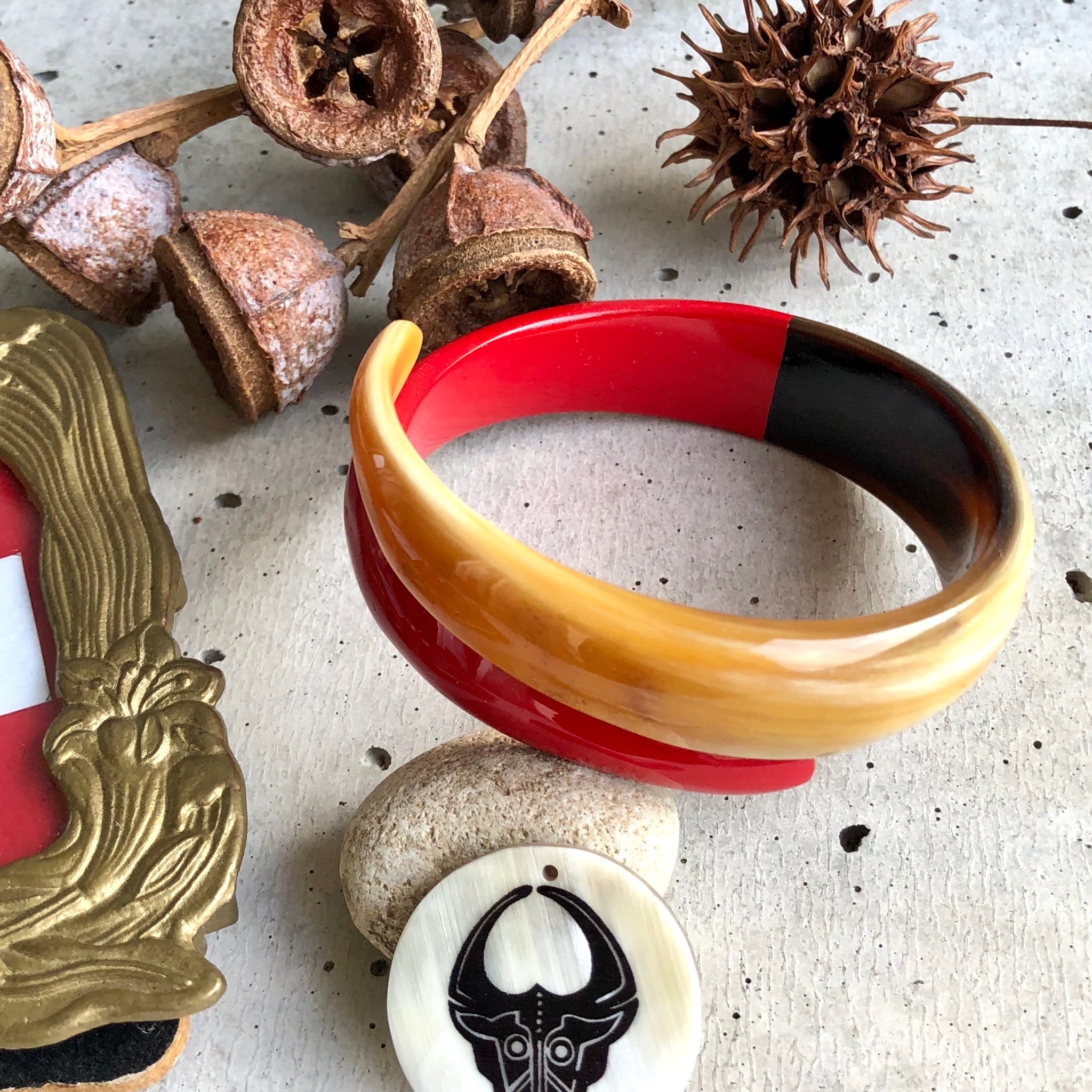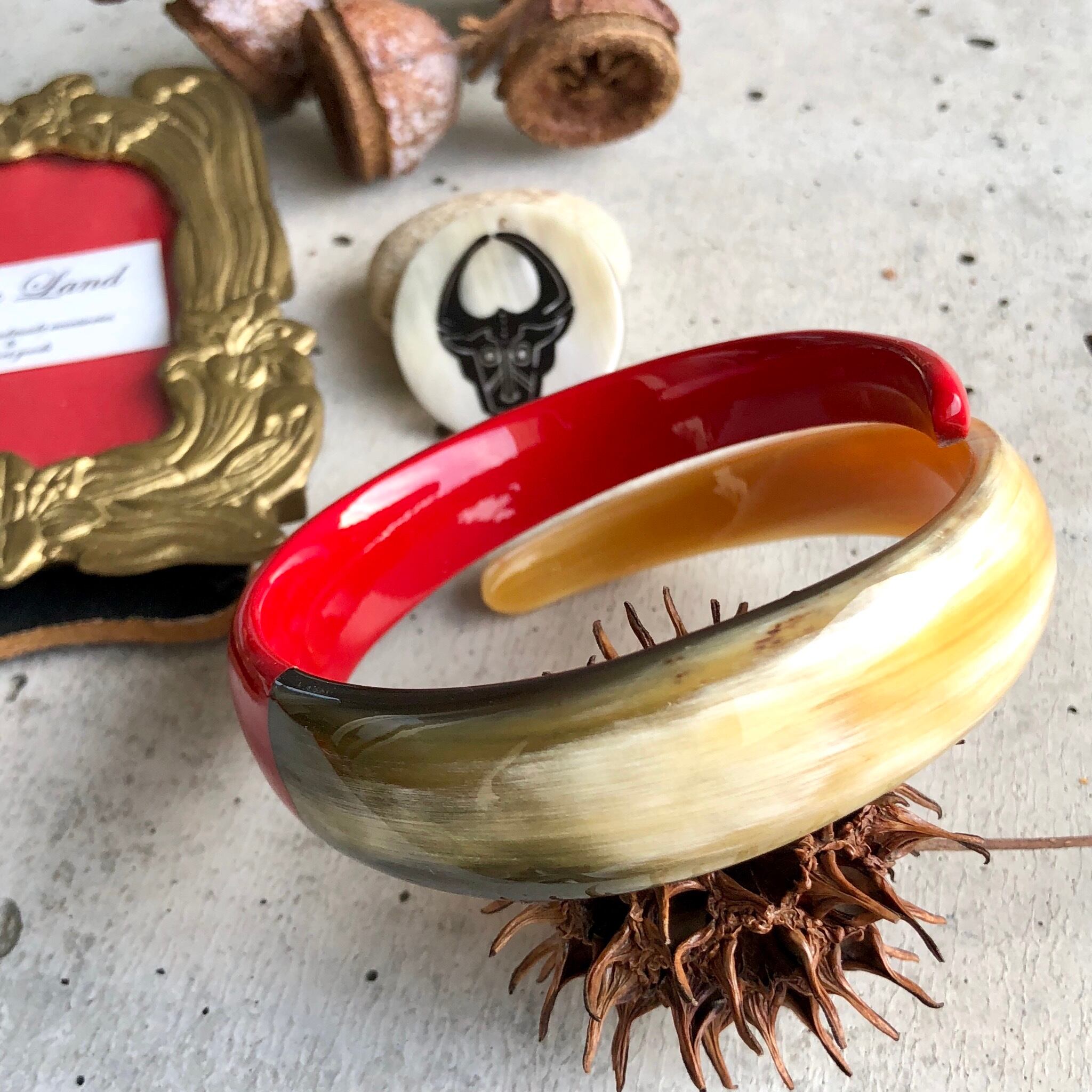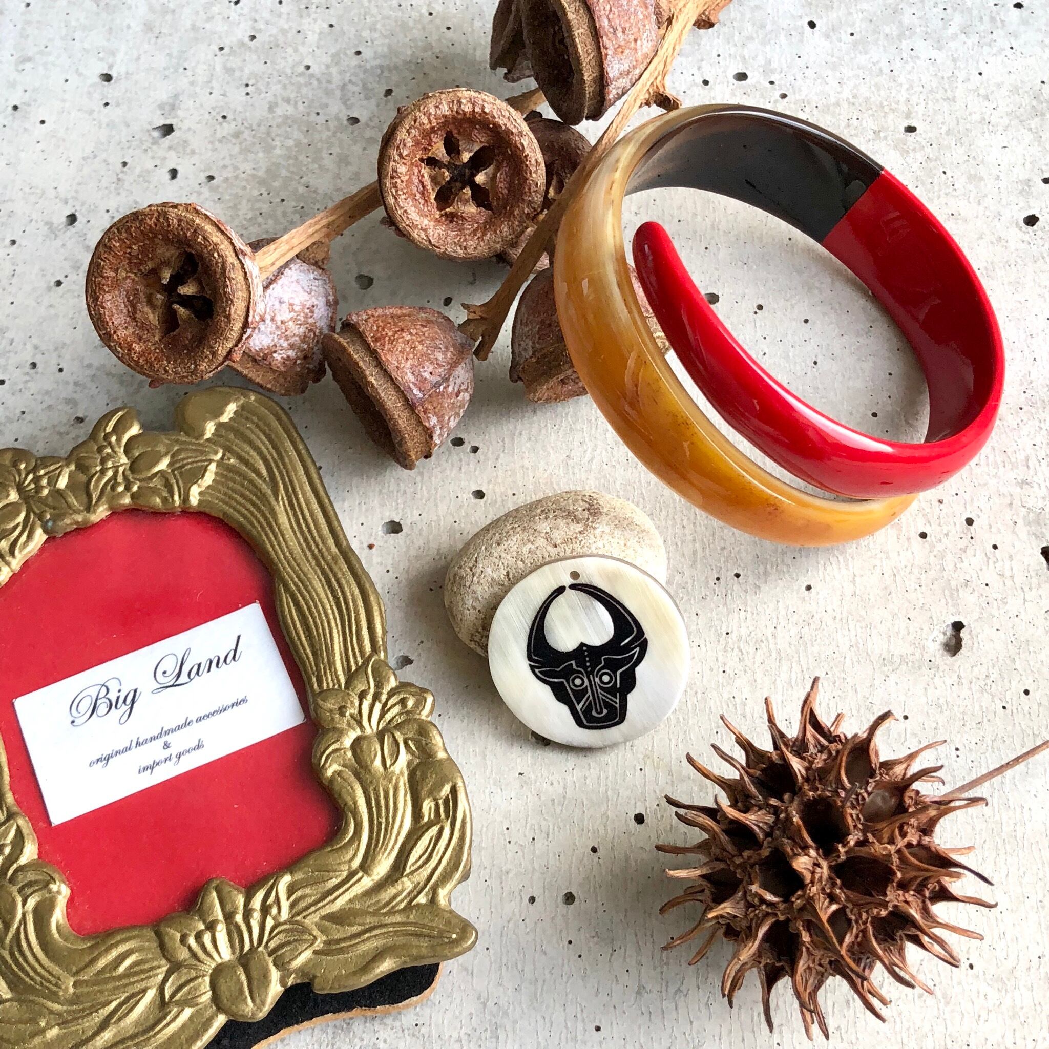 天然の水牛に赤色の漆を塗り水牛のグラデーション柄が大変上品でべージュやキャメルコーデに合います‼️