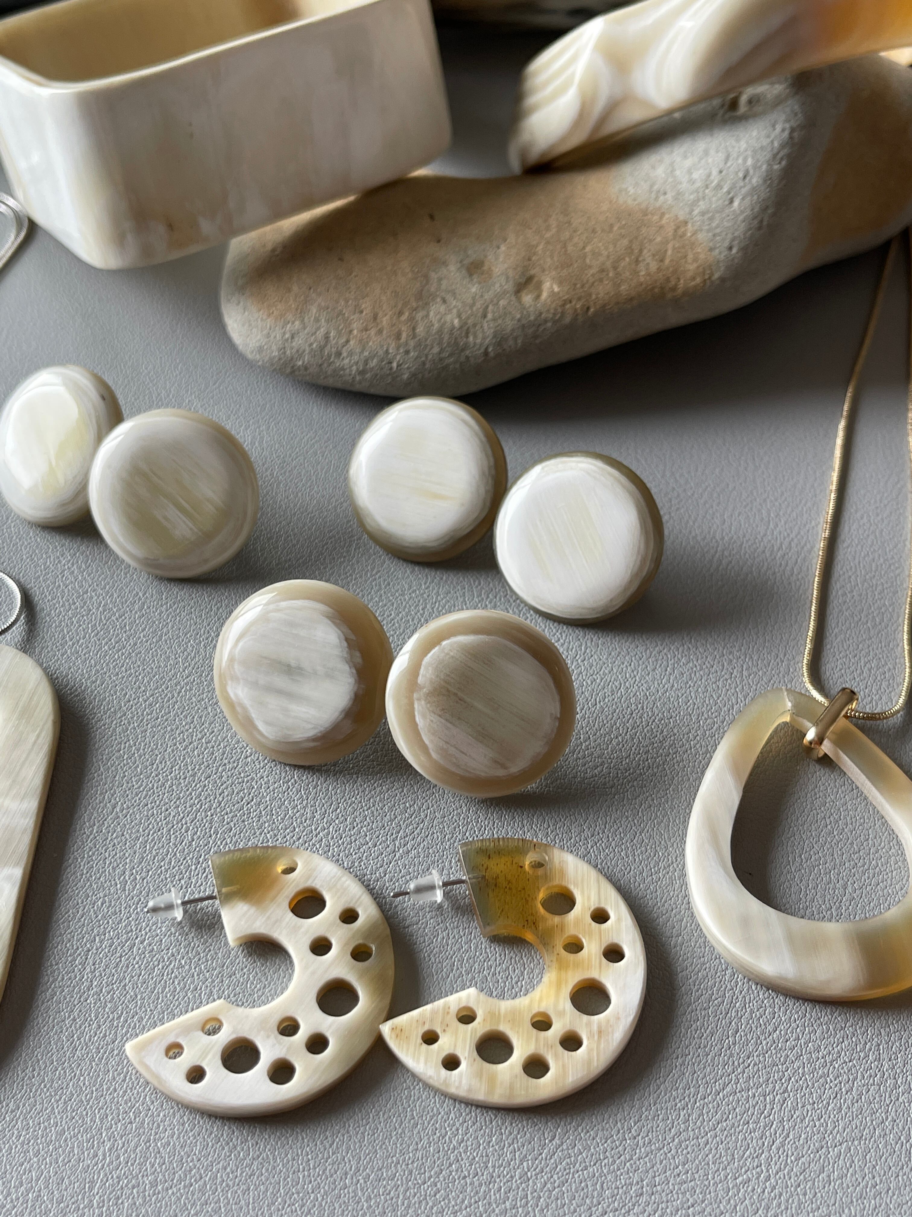 シンプルなデザインの水牛ピアス✨
