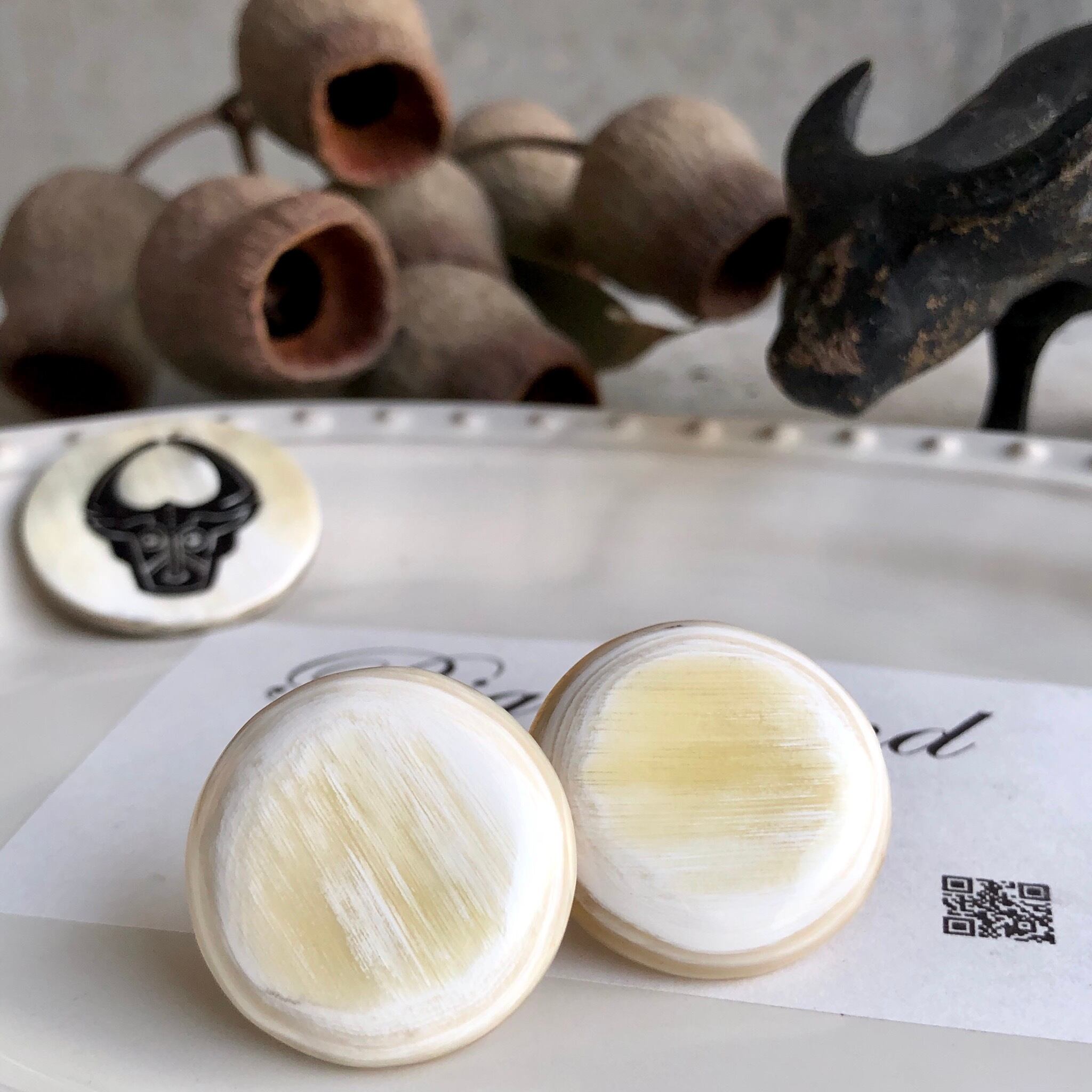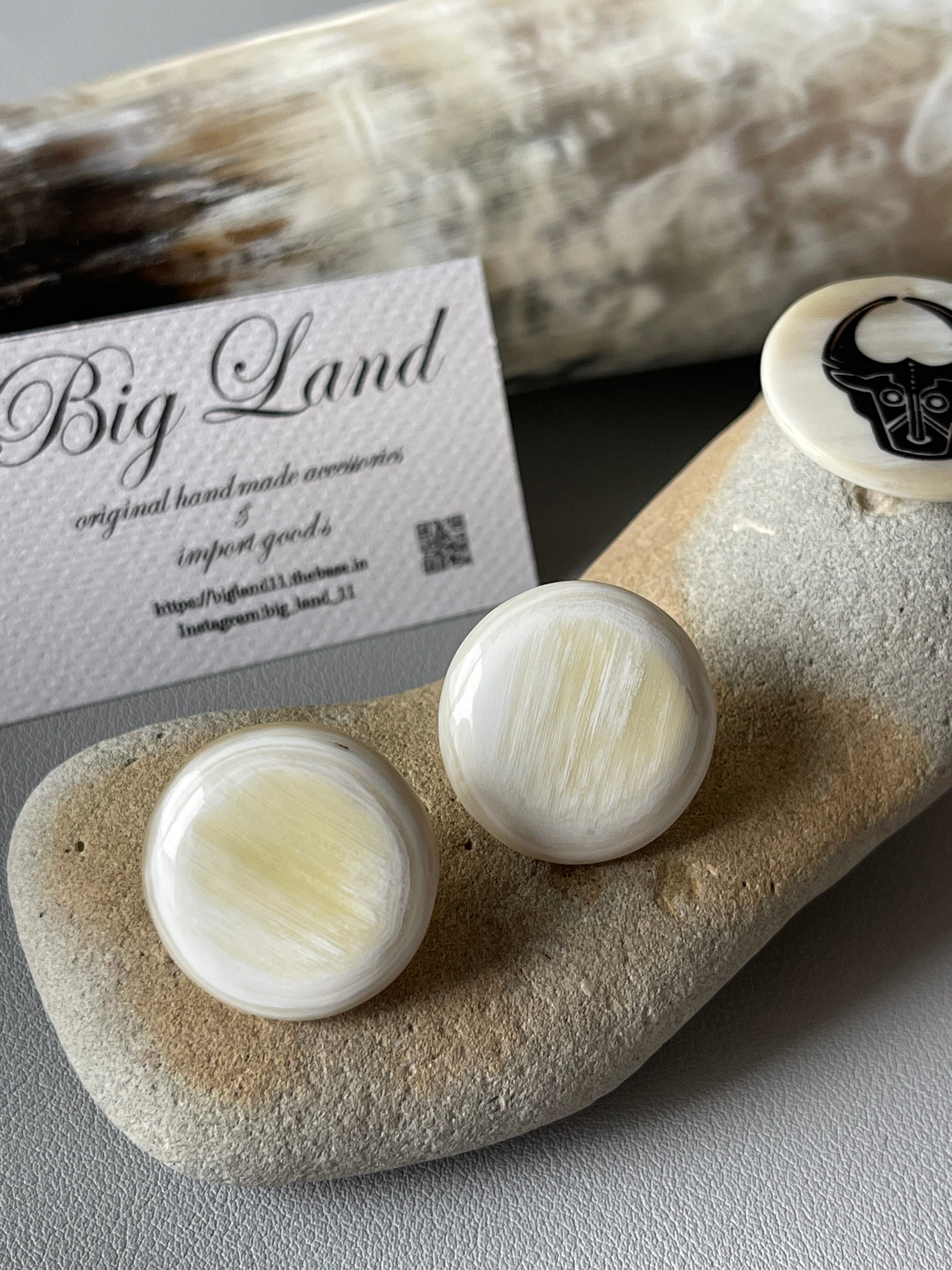 耳元でパッと明るくなる上品な色合いで、水牛角の一点ものならではの柄がとても美しく、卒業式や入学式等フォーマルコーデとの組み合わせにもお使いできます‼️