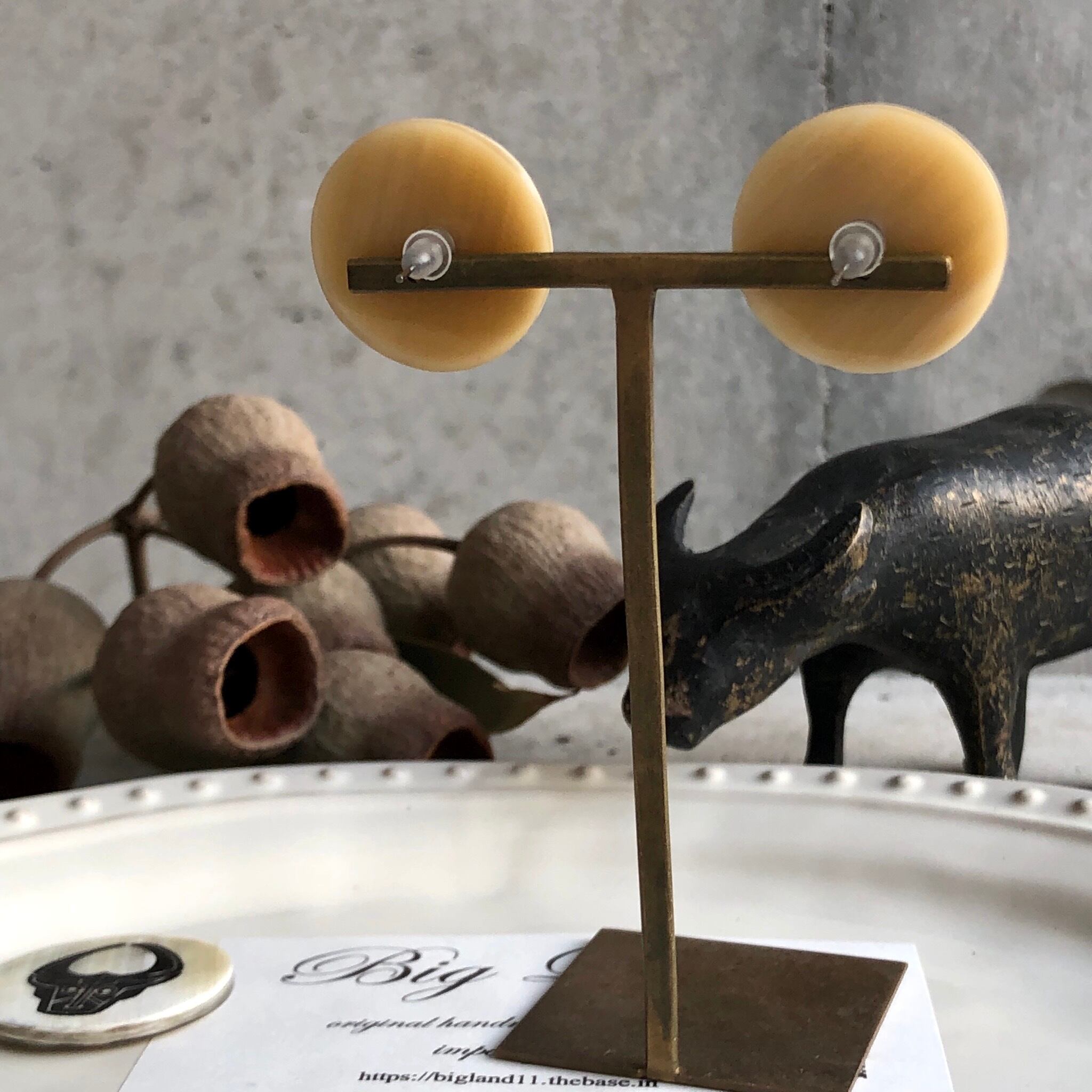シンプルなデザインの水牛ピアス✨