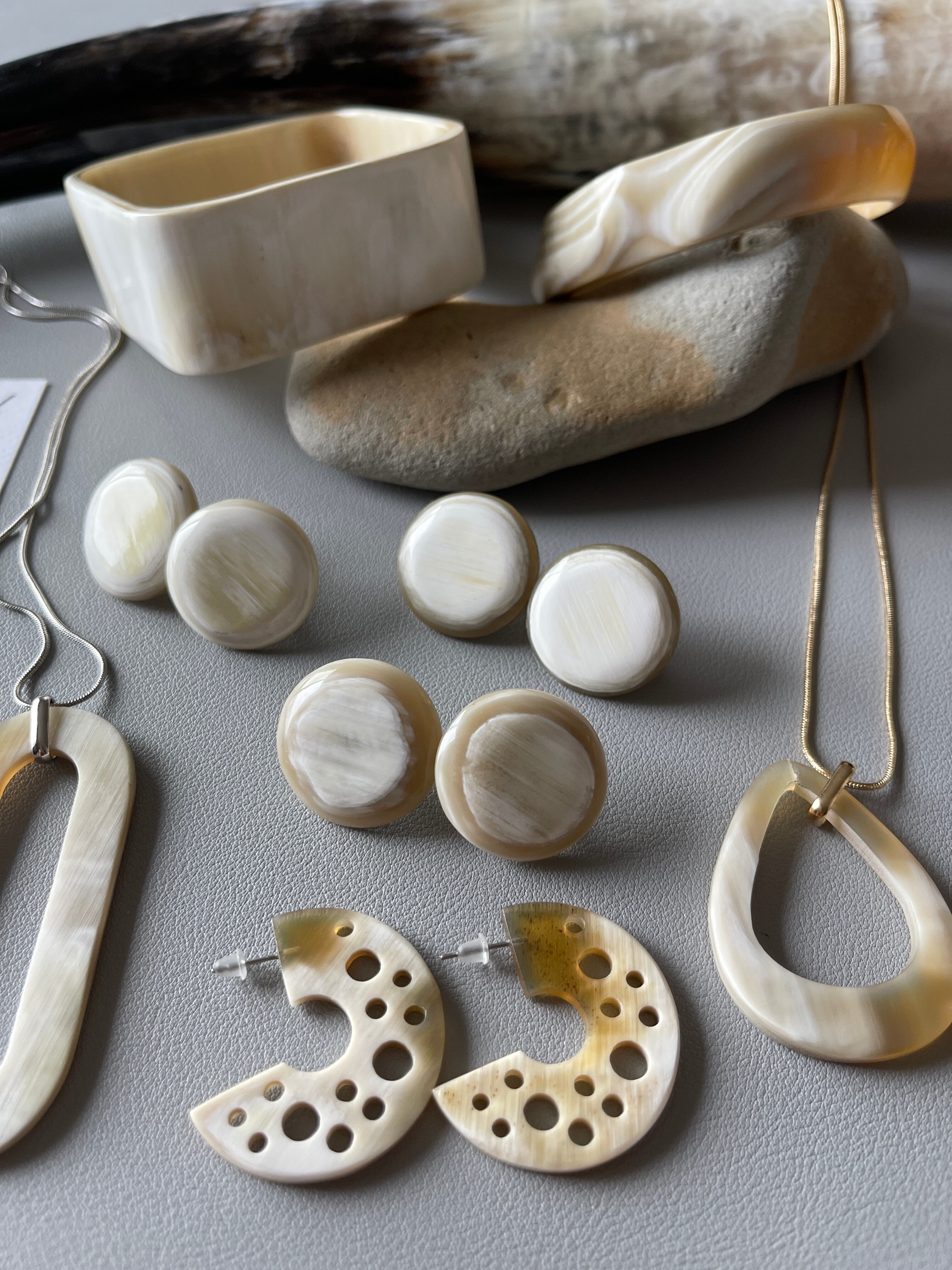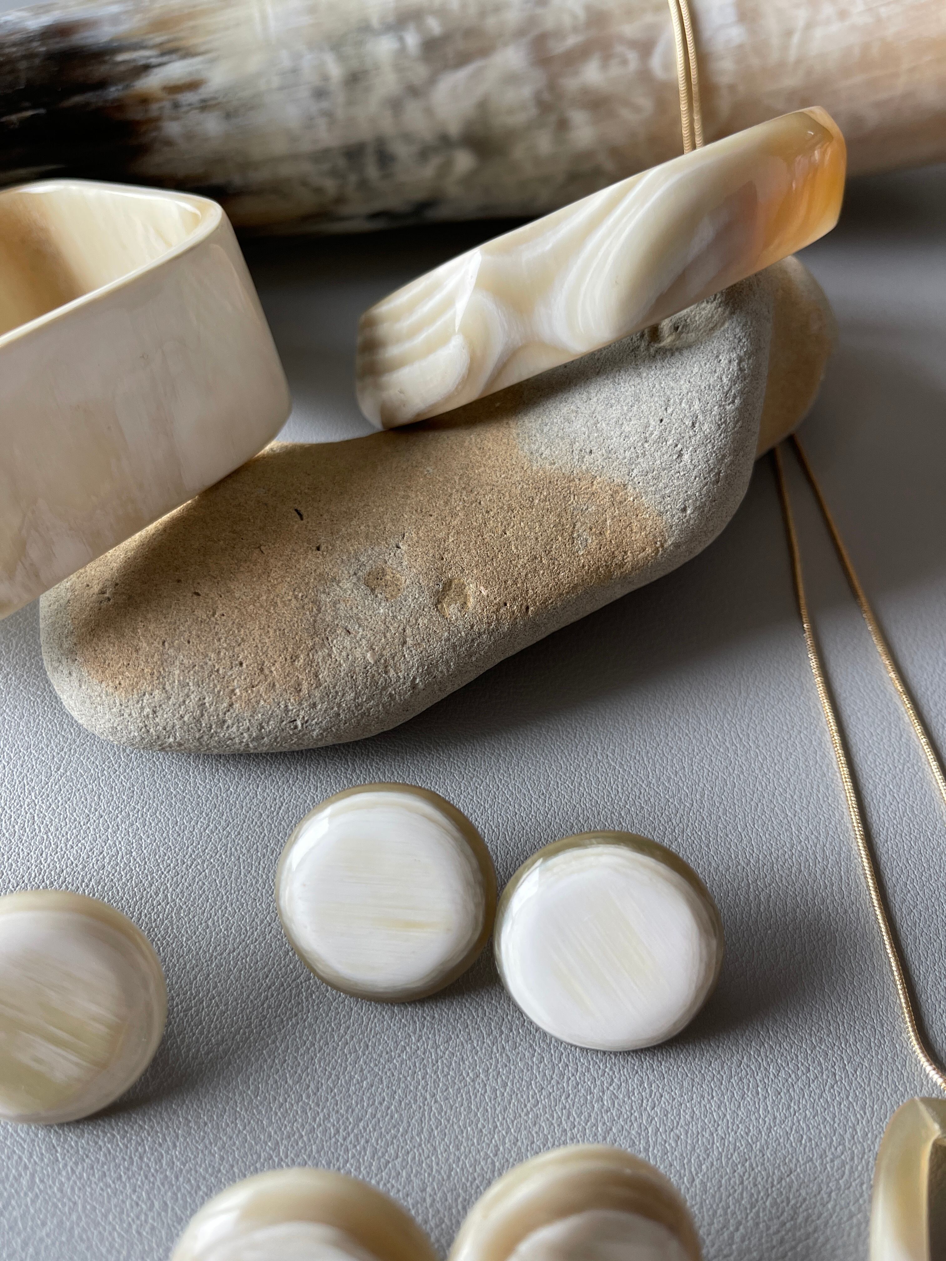パッと明るくなる上品な色合いで、水牛角の一点ものならではの柄がとても美しく、卒業式や入学式等フォーマルコーデとの組み合わせにもお使いできます‼️