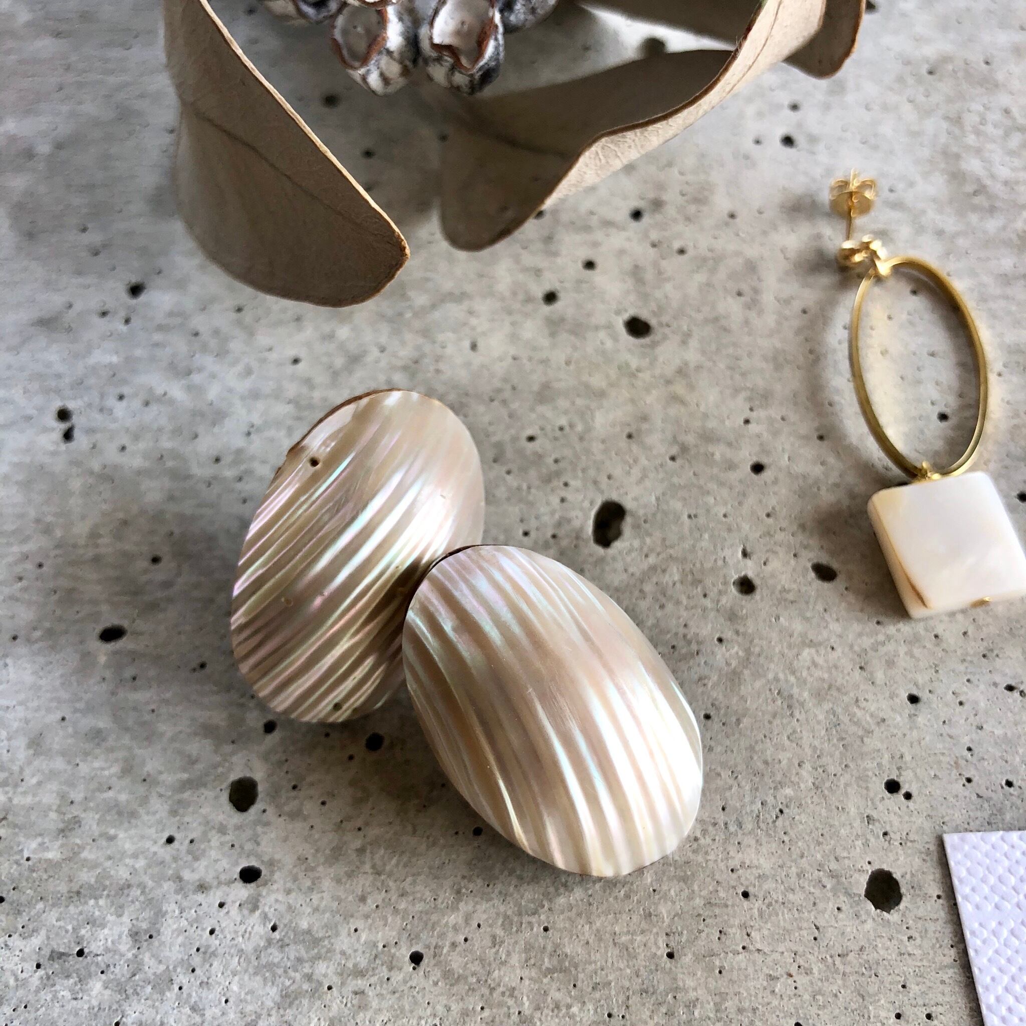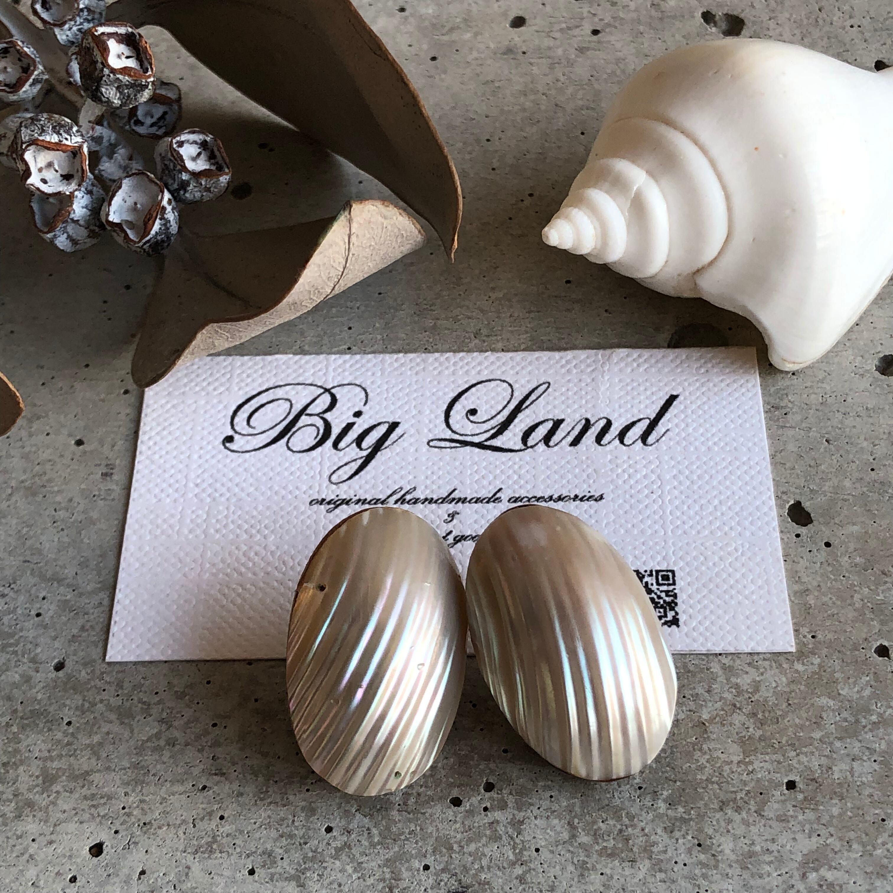 耳元にぴったりくっつきシェルの輝きが大変美しく、シンプルなお洋服から個性的なお洋服にと幅広く使えると思います✨