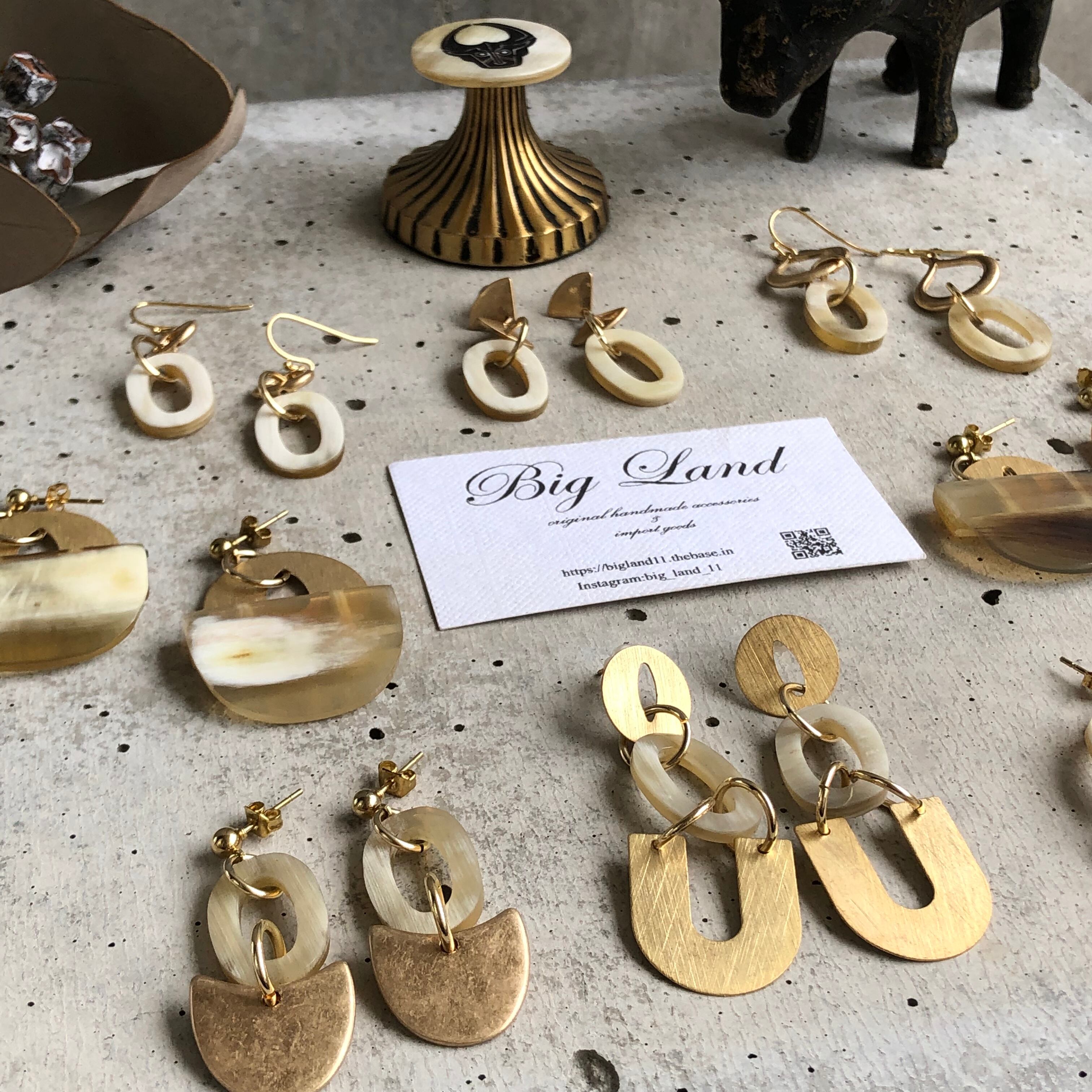 マットゴールドの地金と水牛角を組み合わせ、個性的に仕上げた一押しデザイン✨