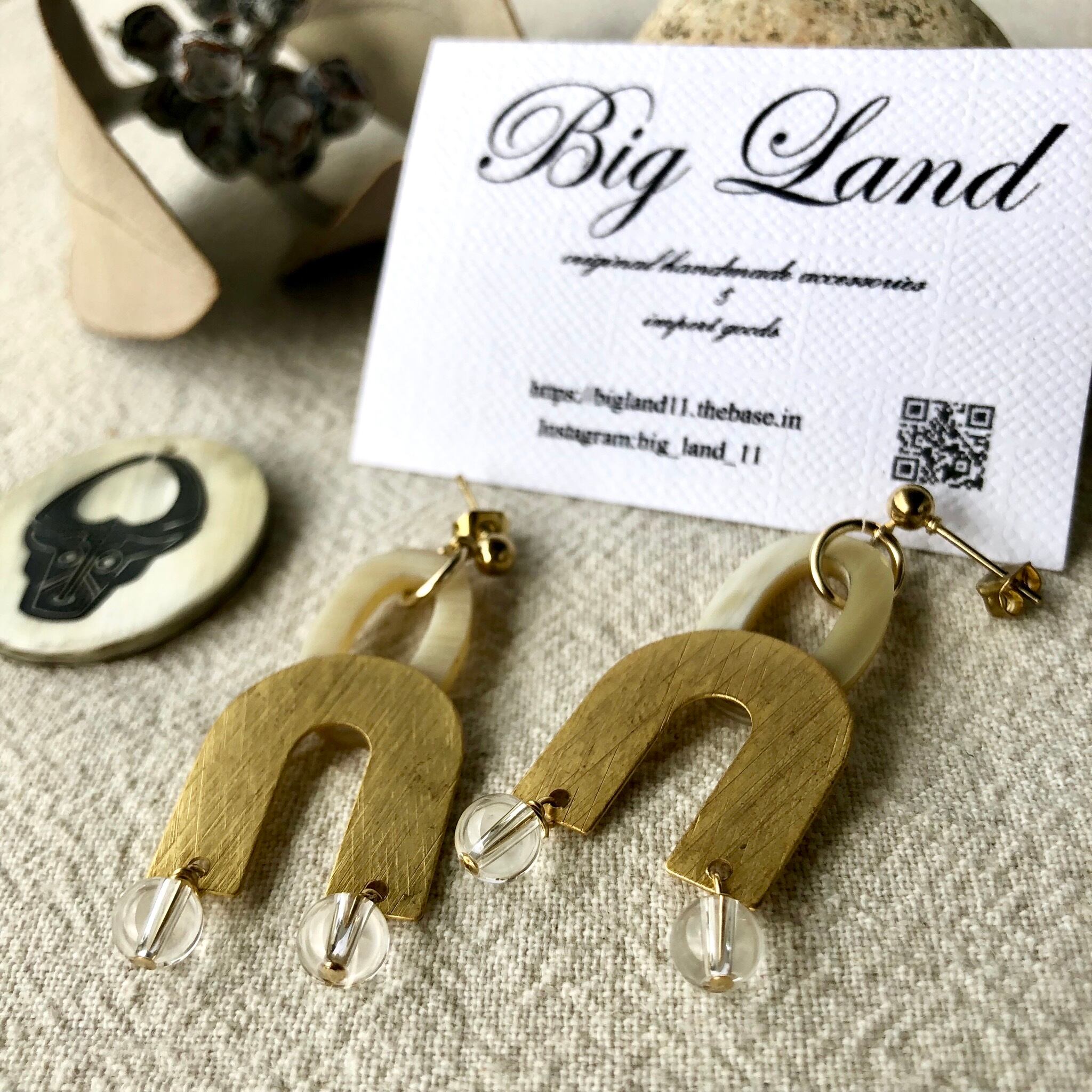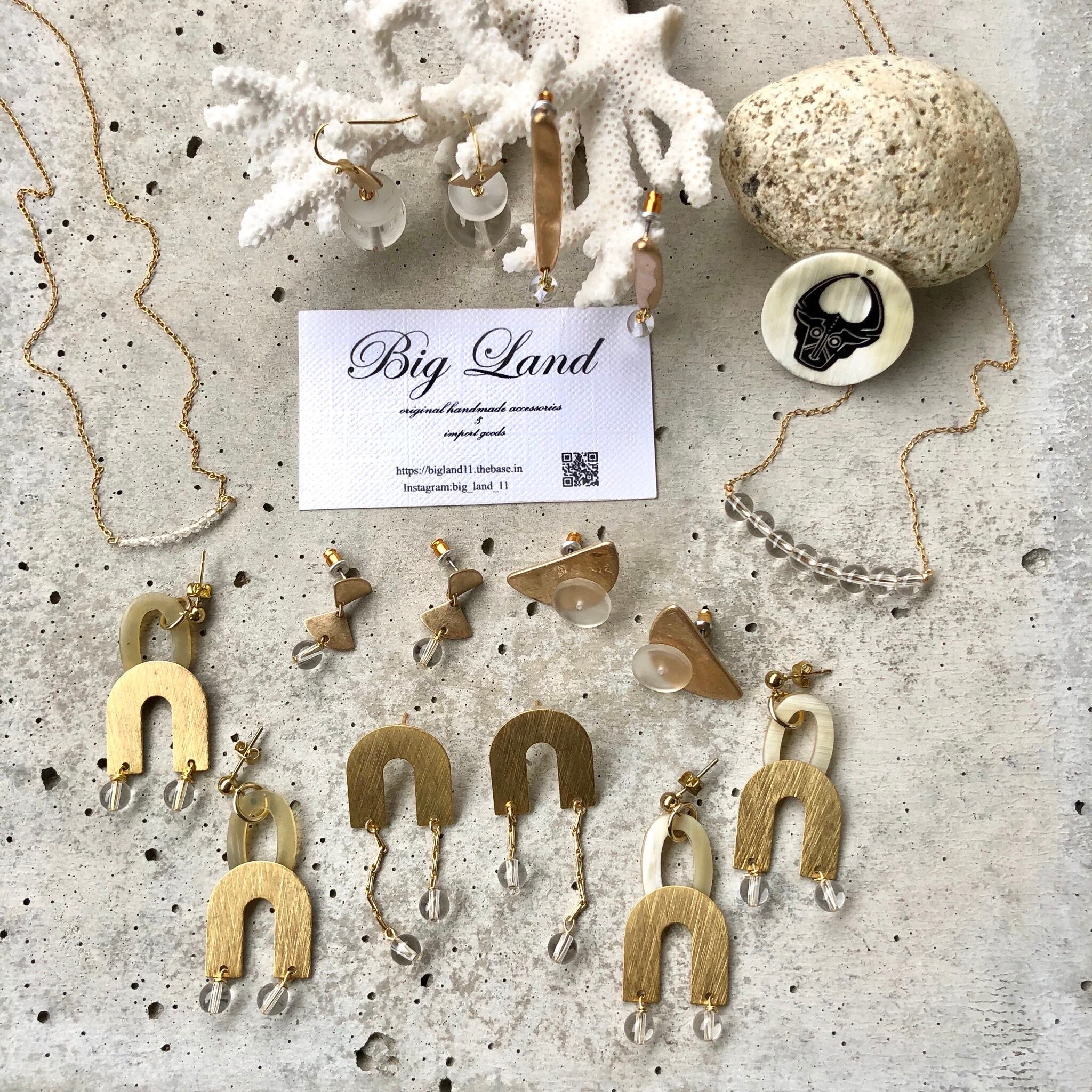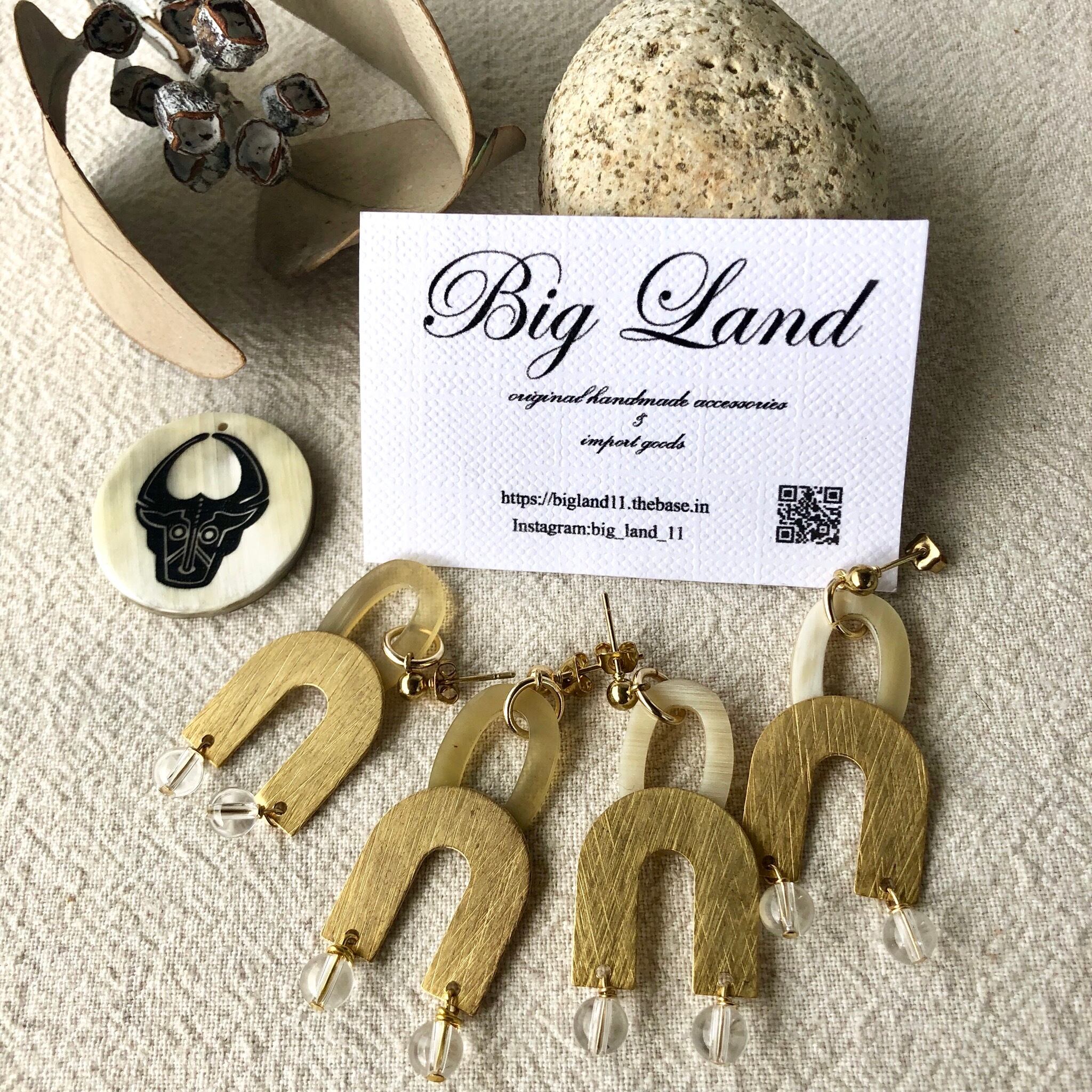 マットゴールドの地金と水牛角&水晶を組み合わせ、個性的に仕上げた一押しデザイン✨