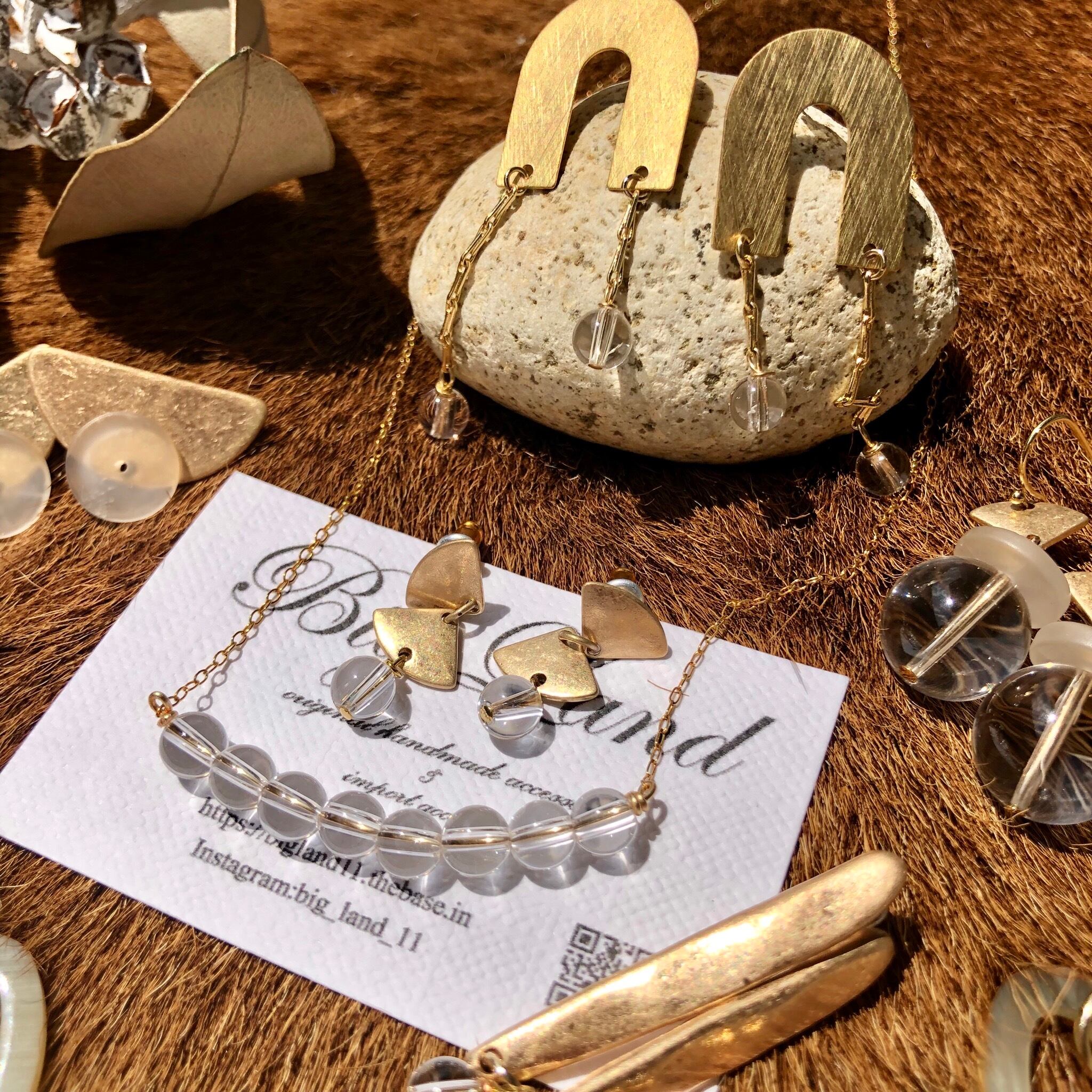 水晶に光が差し込むと大変神秘的でシンプルなクリア色は夏のカラフルなお洋服にも合わせ易いです‼️