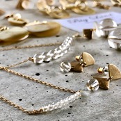 マットゴールドの地金と二種の水晶を組み合わせ、個性的に仕上げた一押しデザイン✨