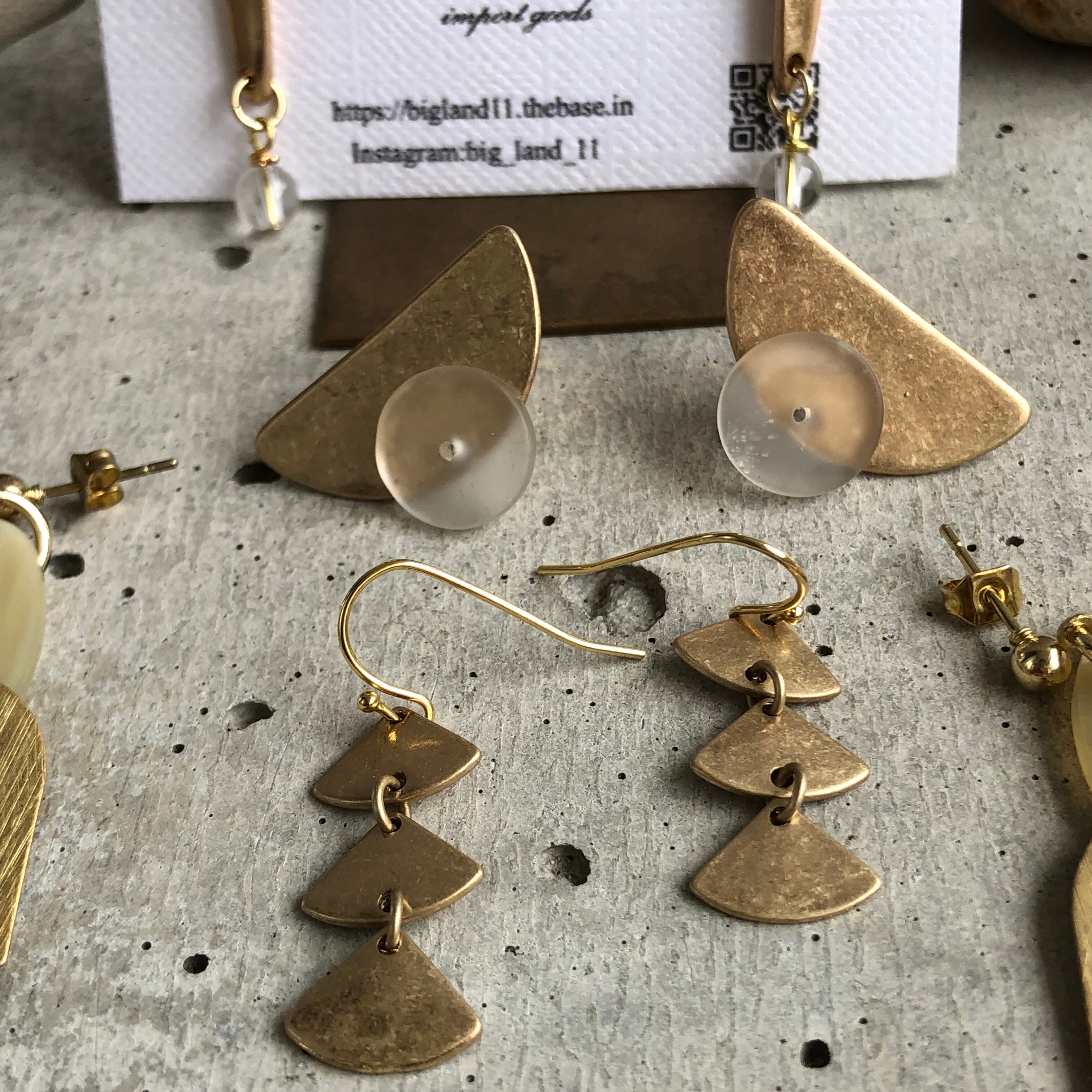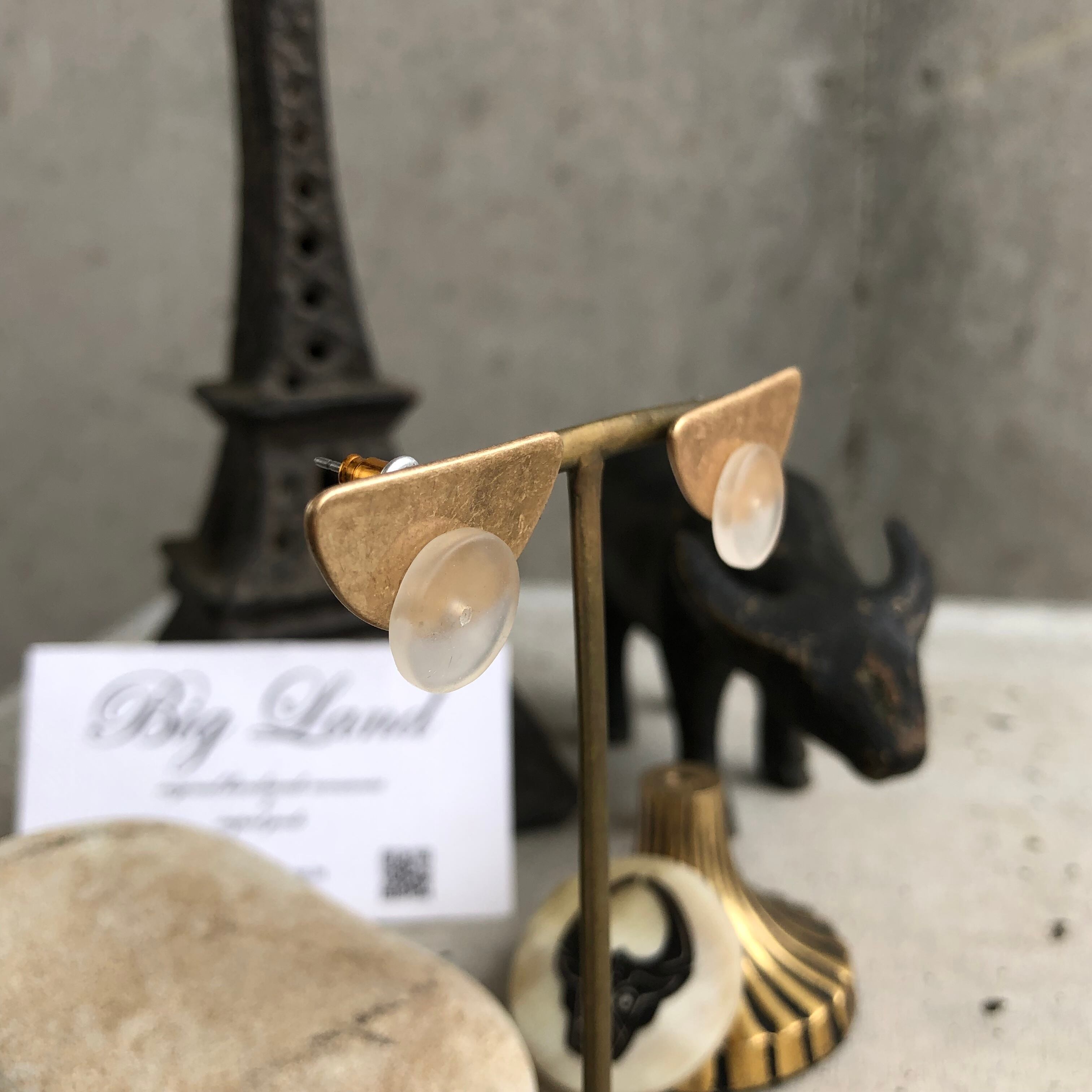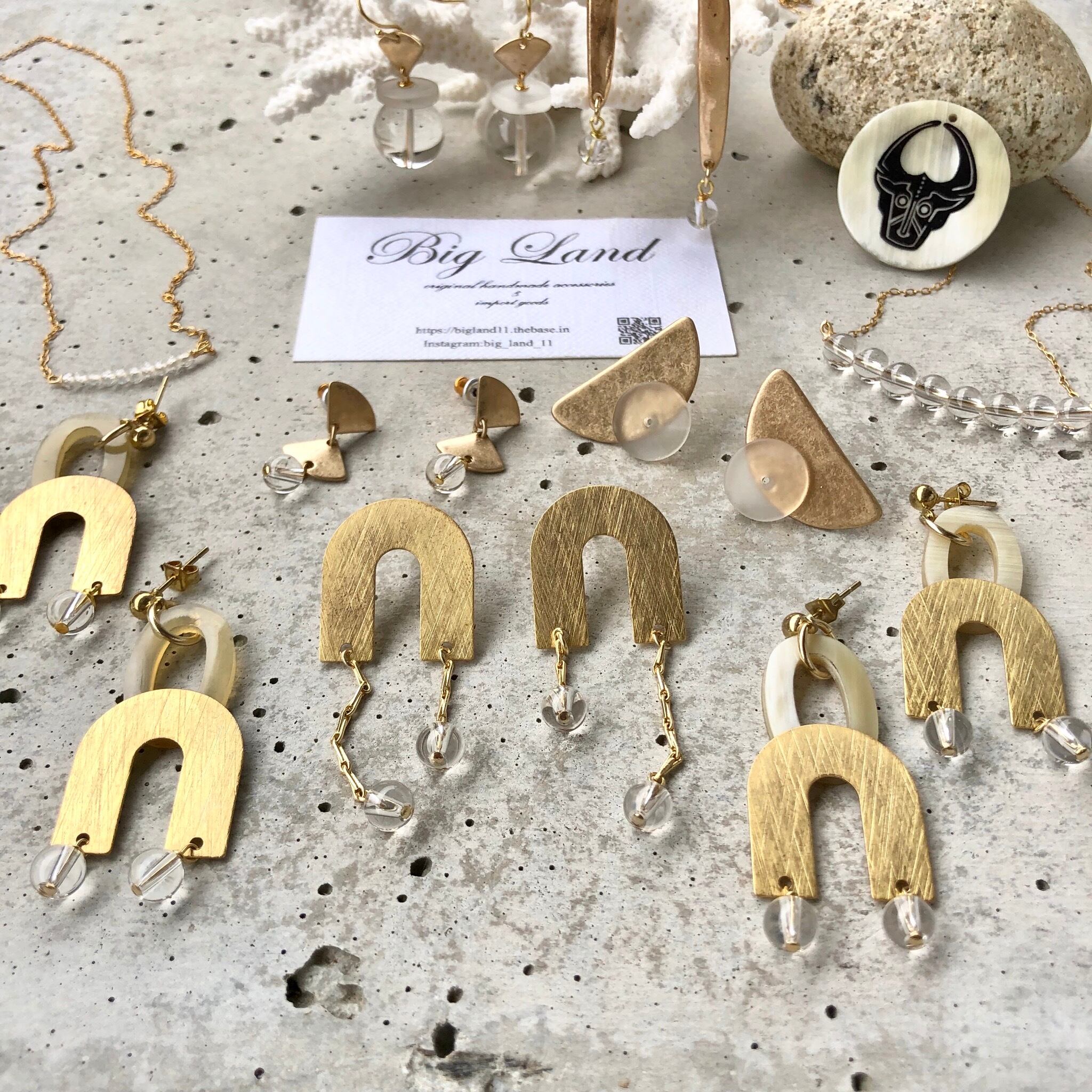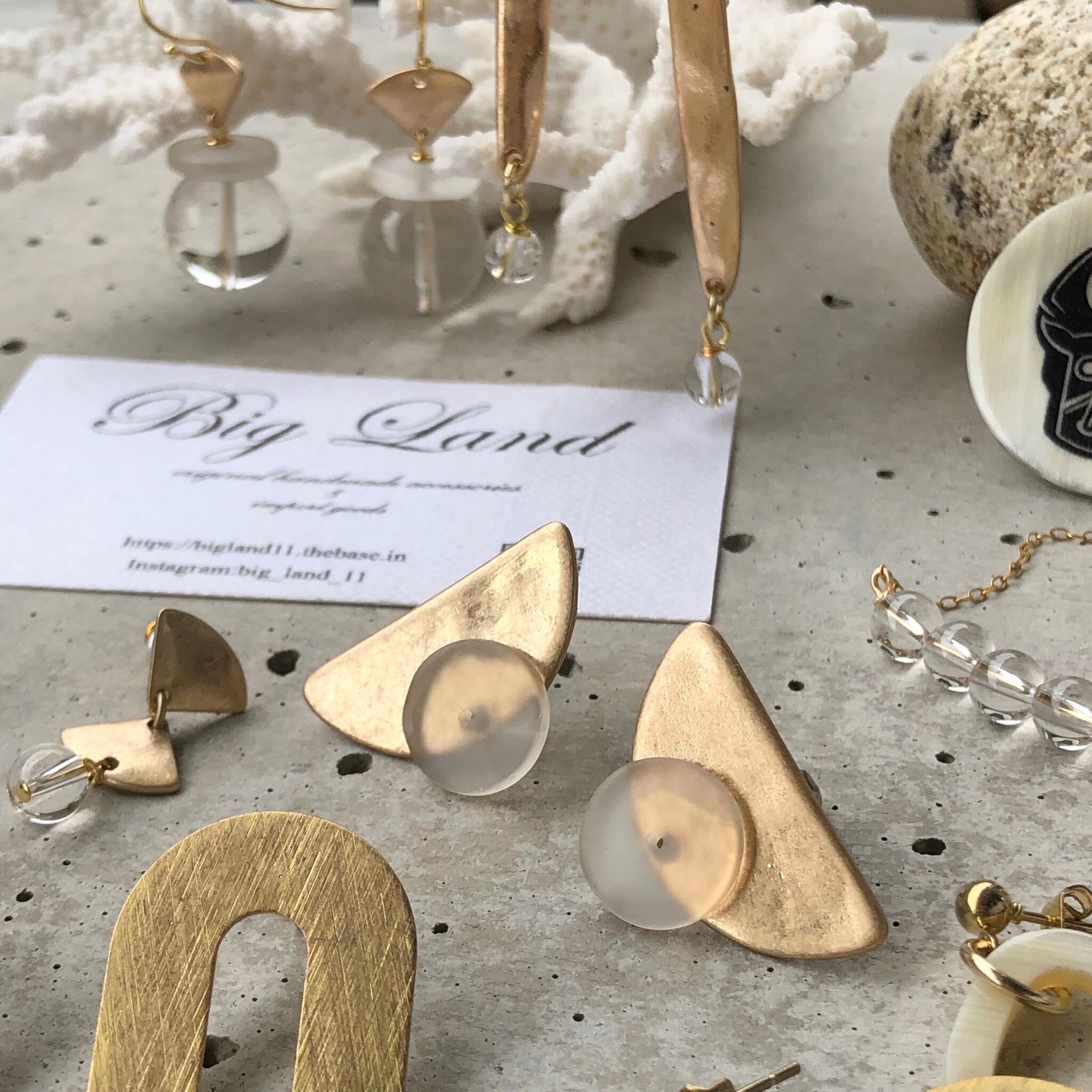 マットゴールドの地金と平べったいマット水晶を組み合わせ、個性的に仕上げた一押しデザイン✨