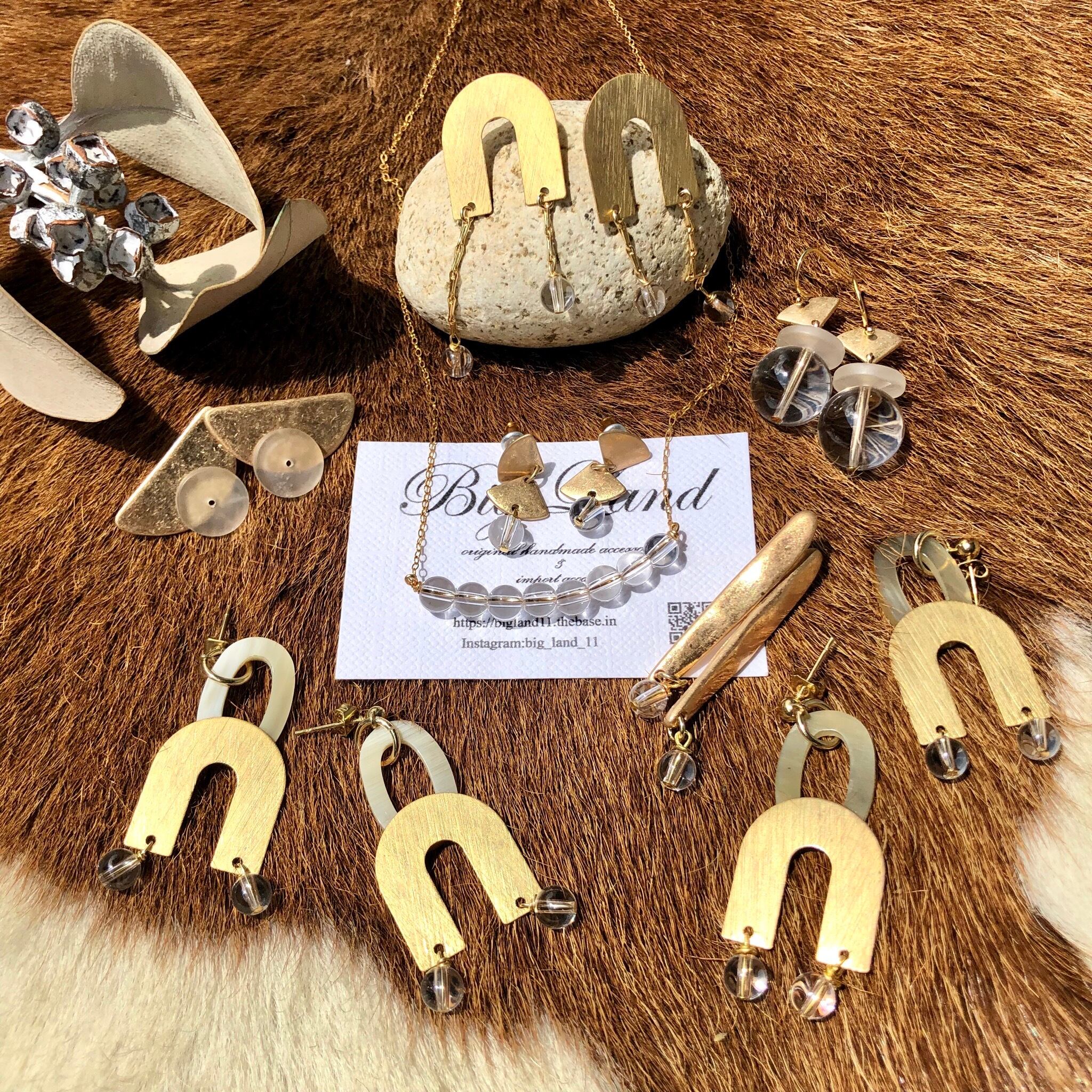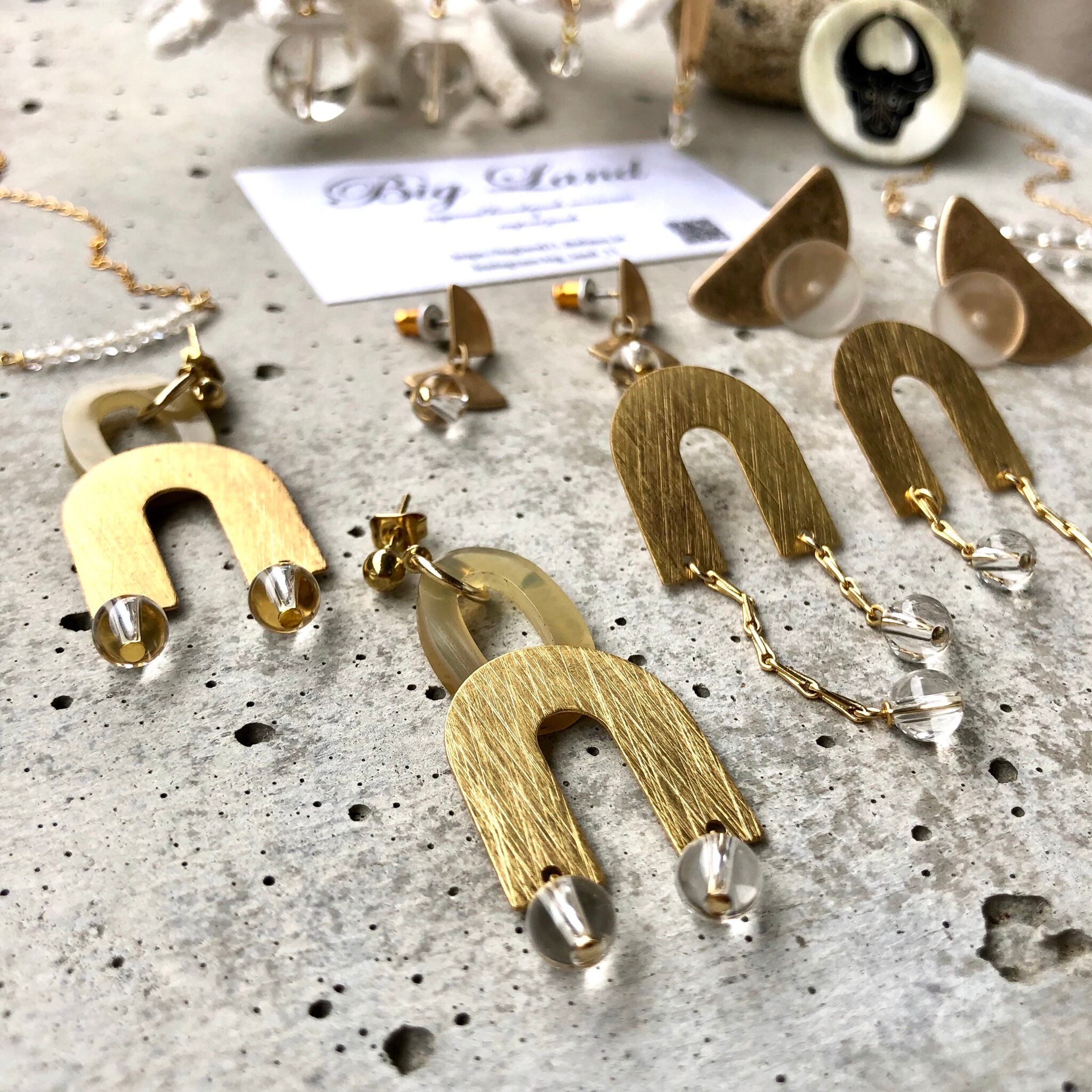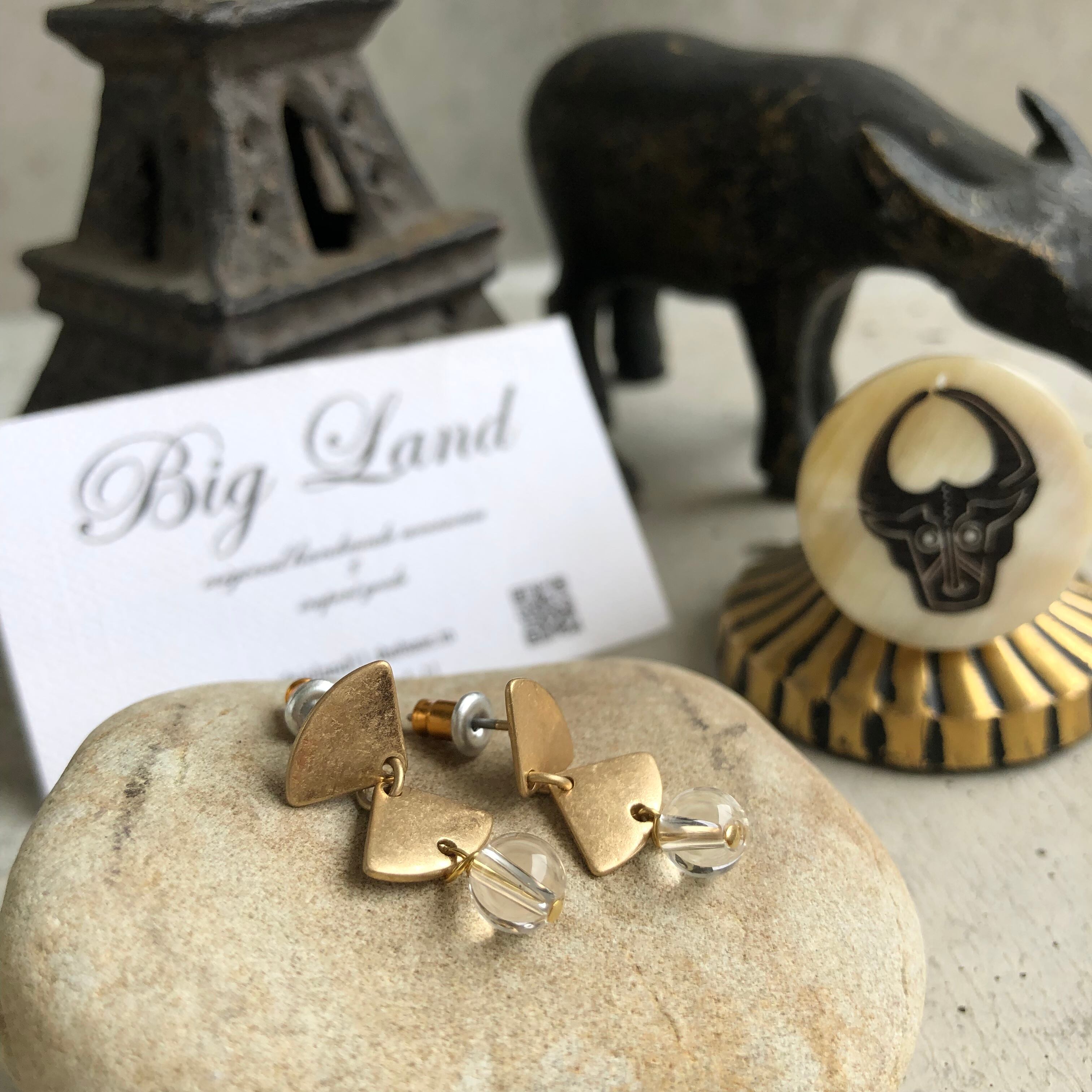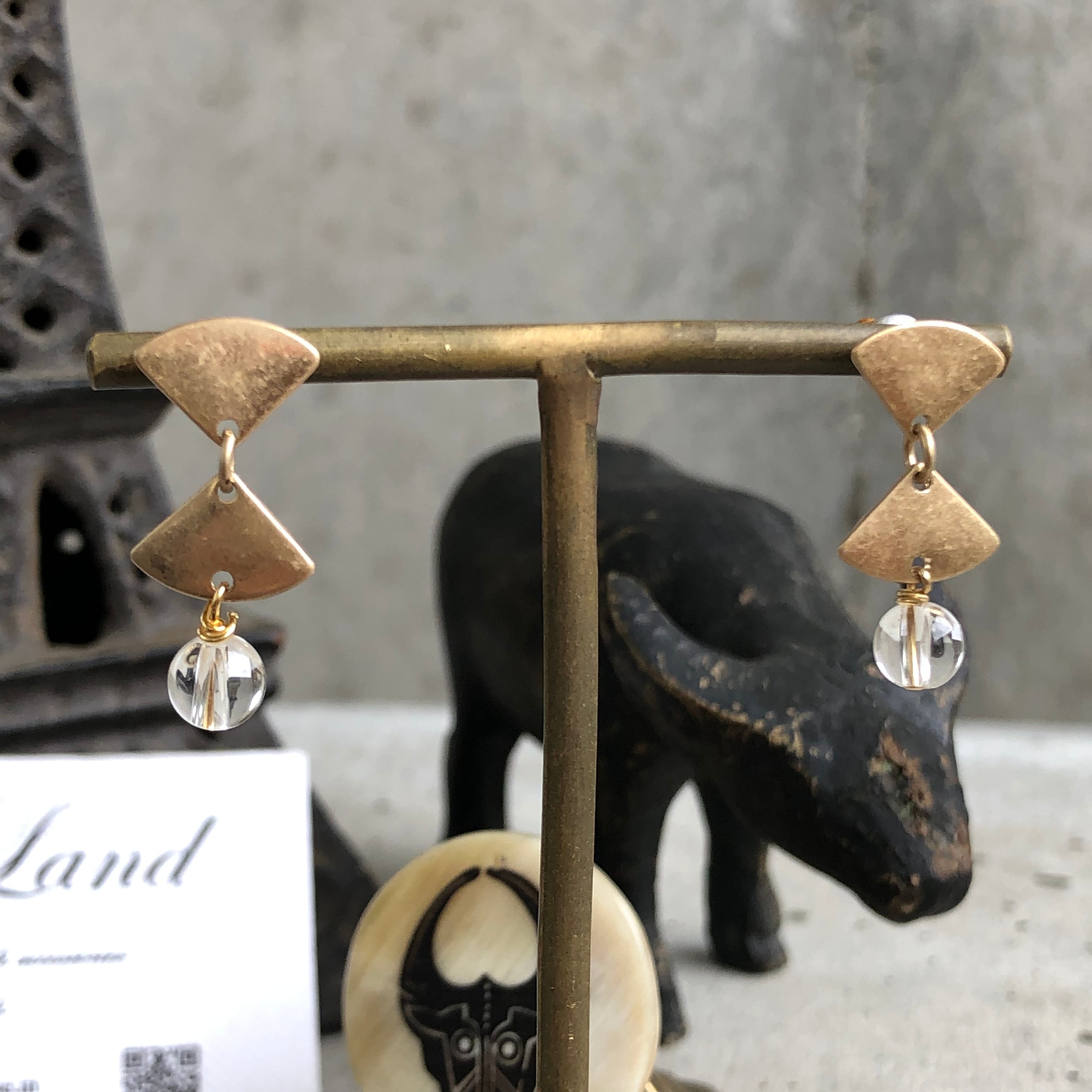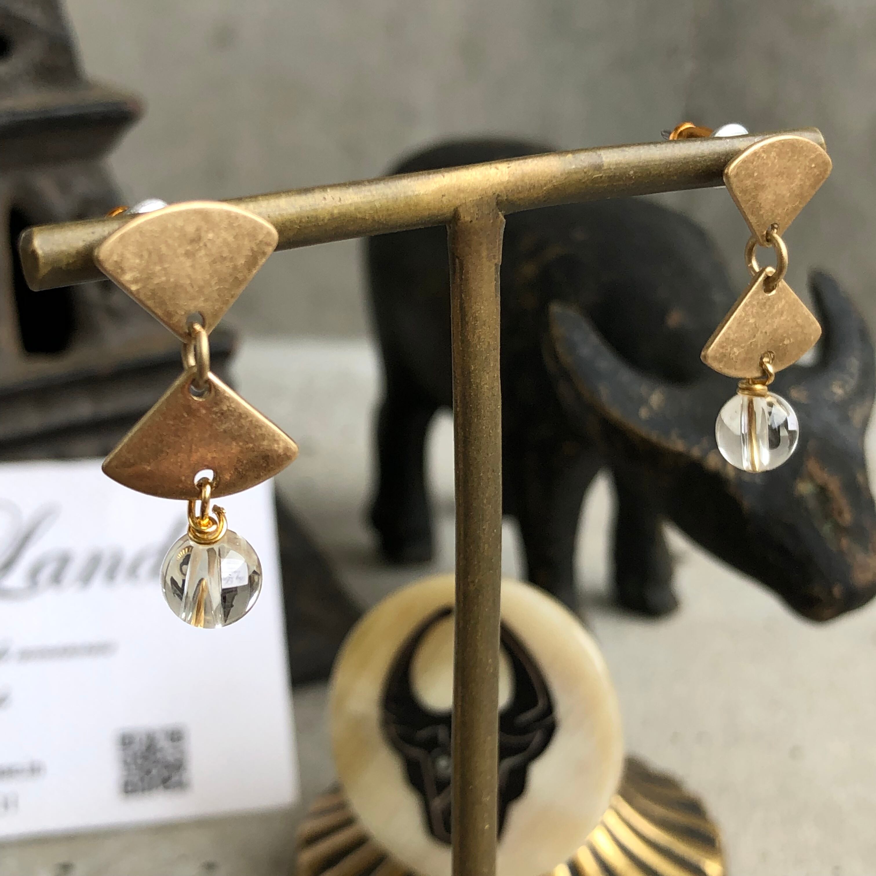 水晶に光が差し込むと大変神秘的でシンプルなクリア色は夏のカラフルなお洋服にも合わせ易く、さりげなく耳元でトレンドの地金ピアスを取り入れたい人にオススメです‼️