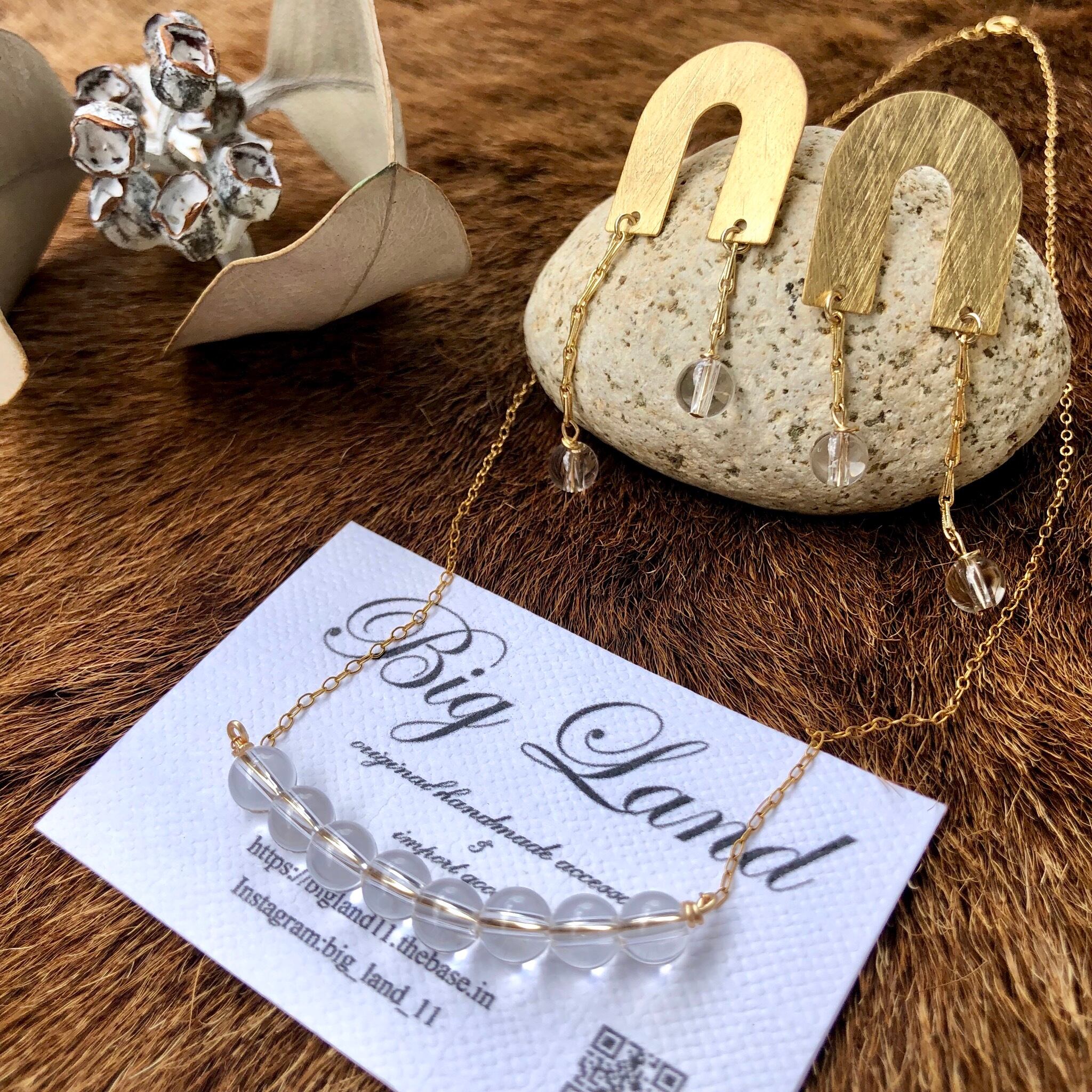 今回セット使いできるピアスもご用意しており、水晶に光が差し込むとキラキラ輝くのがなんとも言えない美しさです‼️
