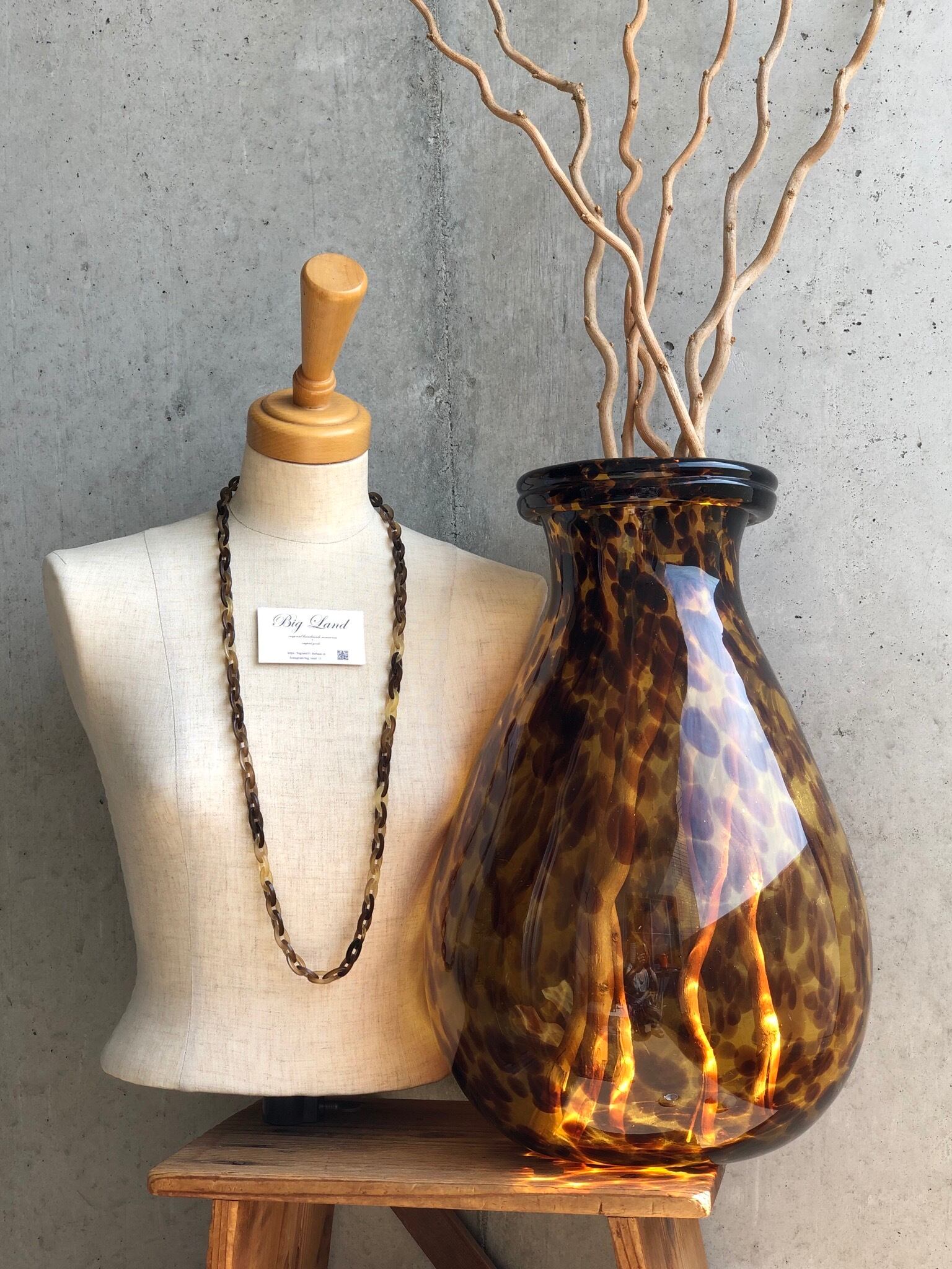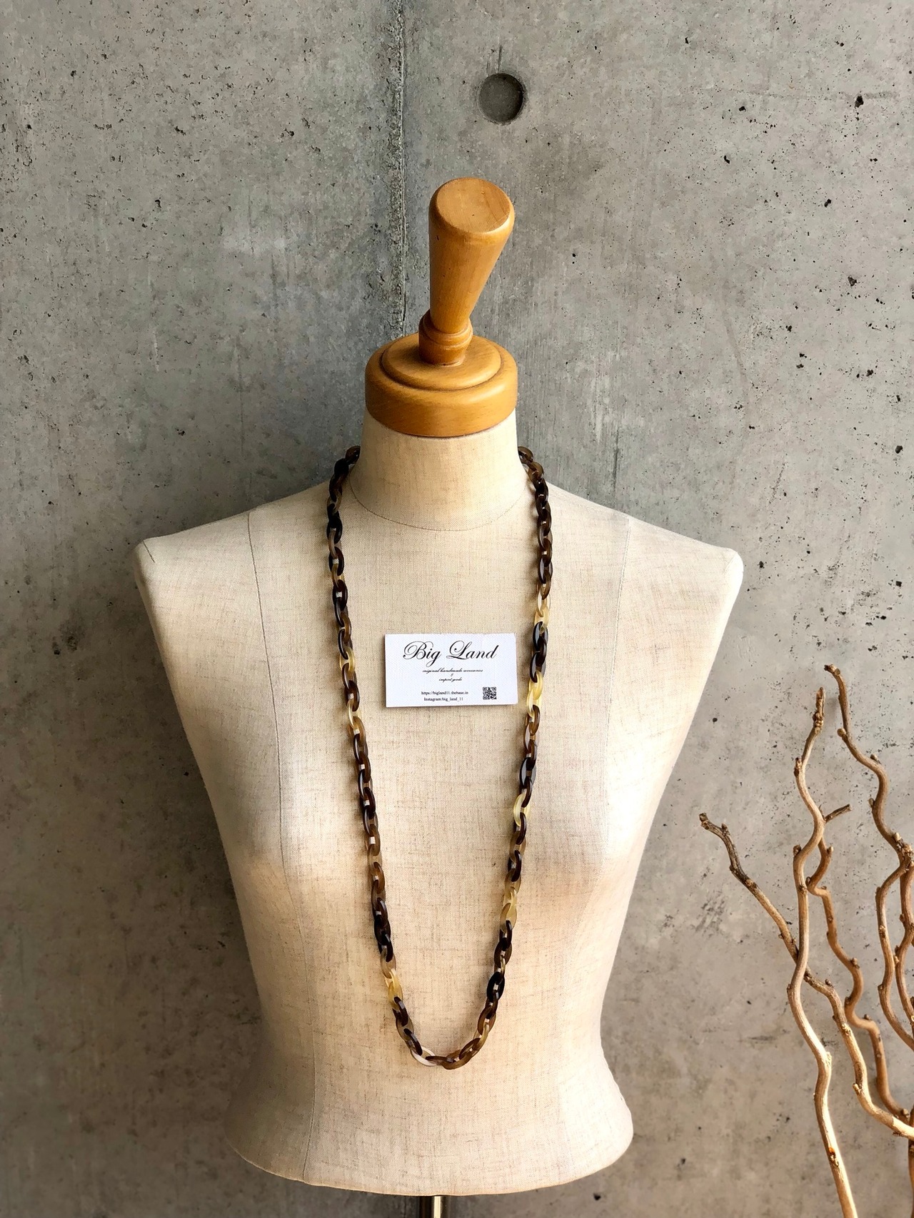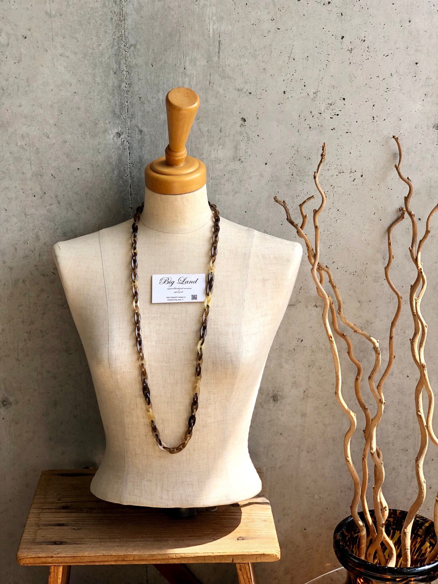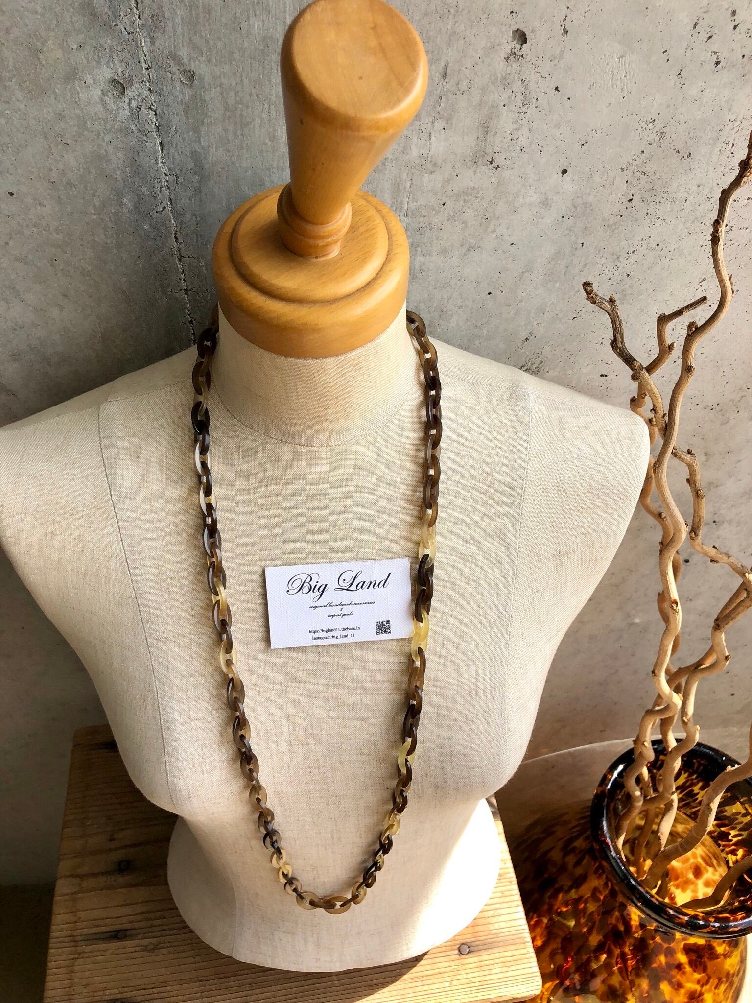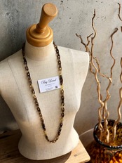 べっ甲の様な色合いで水牛ならではの軽い装着感とこなれたワンランク上の雰囲気を醸し出し、サイズ感では主張し過ぎていないが、存在感のあるデザインで水牛ネックレスデビューの方からも既にご購入頂いているオススメ商品です✨