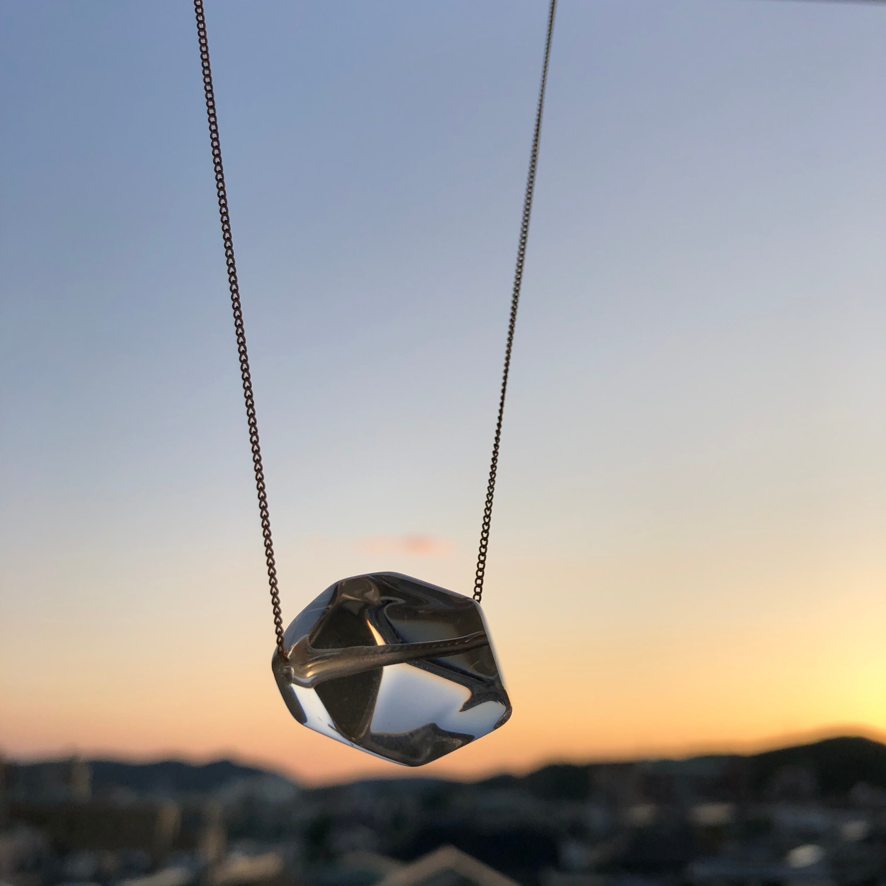 まるで氷のようなフォルムで、水晶玉の中にチェーンが透き通って見えるのが斬新で人気商品✨