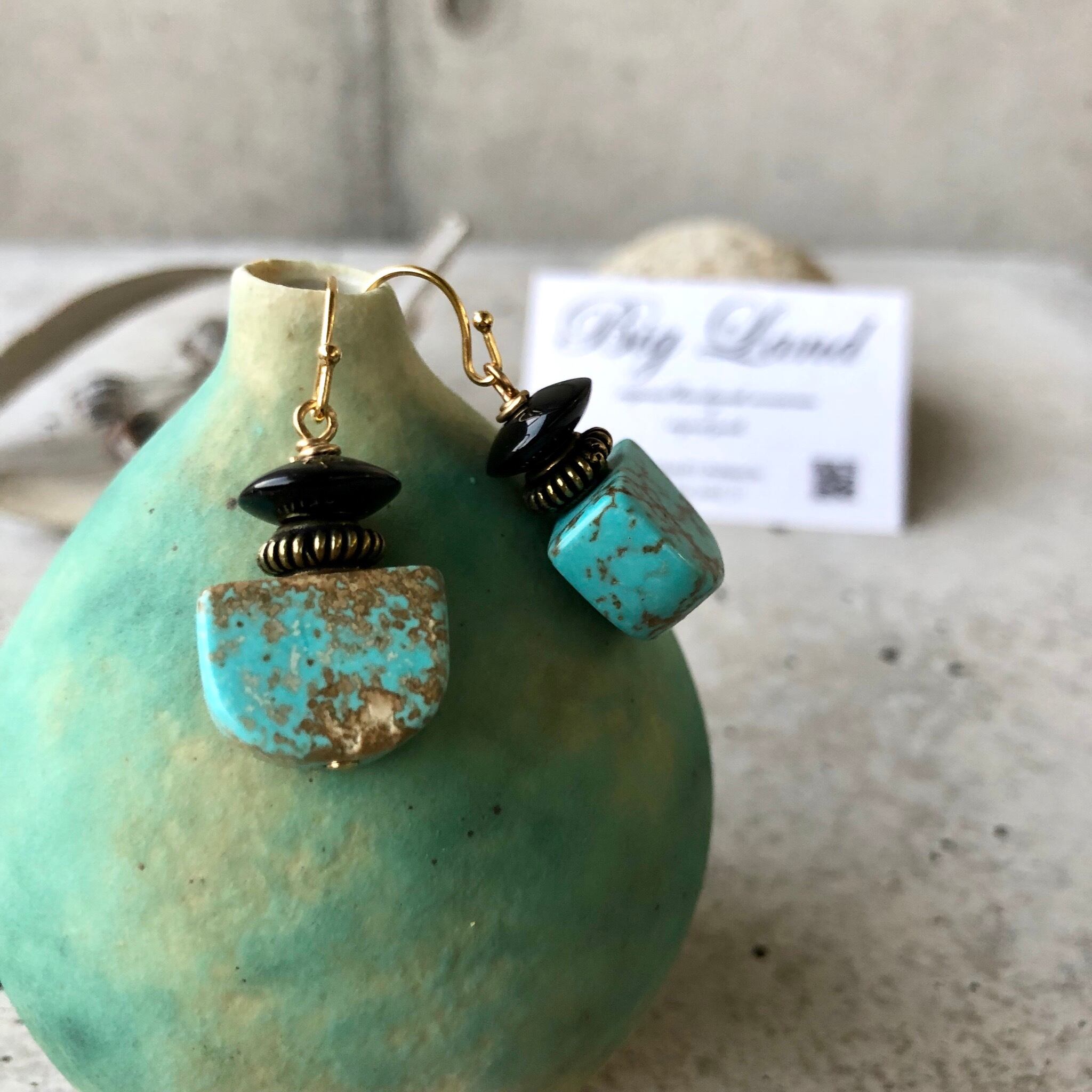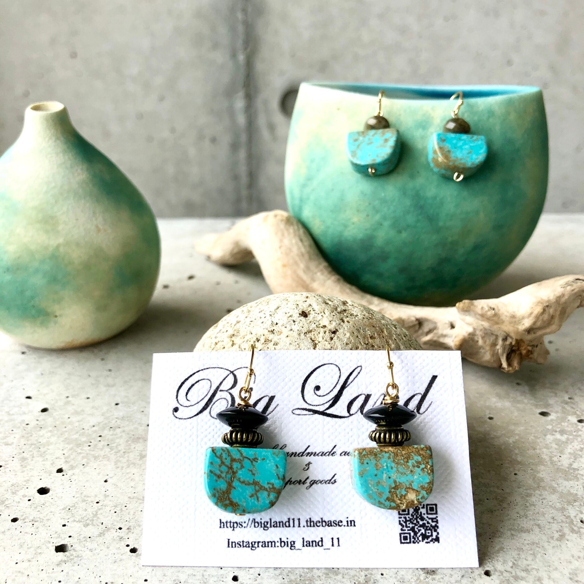 オニキスとターコイズを組み合わせエキゾチックな雰囲気に仕上げ大人っぽいデザインになりました✨