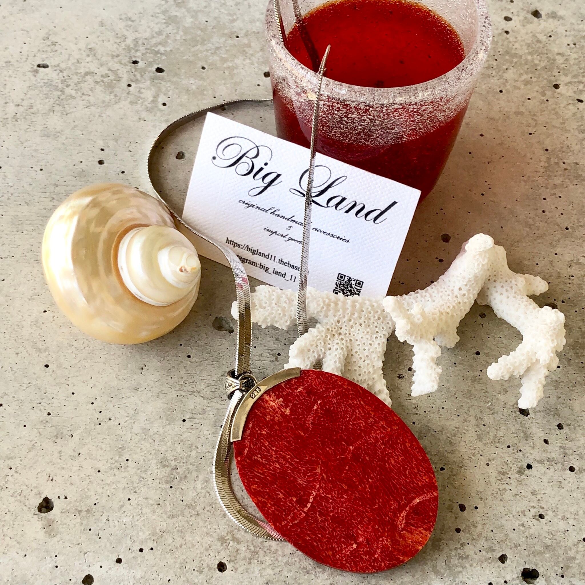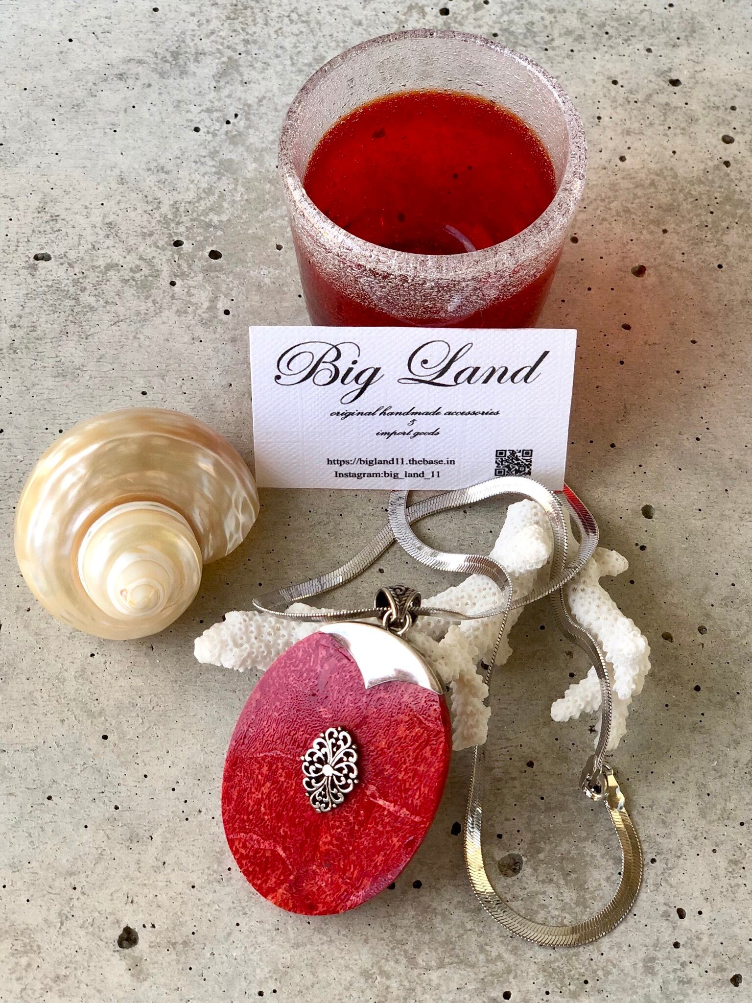大変珍しいスポンジ珊瑚とシルバーとのペンダントトップに洗練された平べったいチェーンの組み合わせたネックレス✨これからの季節はリネン素材に冬はニットにと、大人女性のコーデを楽しめます‼︎