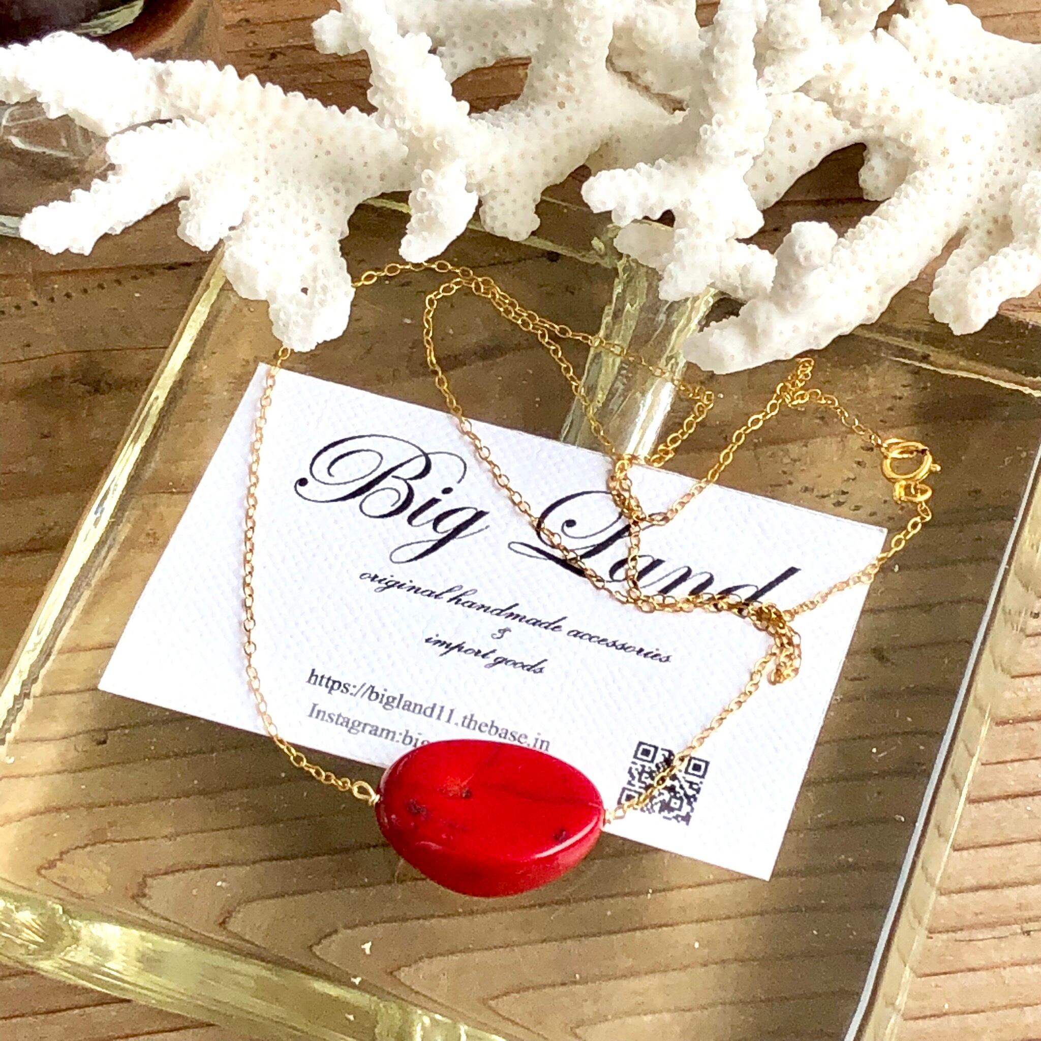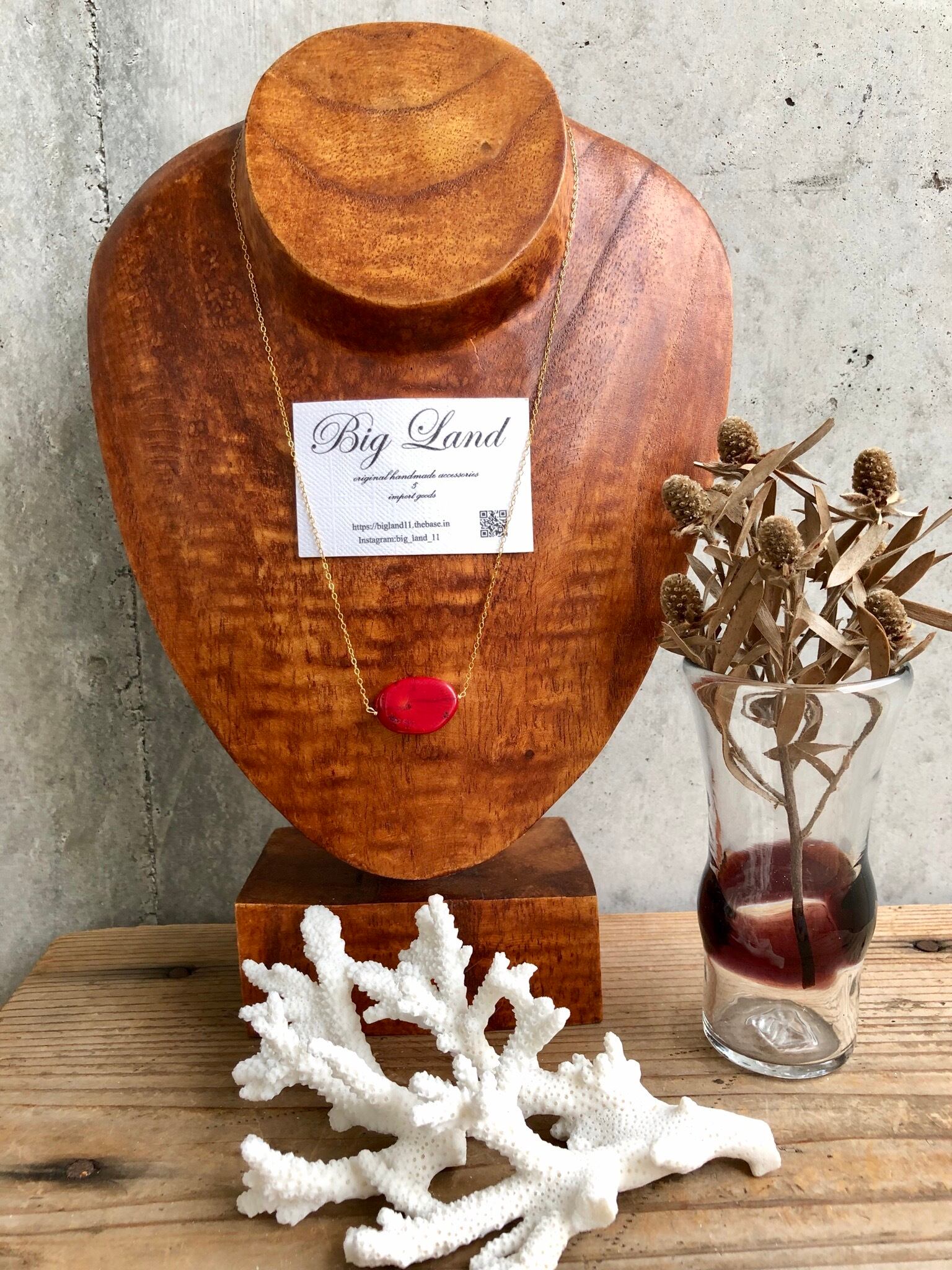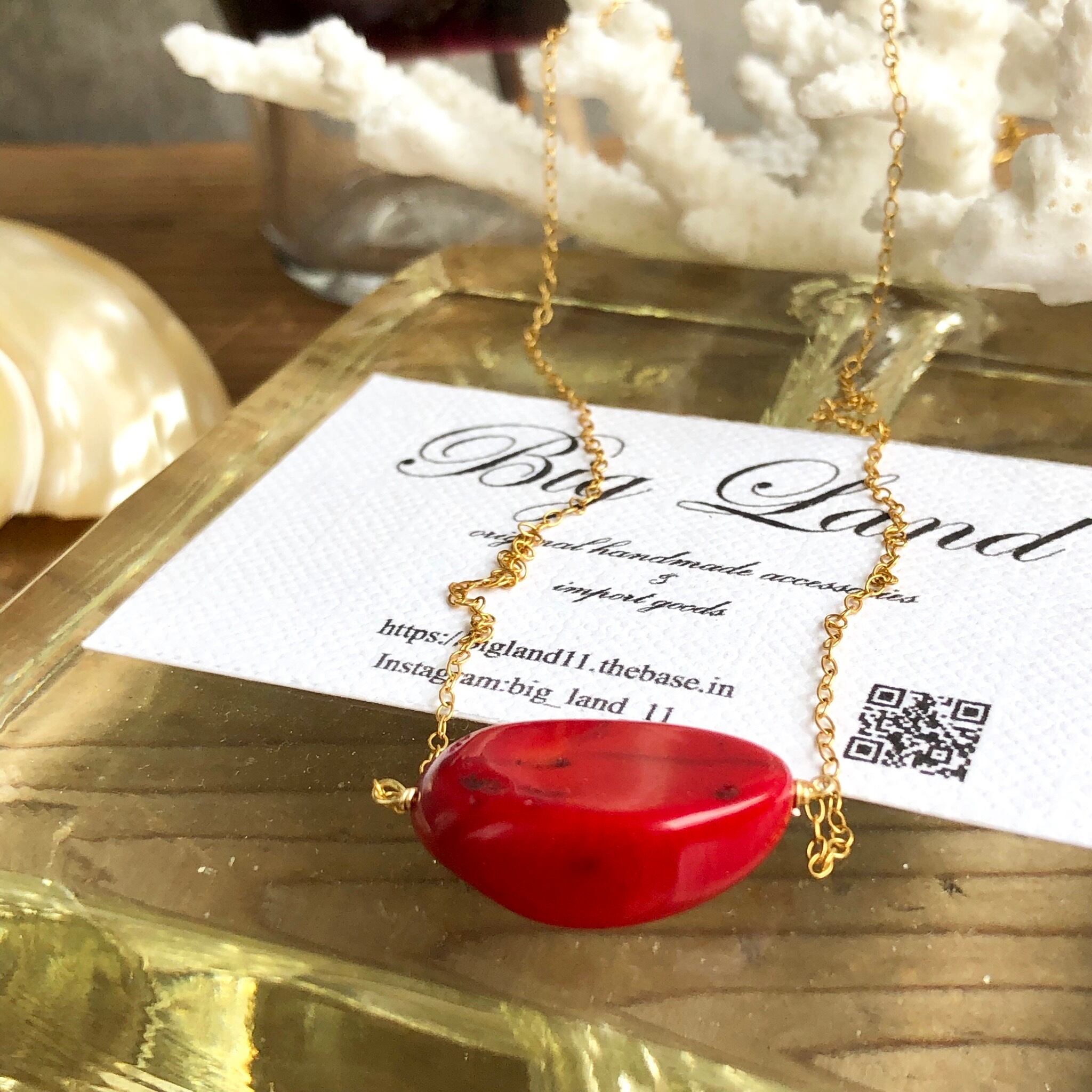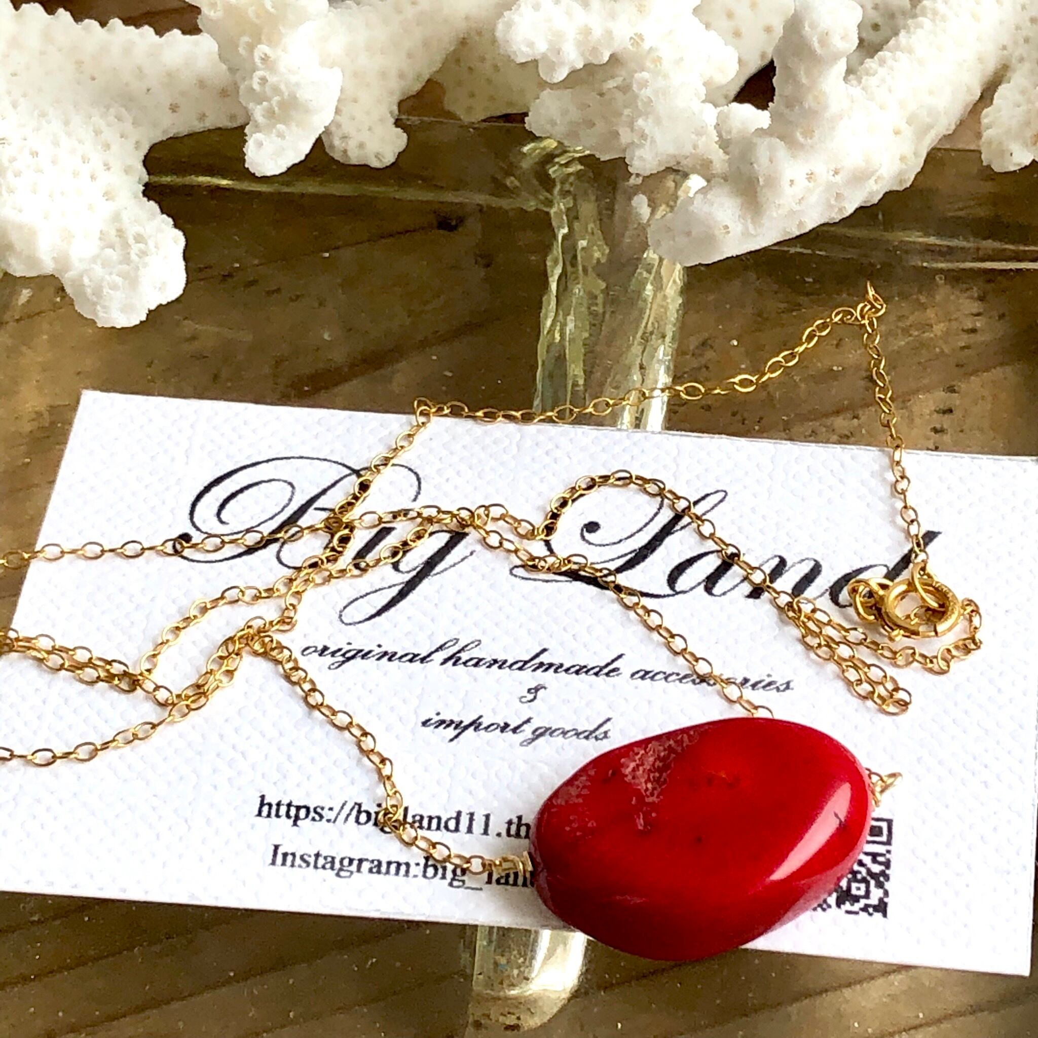 真っ赤な情熱的な色した珊瑚を14kgfチェーンと組み合わせシンプルなデザイン❤️